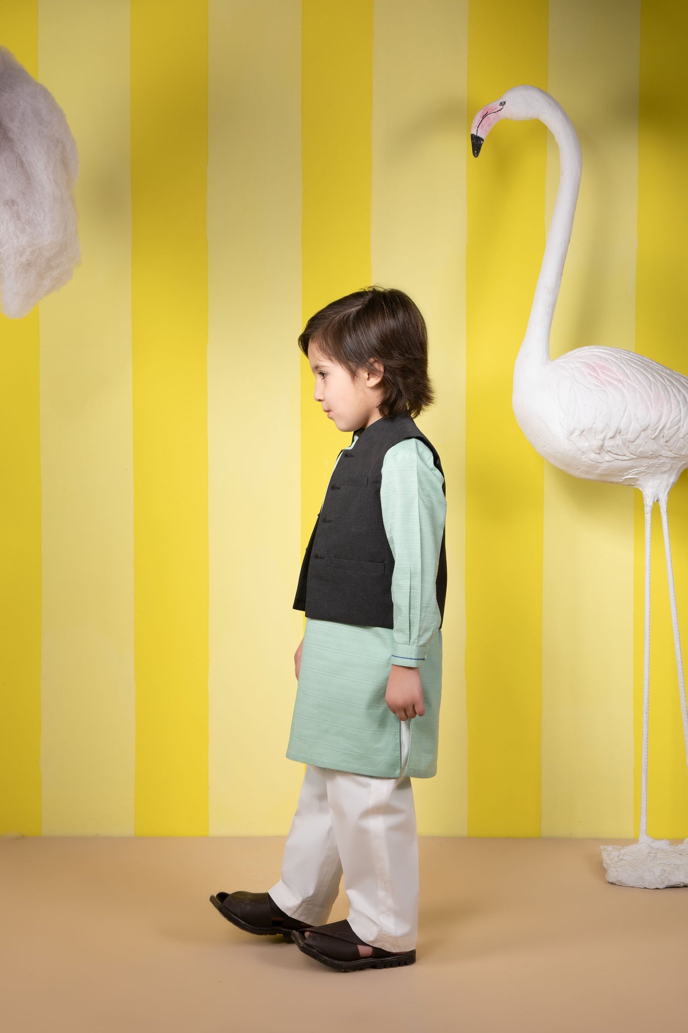 Give your child a traditional look in this charcoal grey waistcoat to create a fashion statement.