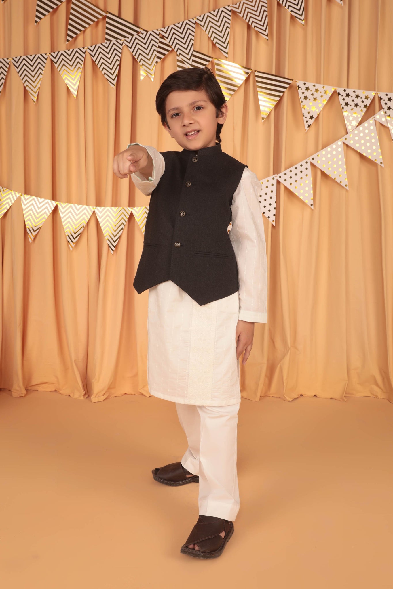 Give your child a traditional look in this charcoal grey waistcoat.