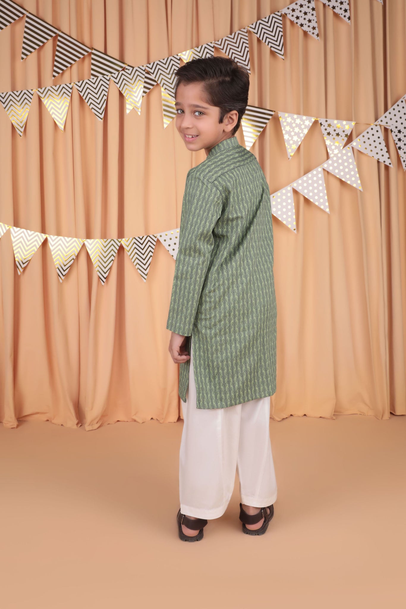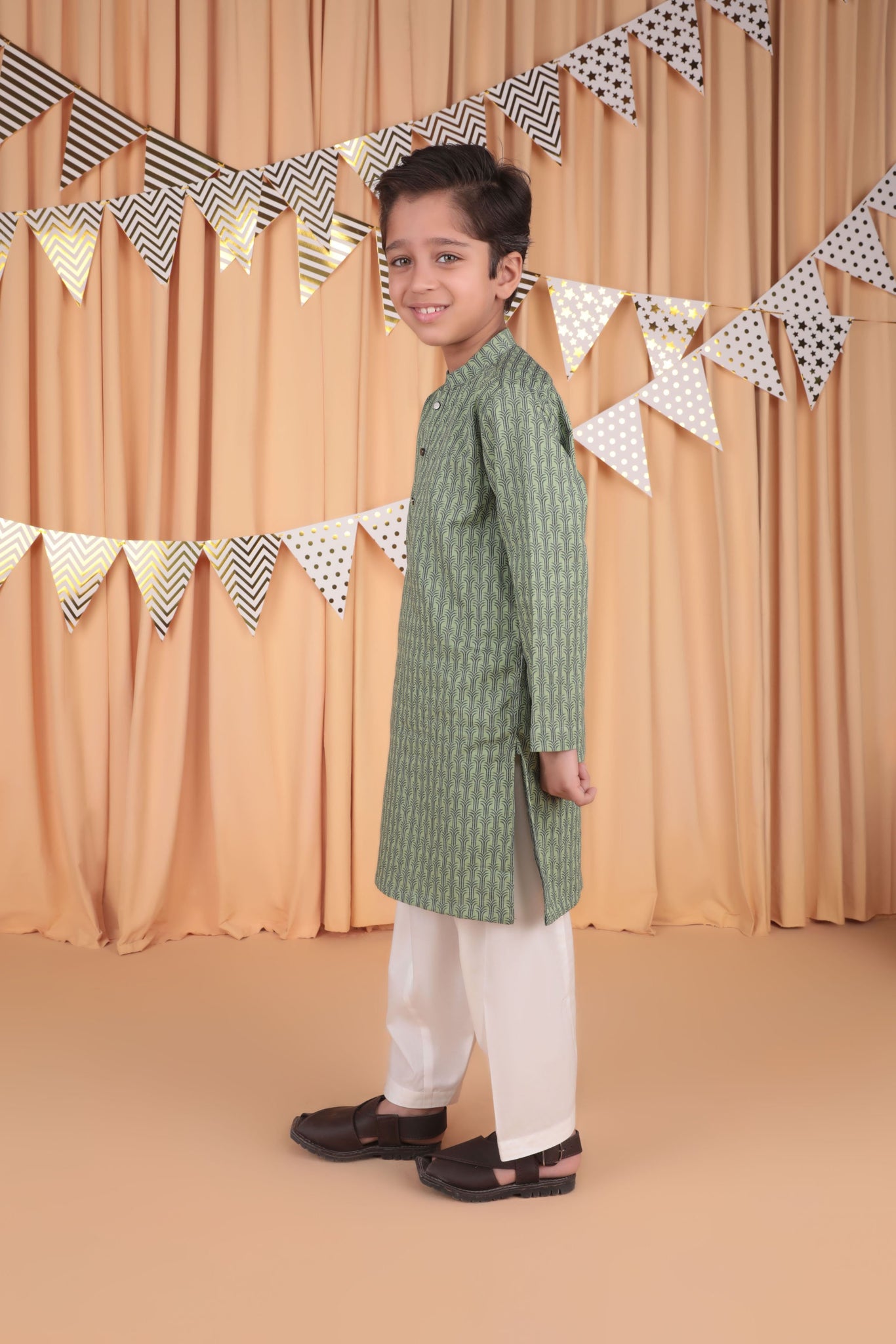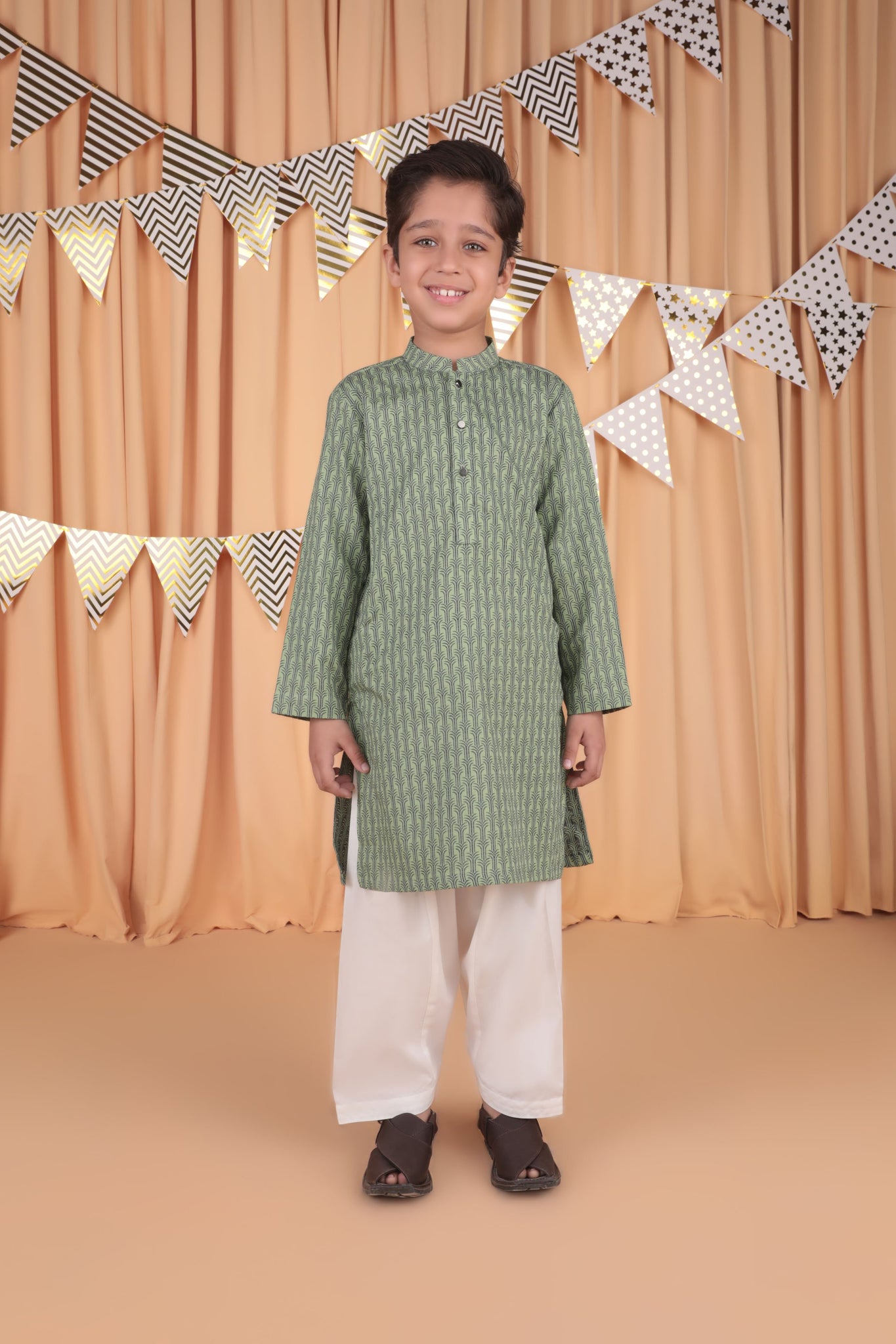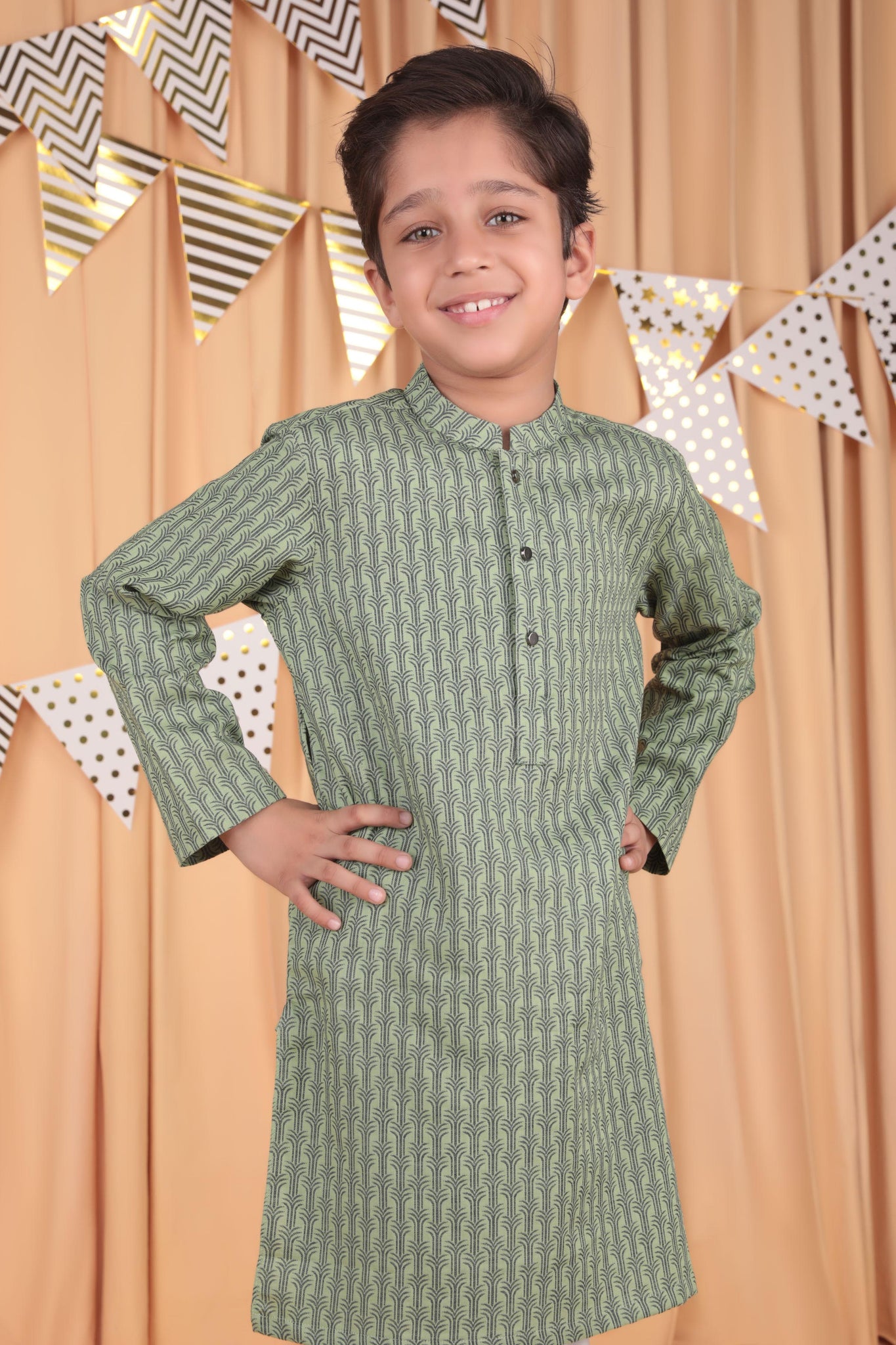 Refresh your little one's summer wardrobe with this minty green kurta and pair it up with white trousers to complete the look.