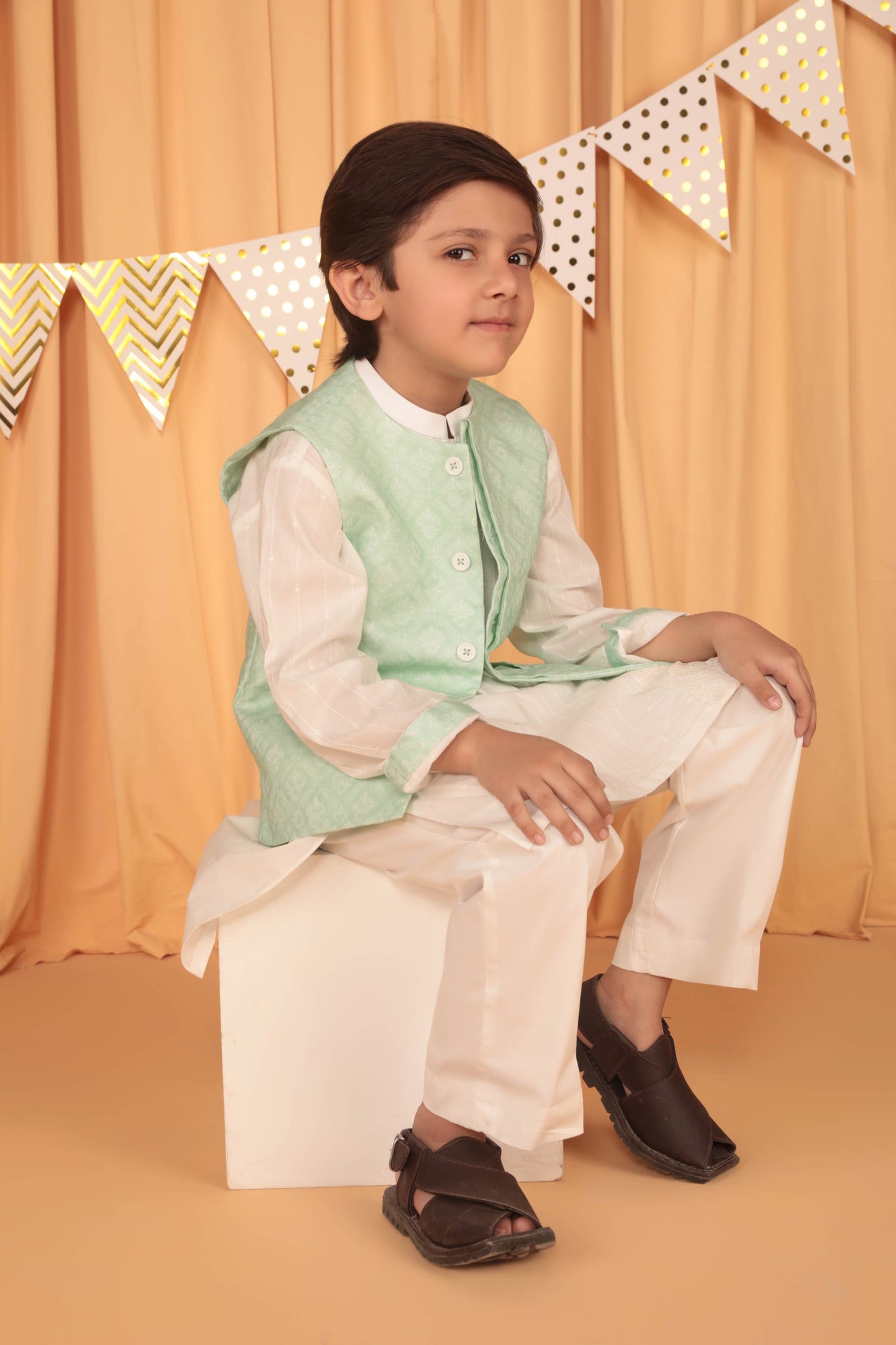 This pastel hued un-embroidered waistcoat will serve well at all your festivities.