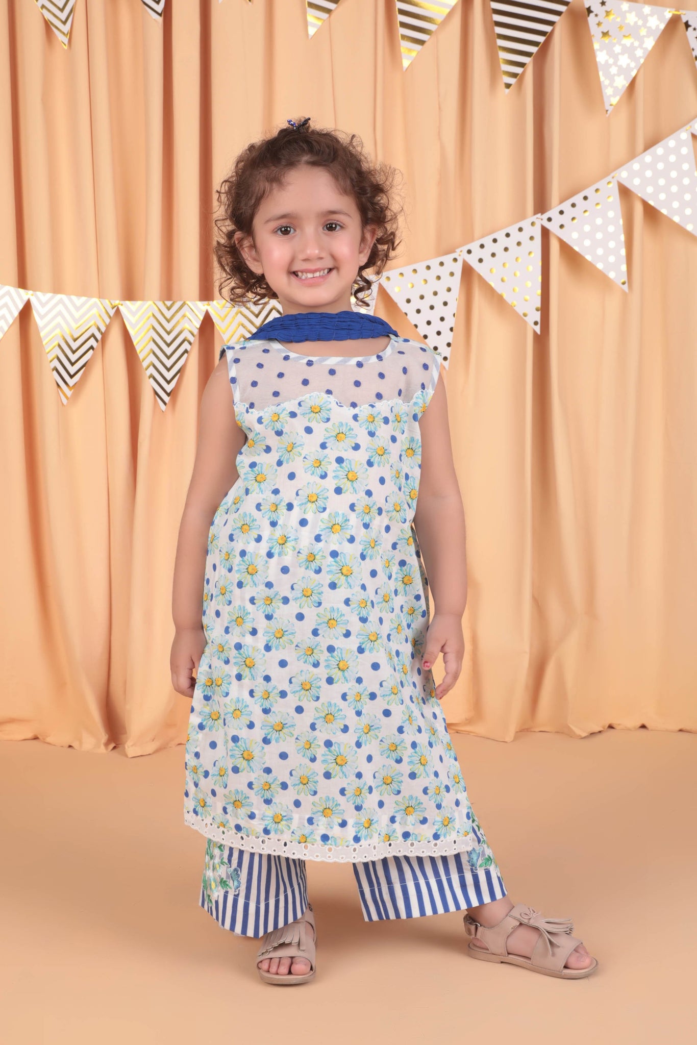 Straight Shirt With Boat Neck & Embroidered Yolk, Plain Back, Separate Sleeves Attached