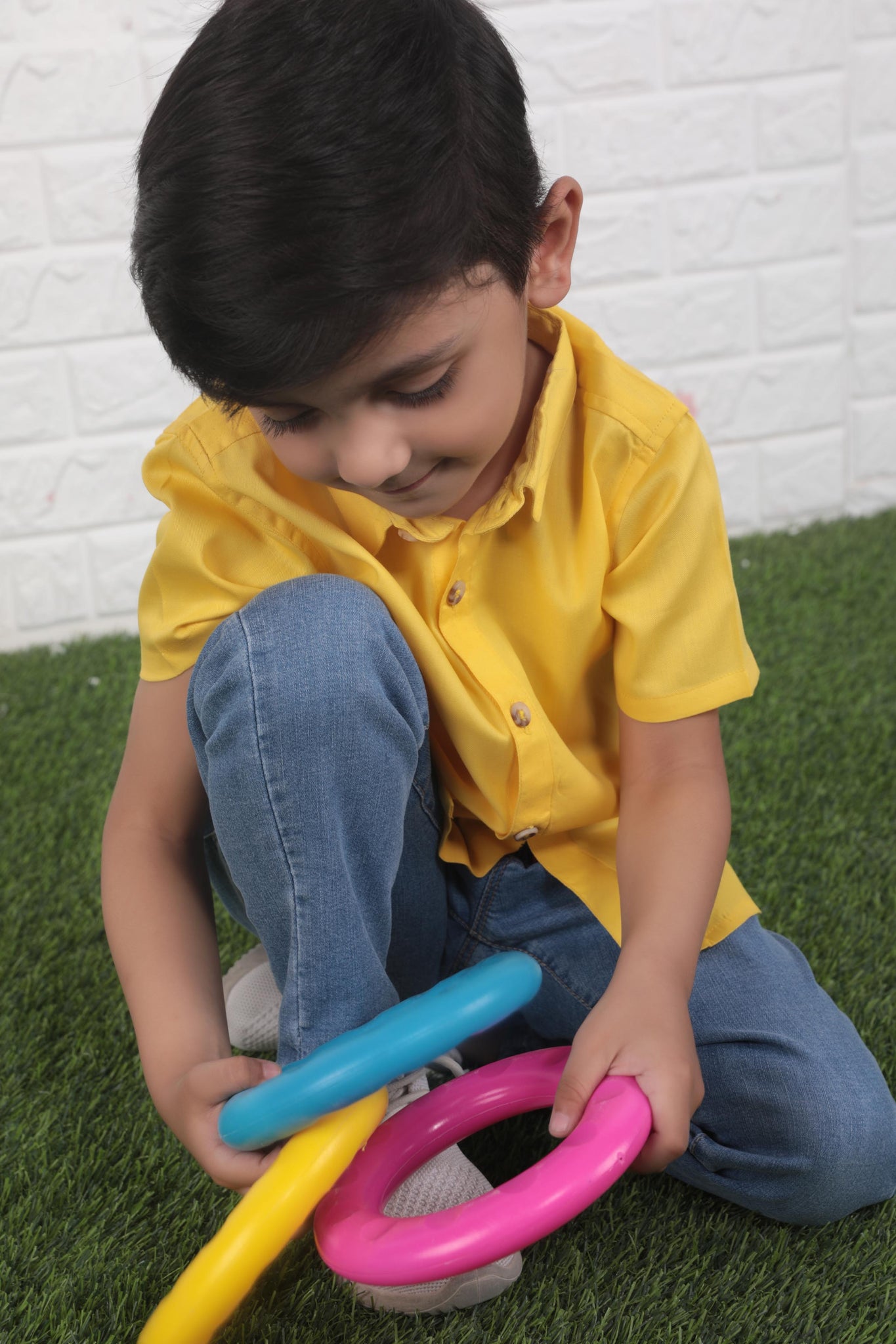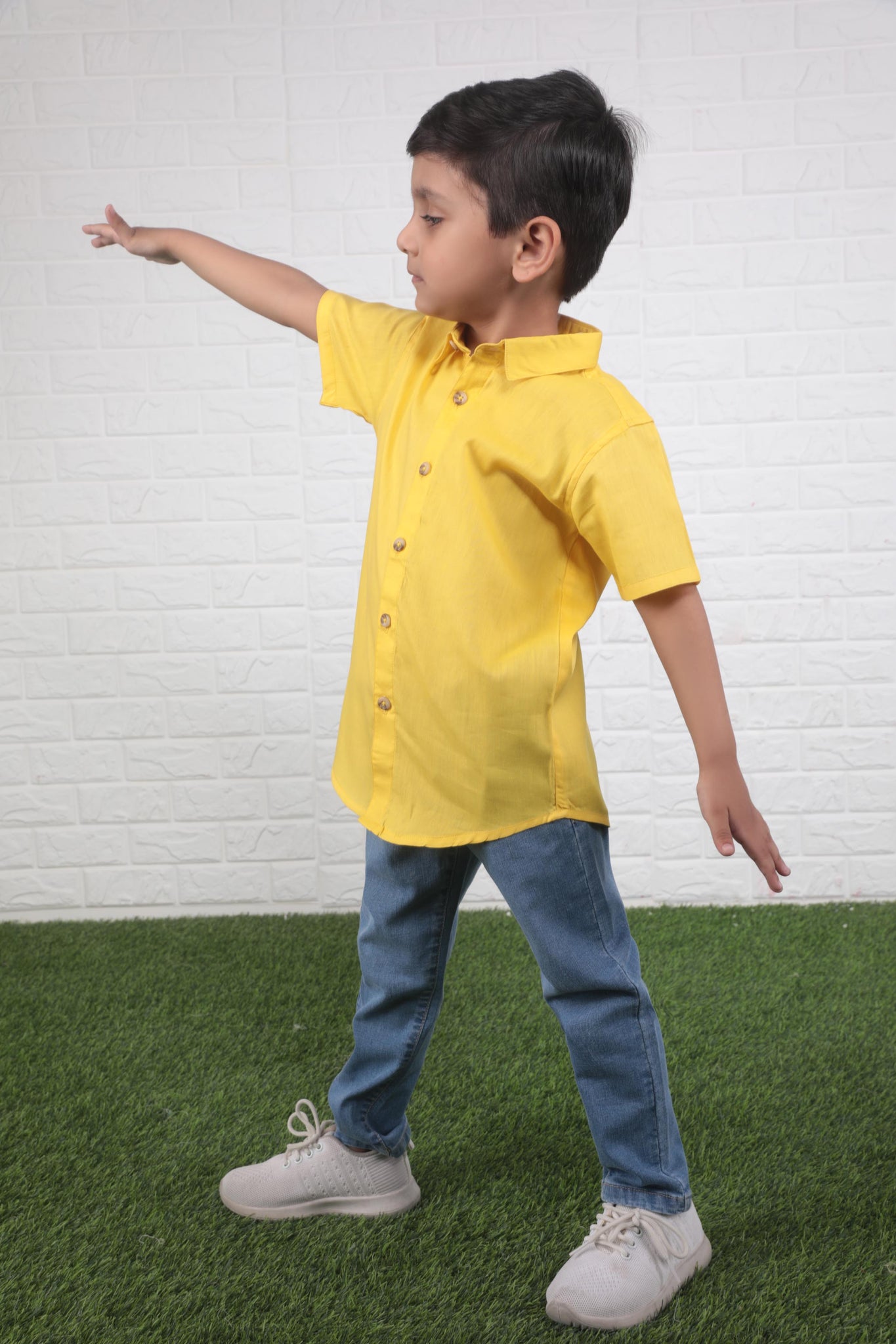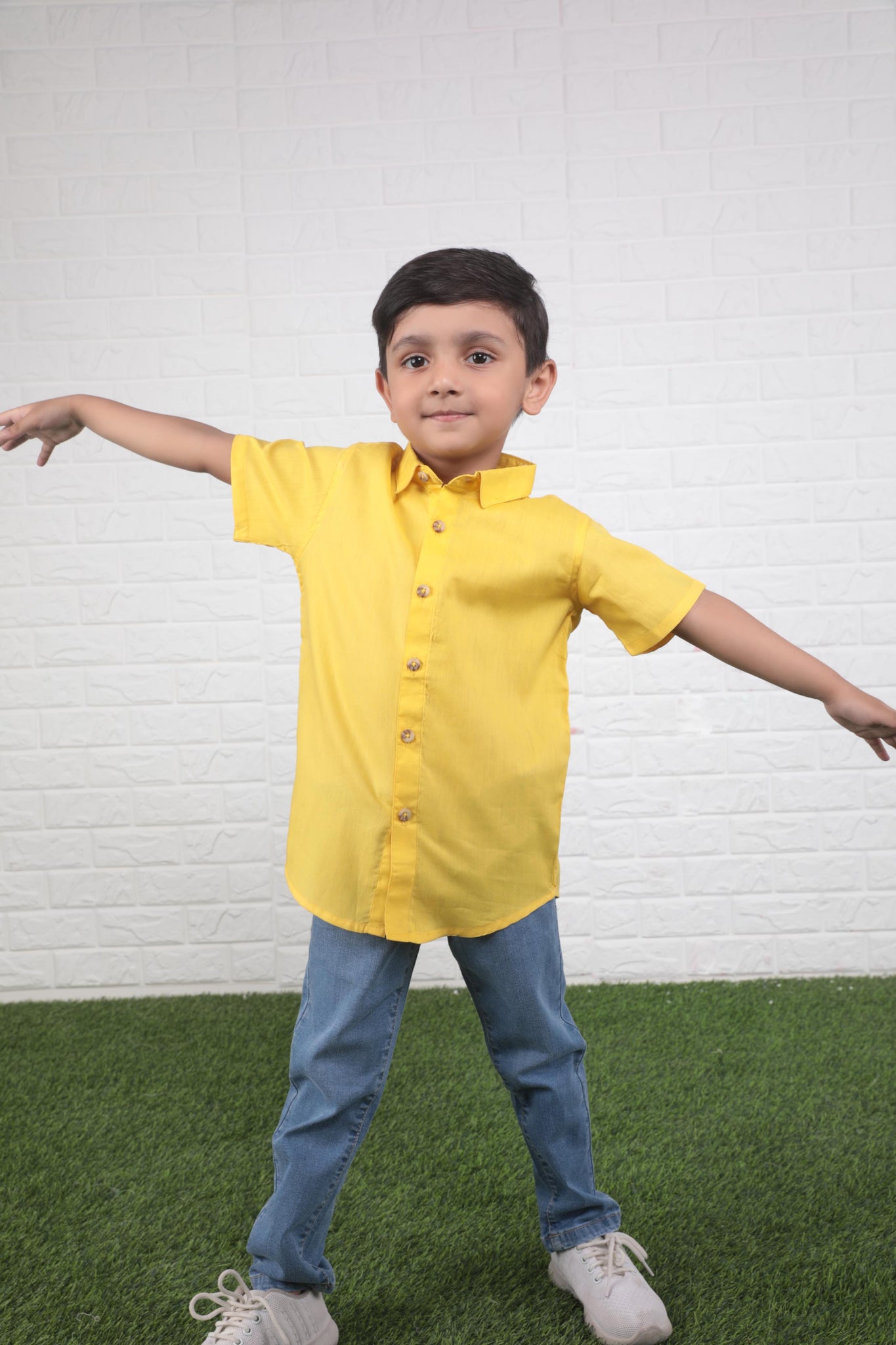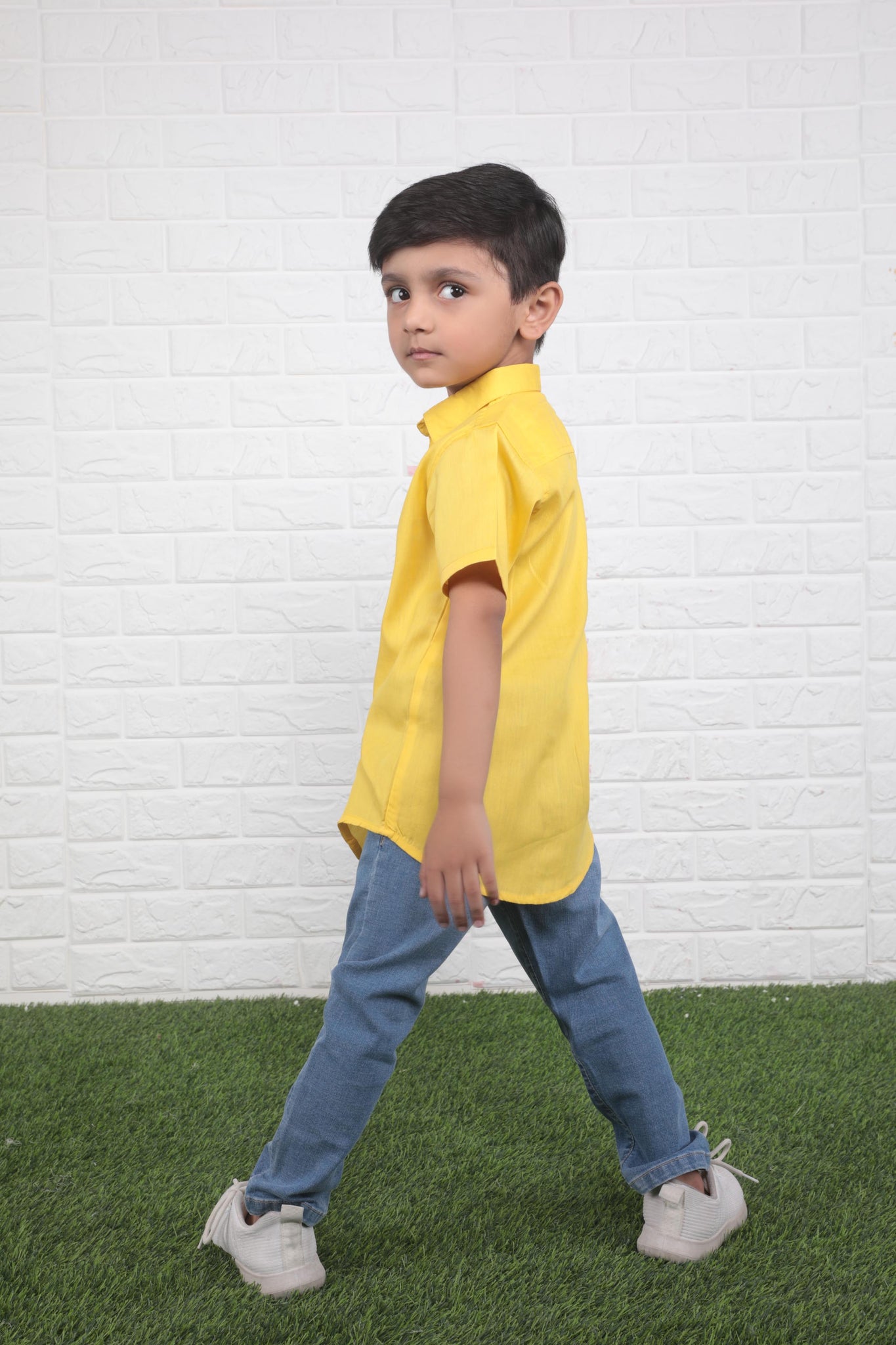 Boys Casual ShirtLapel collar and half-sleeved shirt, featuring front button closure.