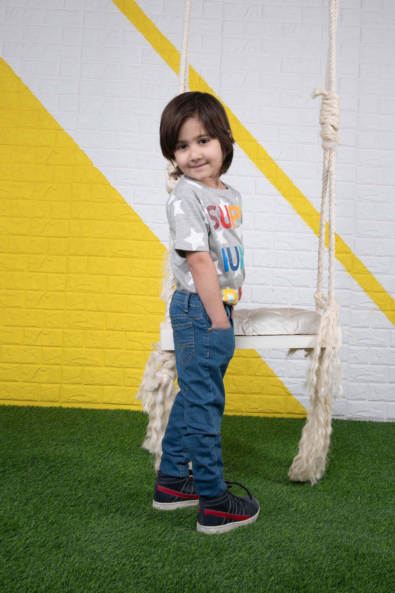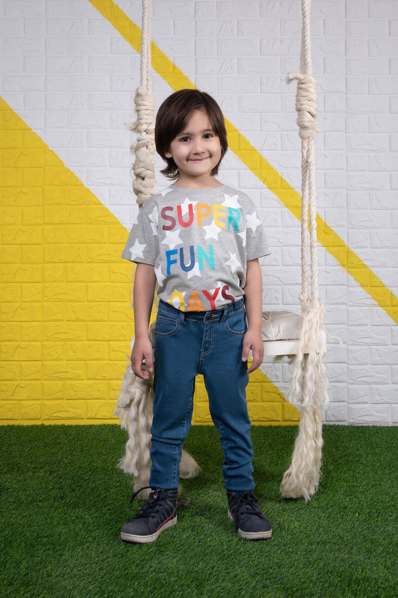 Boys Skinny Fit Denim Super skinny fit jeans with adjustable interior waistband and front button closure.