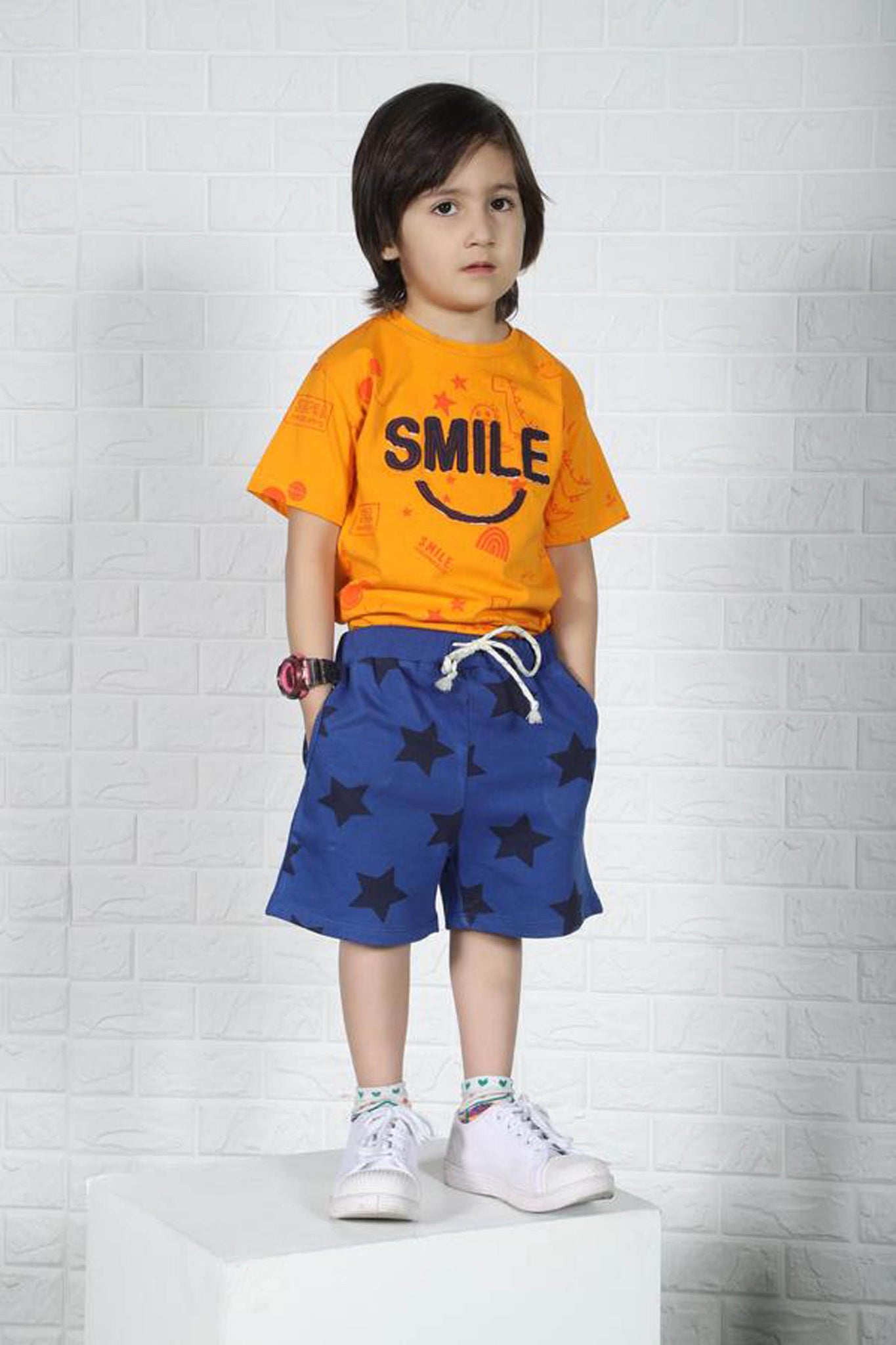 Boys Baby Terry Shorts Terry shorts with elastic waistband and adjustable drawstring.