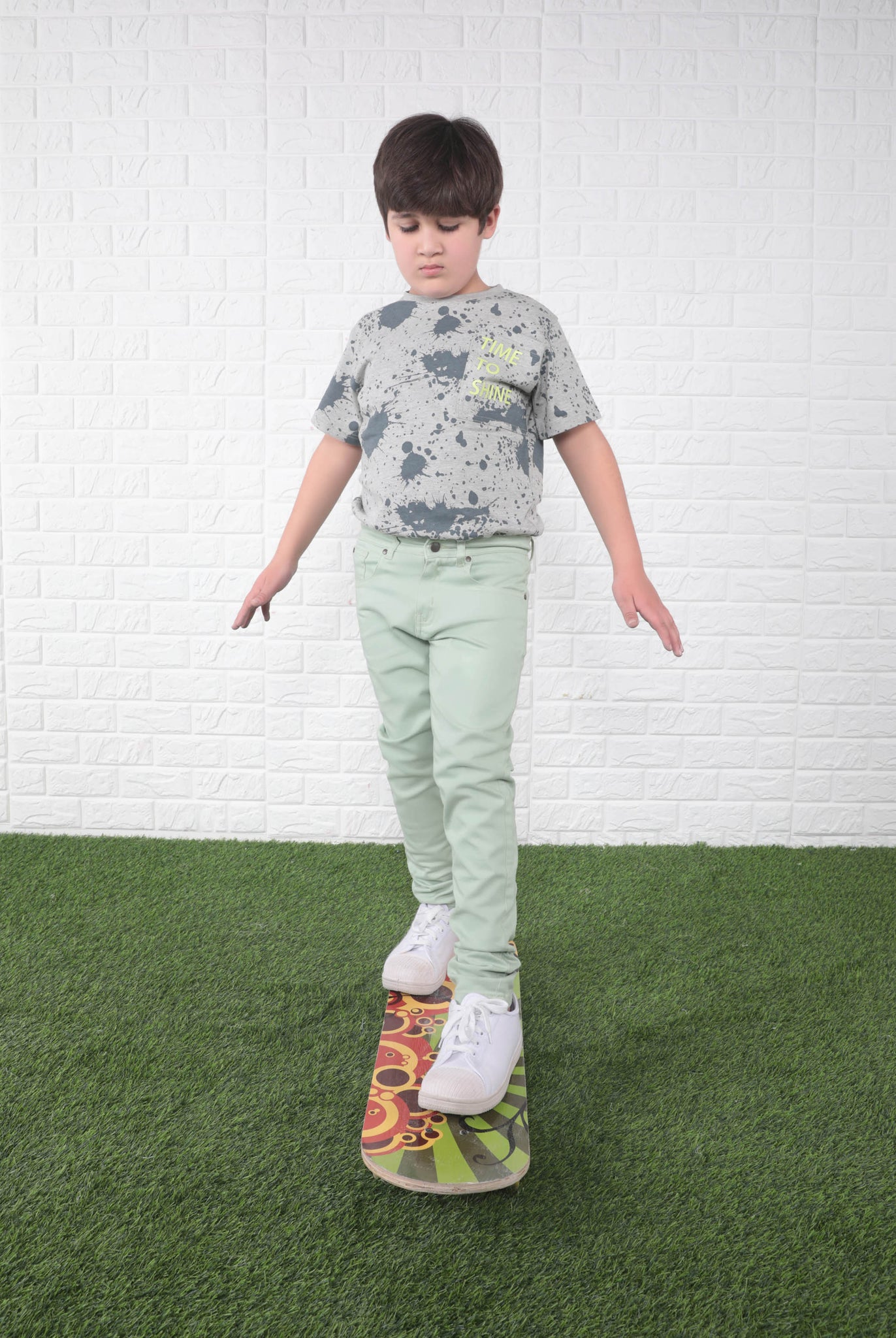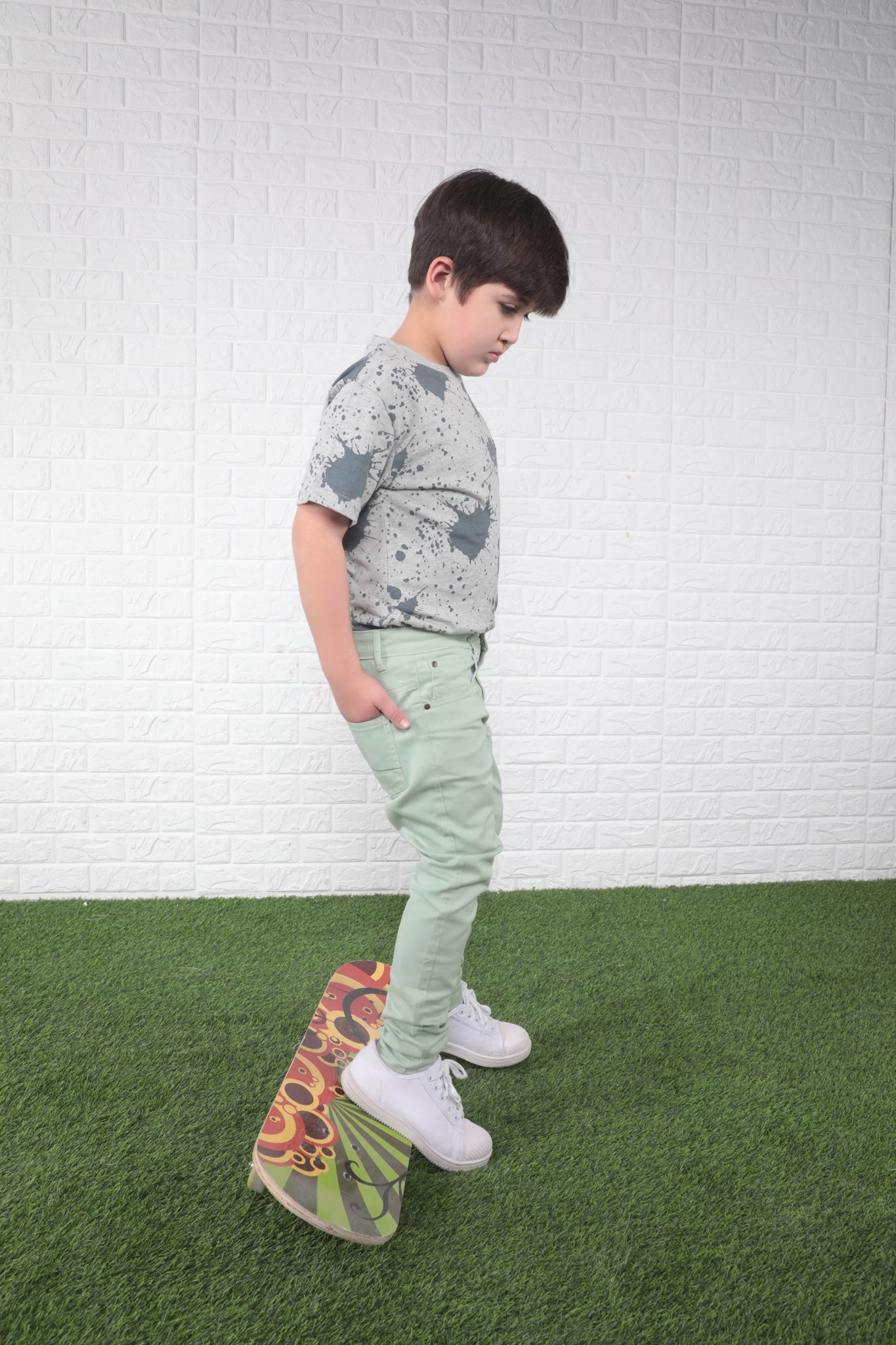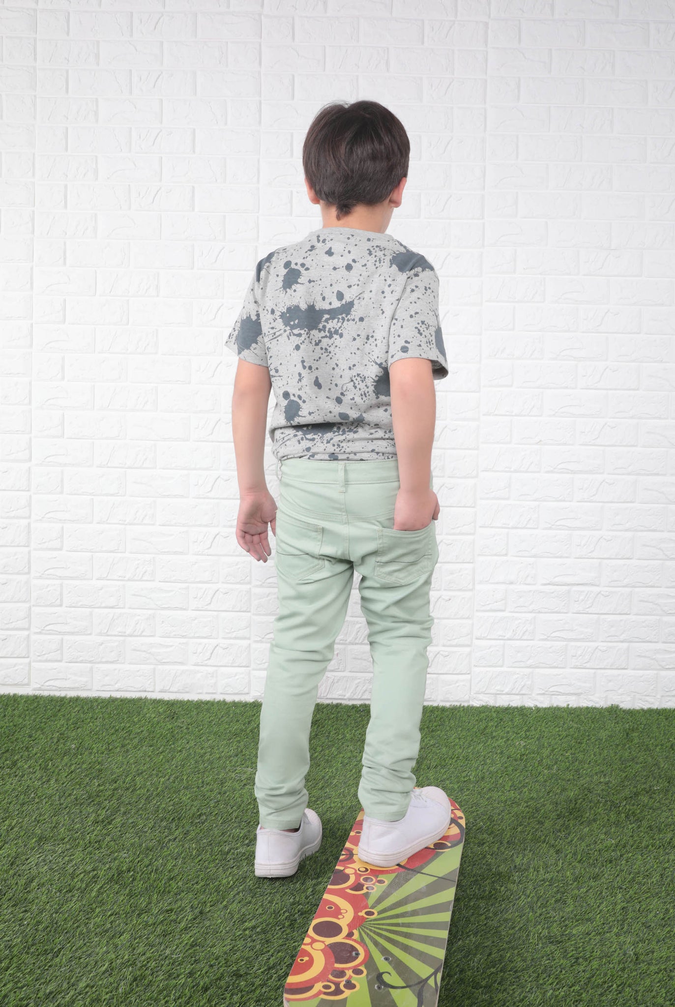 Boys Skinny Fit Chino Chino pants with adjustable interior waistband and front snap button closure. Five pockets.