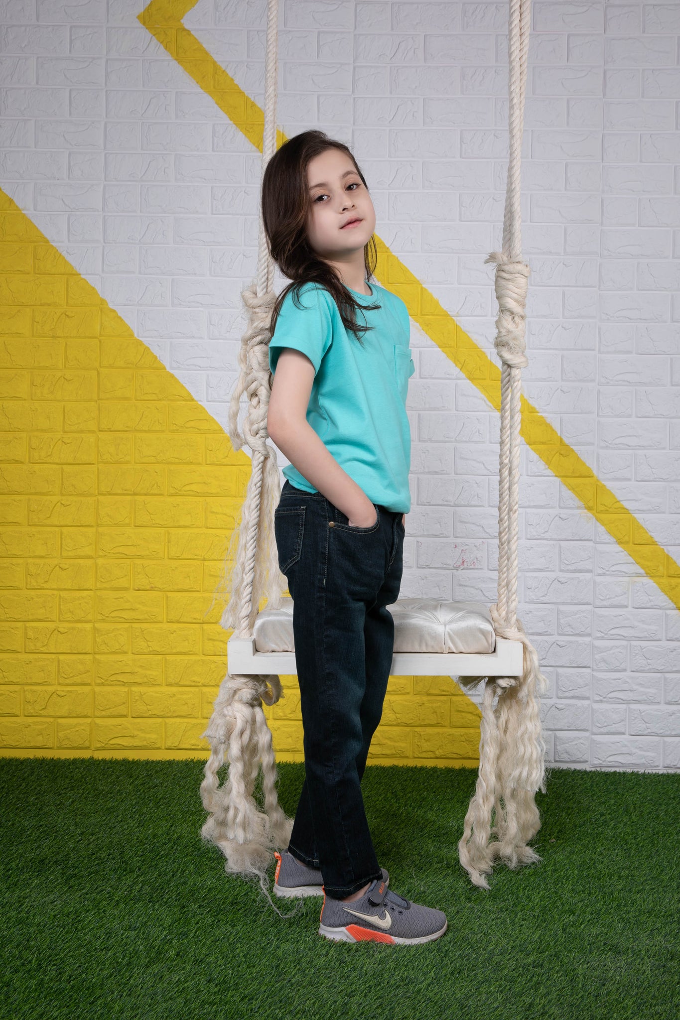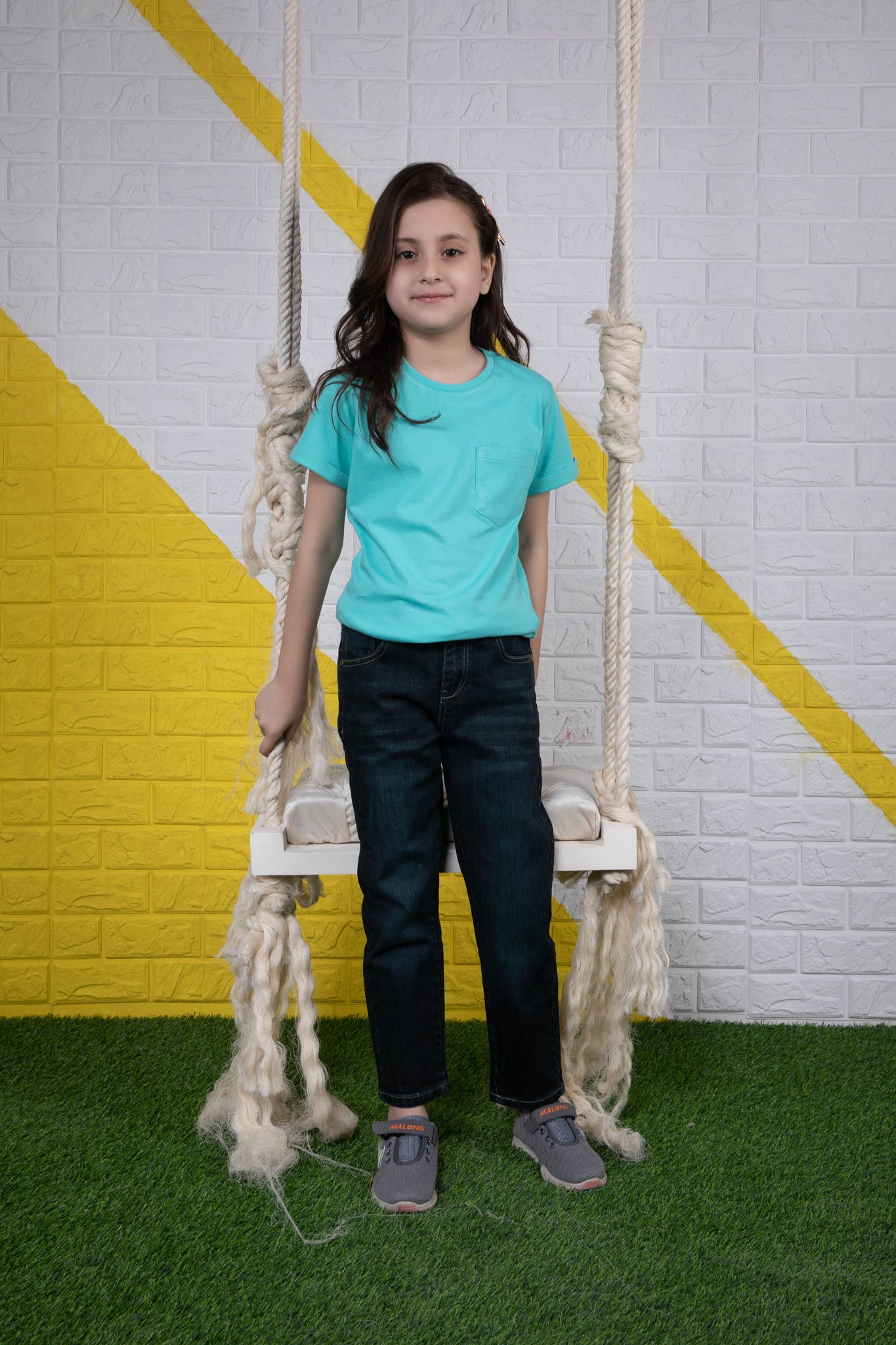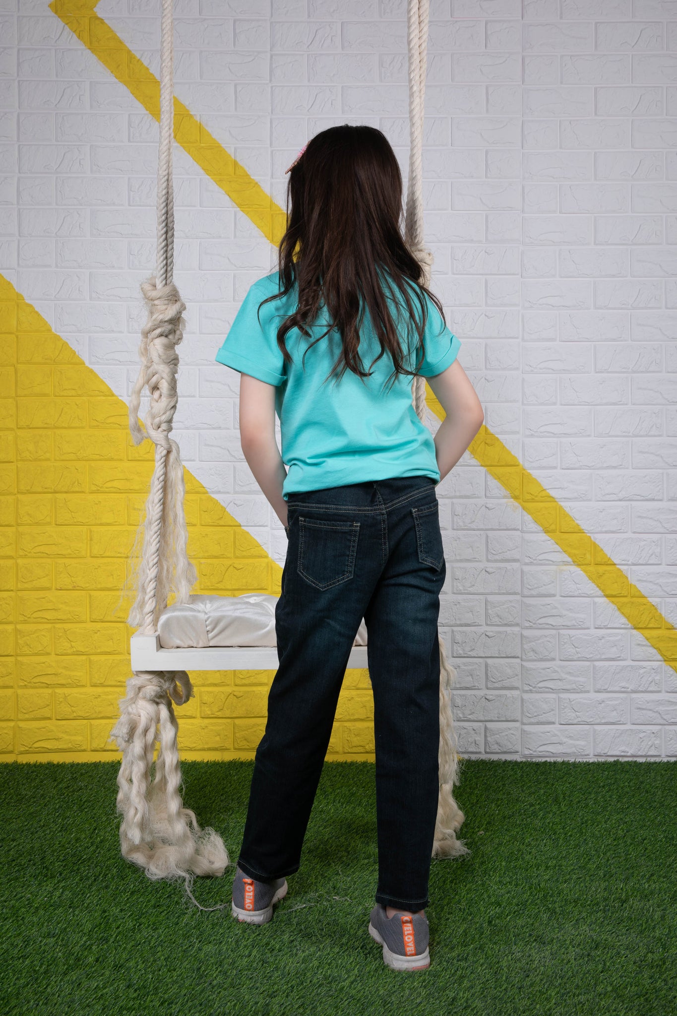 Girls Skinny Fit Denim Skinny fit jeans with adjustable interior waistband and front button closure.