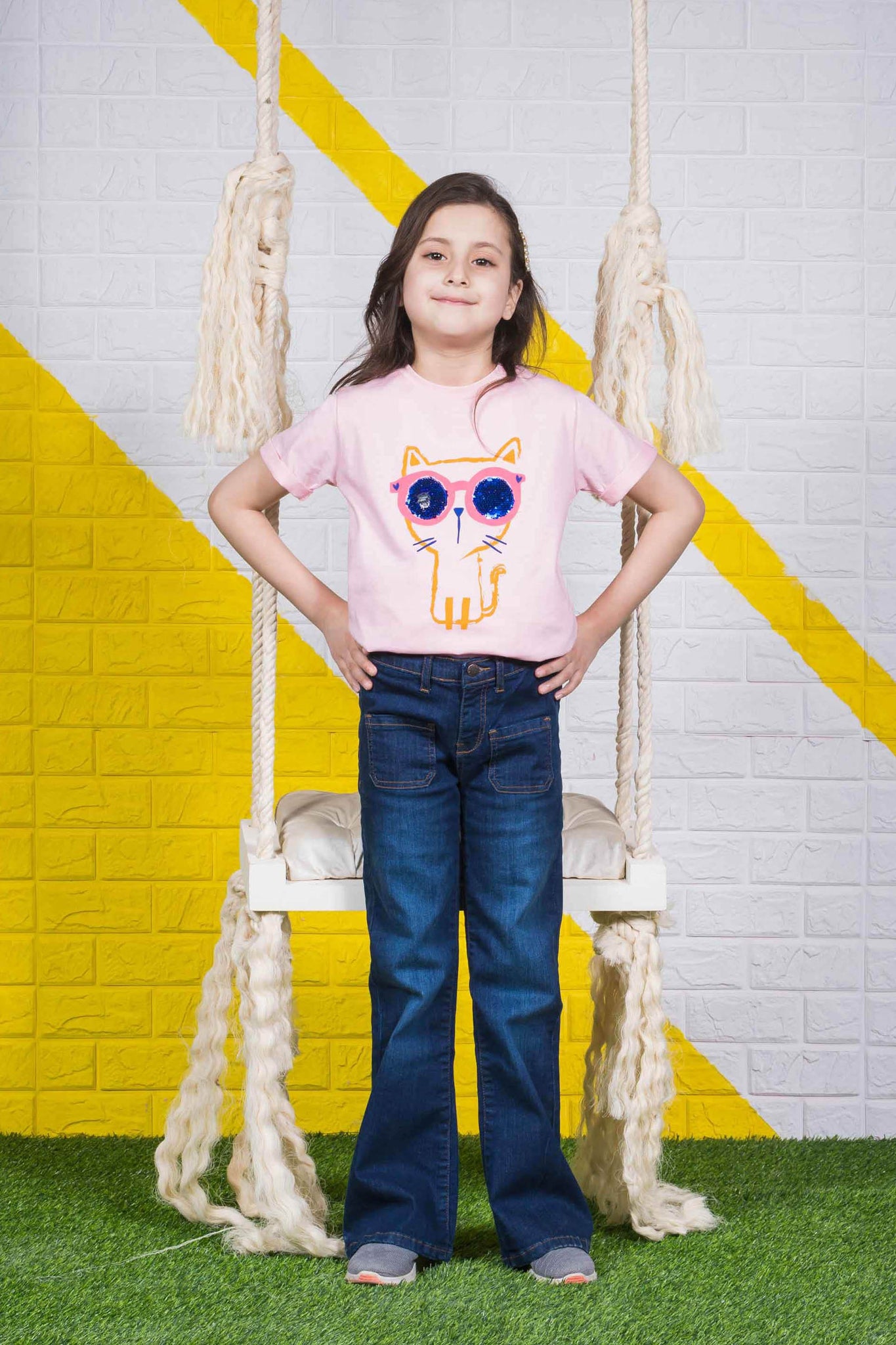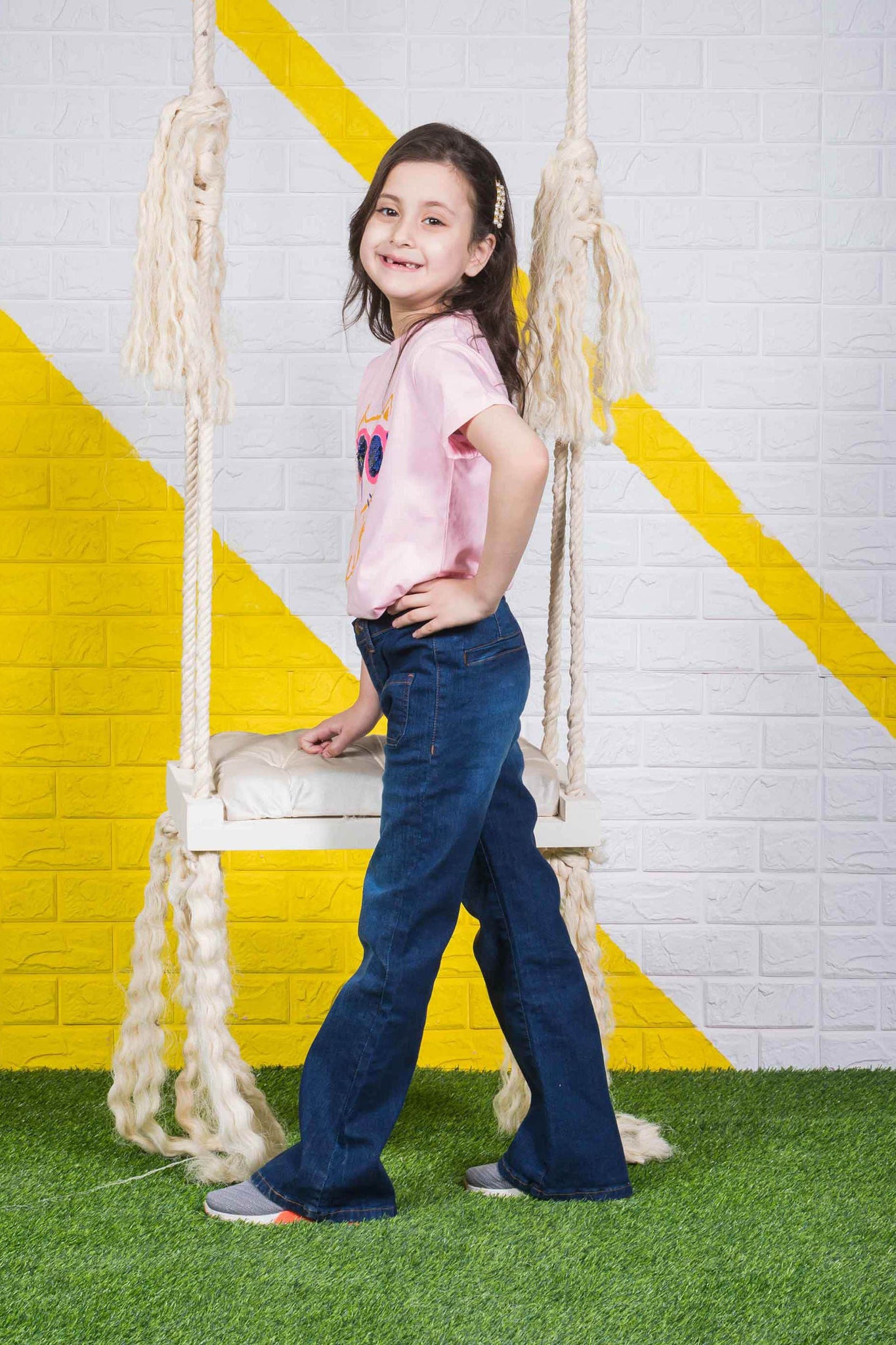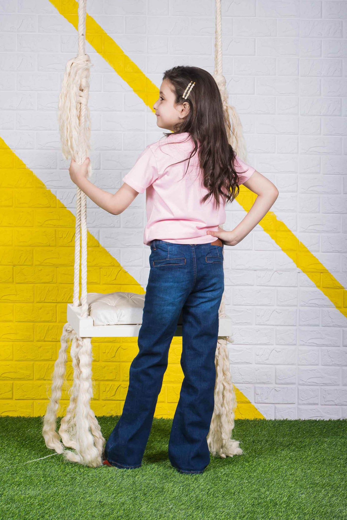 Girls Boot Cut Denim Flared jeans with adjustable interior waistband and front button closure.