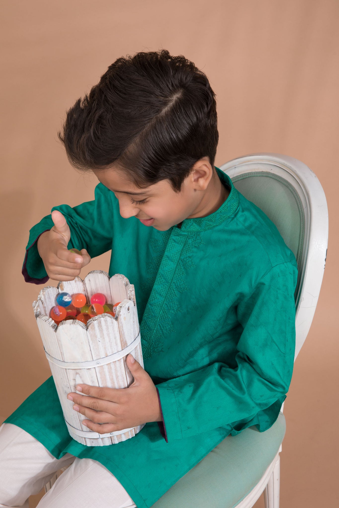 Lie on the grass on a summer day and watch the clouds float across the sky after a long adventurous day in this striking green kurta.
