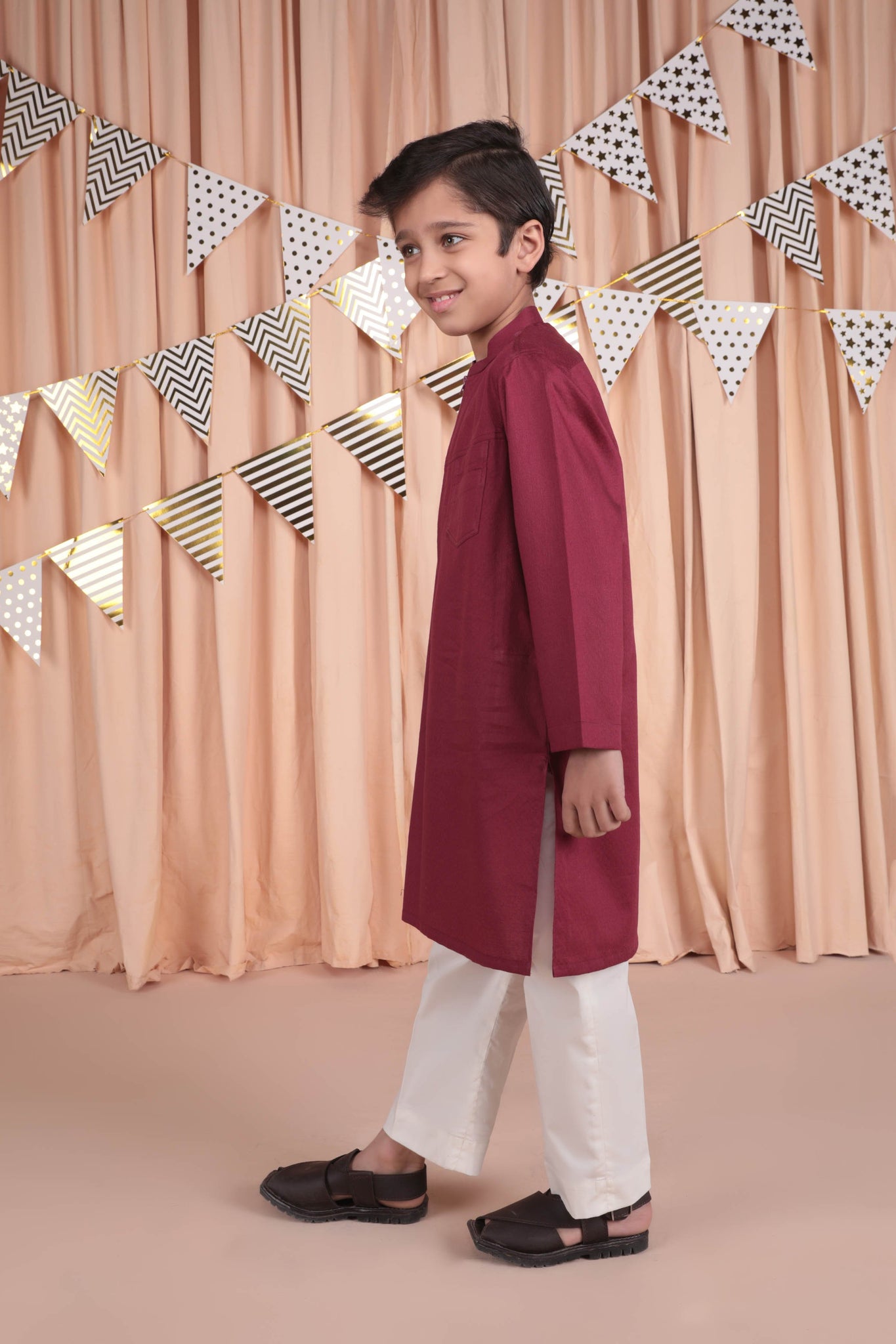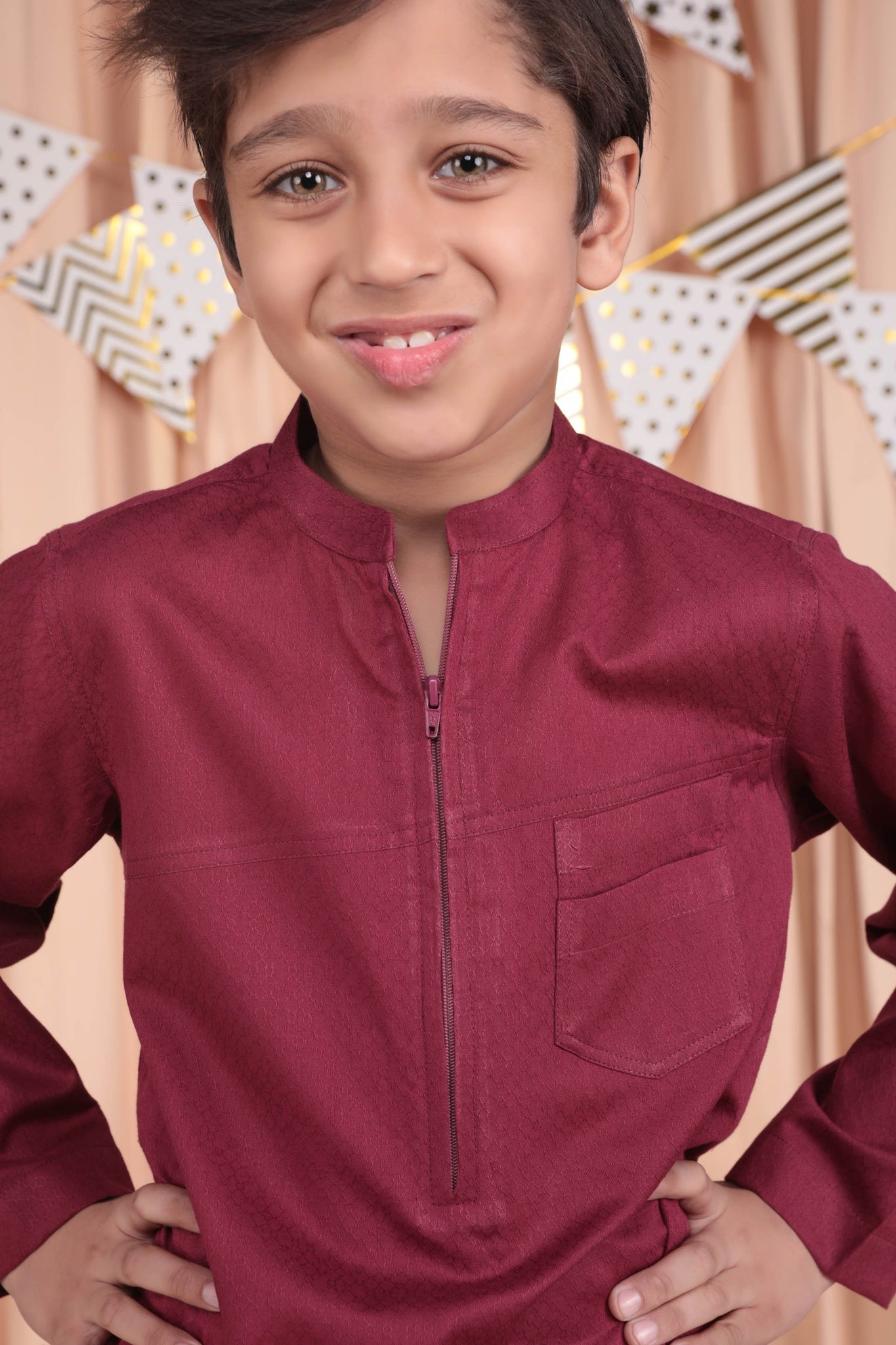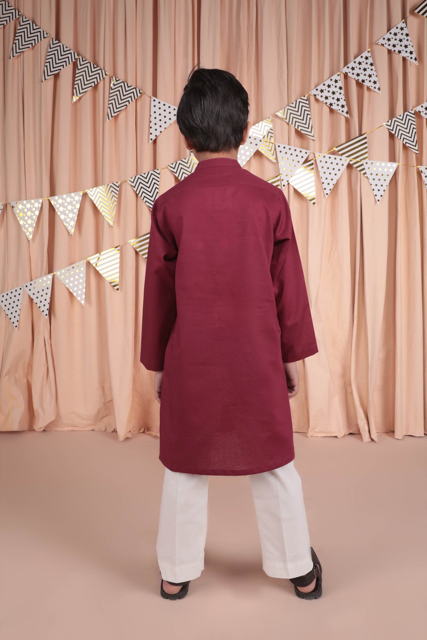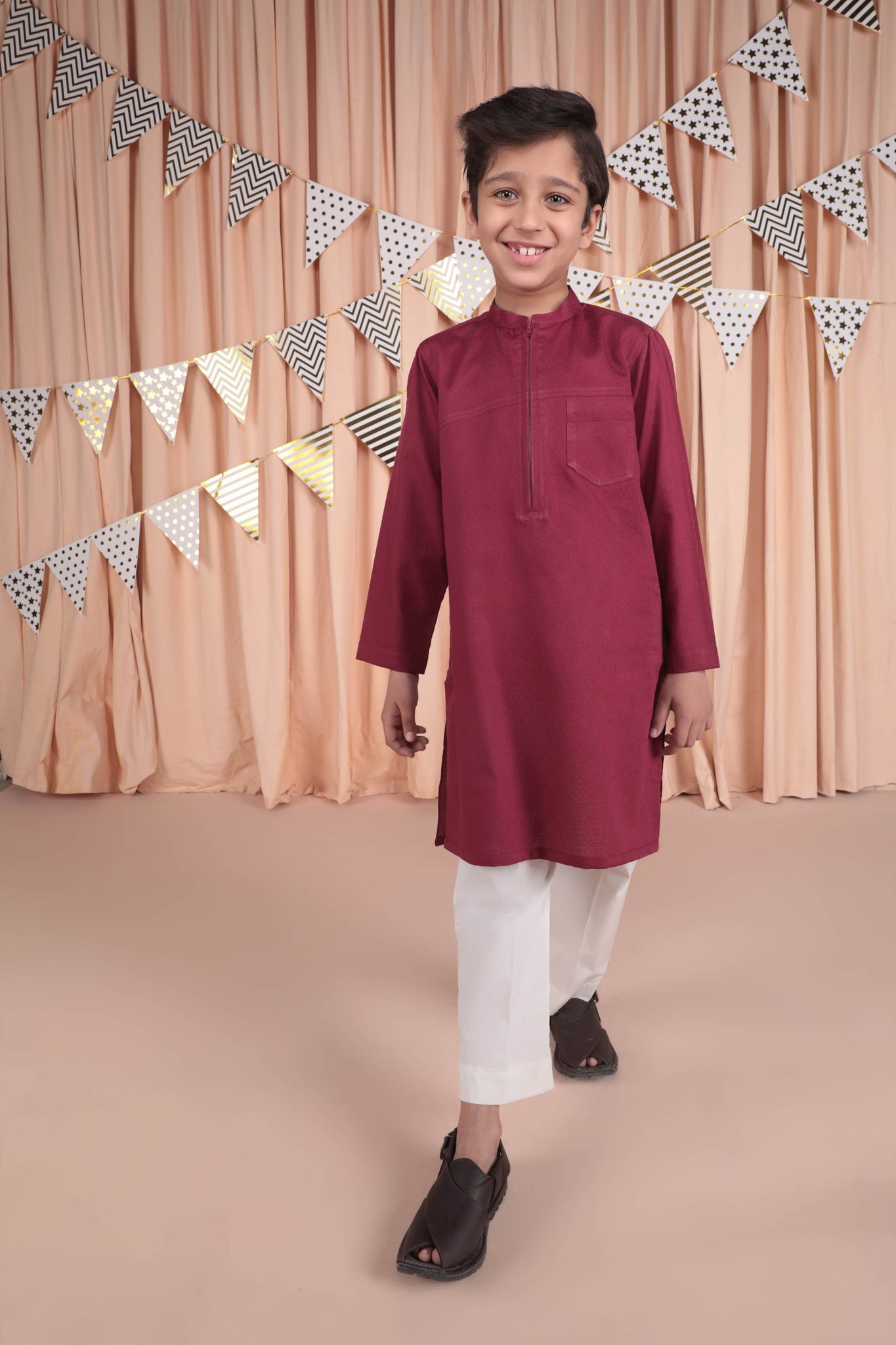 Solid deep red kurta, featuring zipped pockets, ban neckline and a straight silhouette.