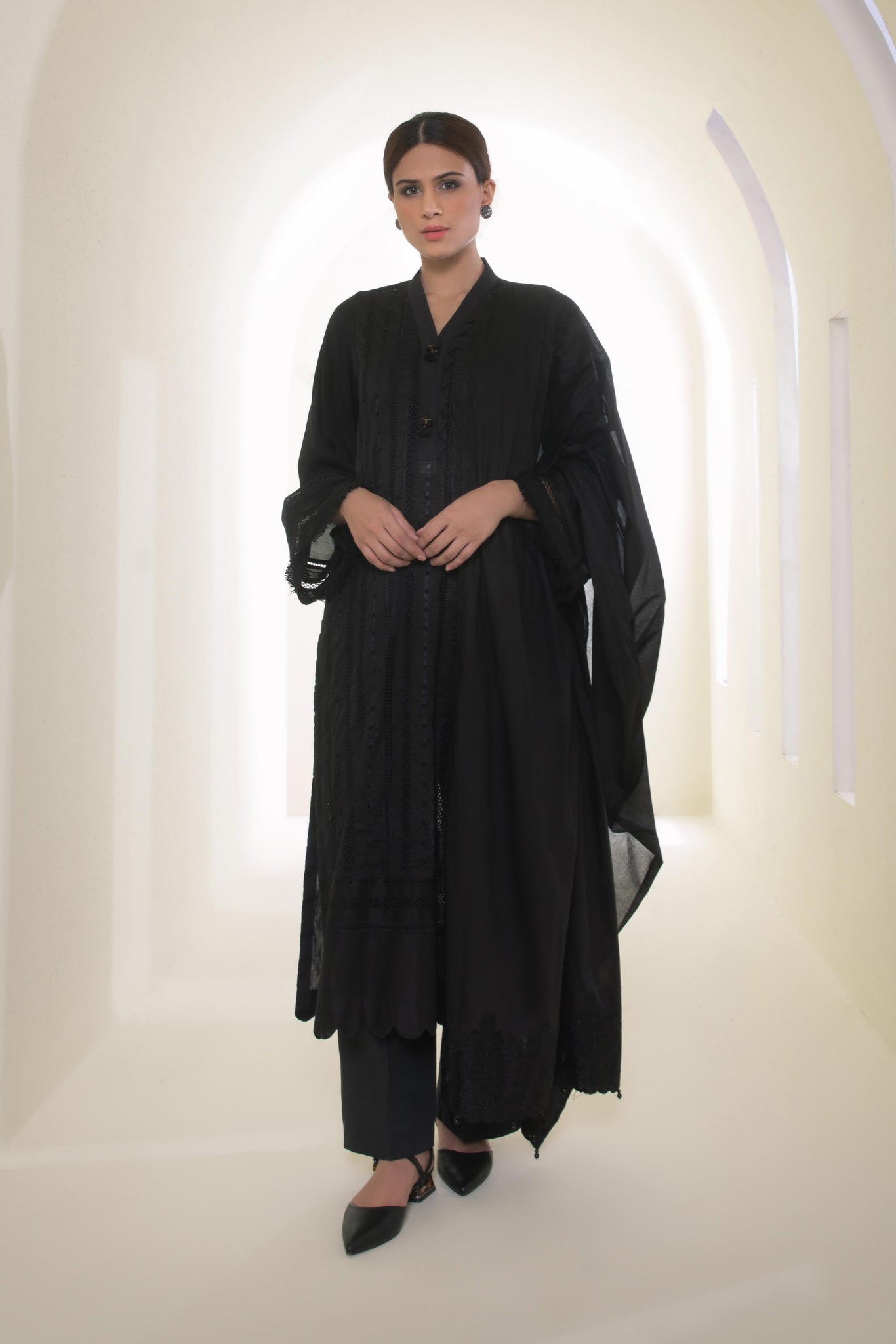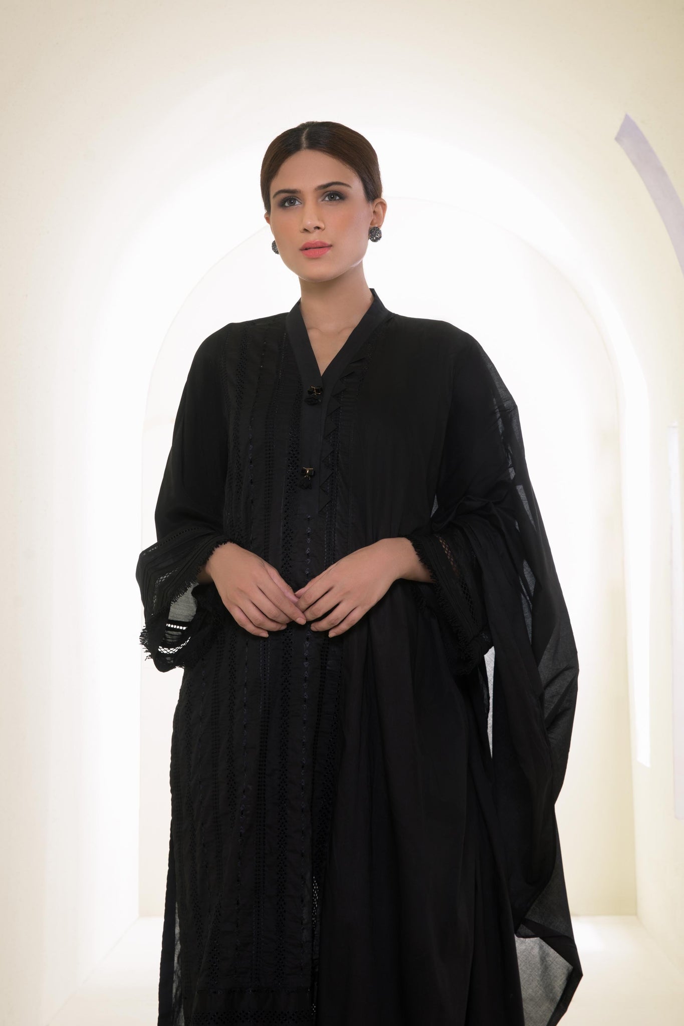 A sophisticated all black look with delicate embroidery all over to let the summer grace shine upon you all day.