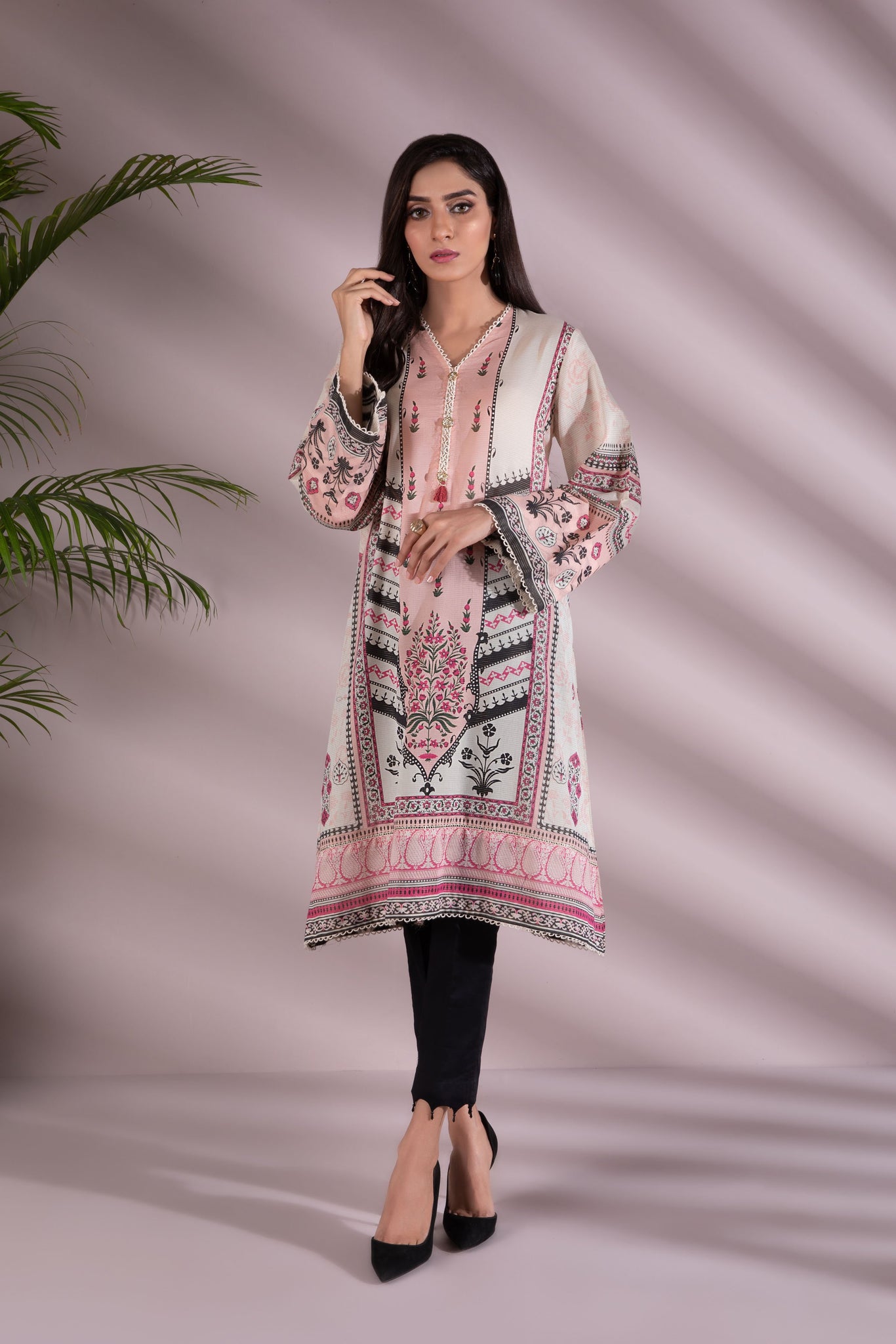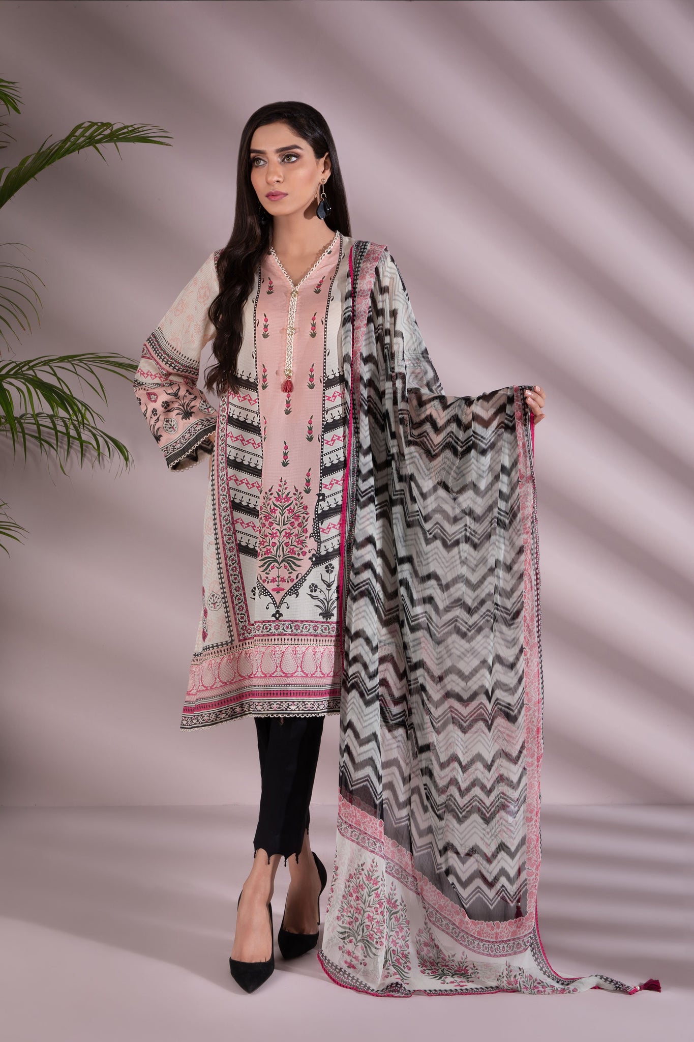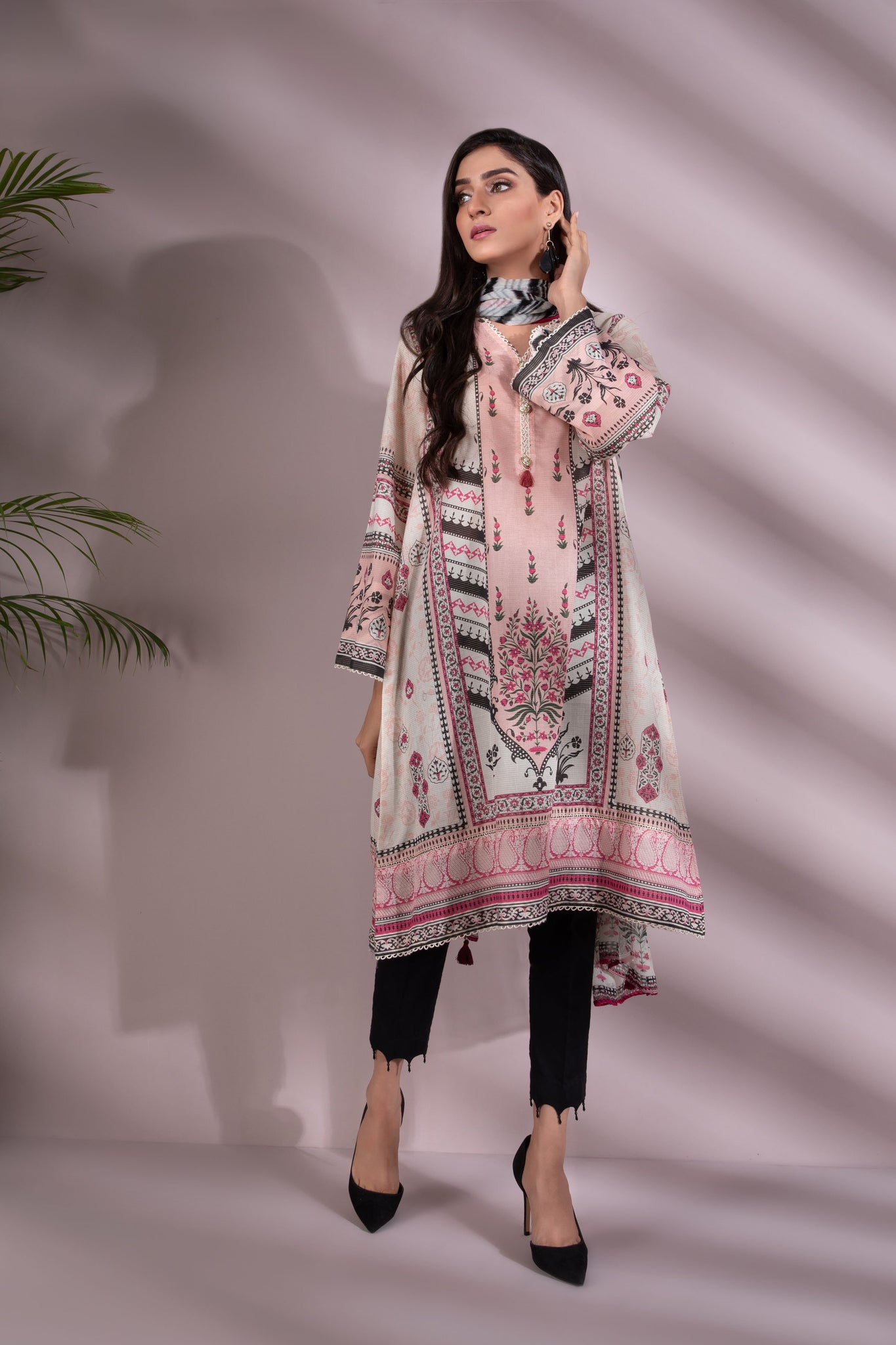 This A-line zari lawn apparel will 'woo' all your friends and family members as it is gloriously infused with prints and patterns all over.