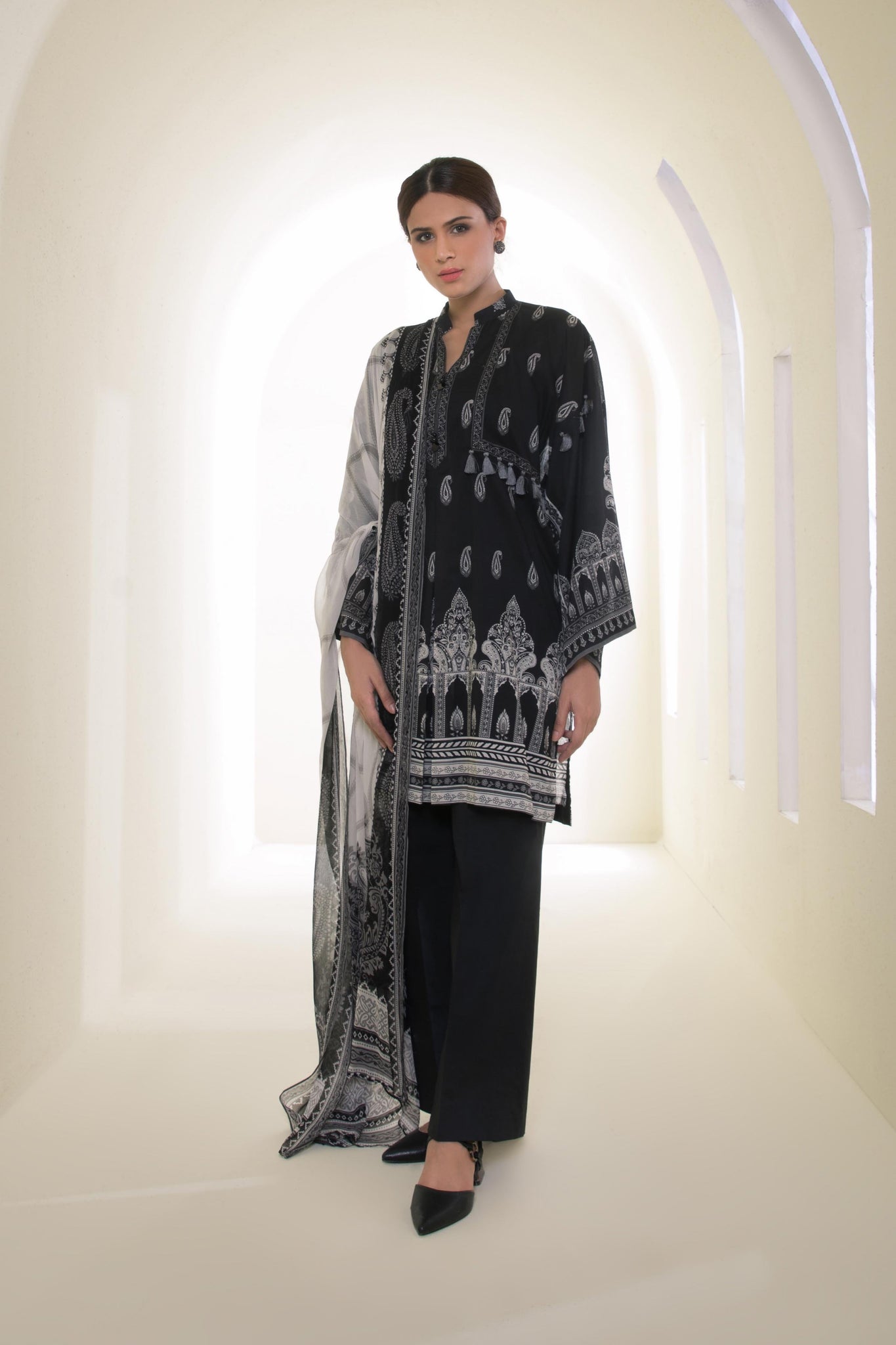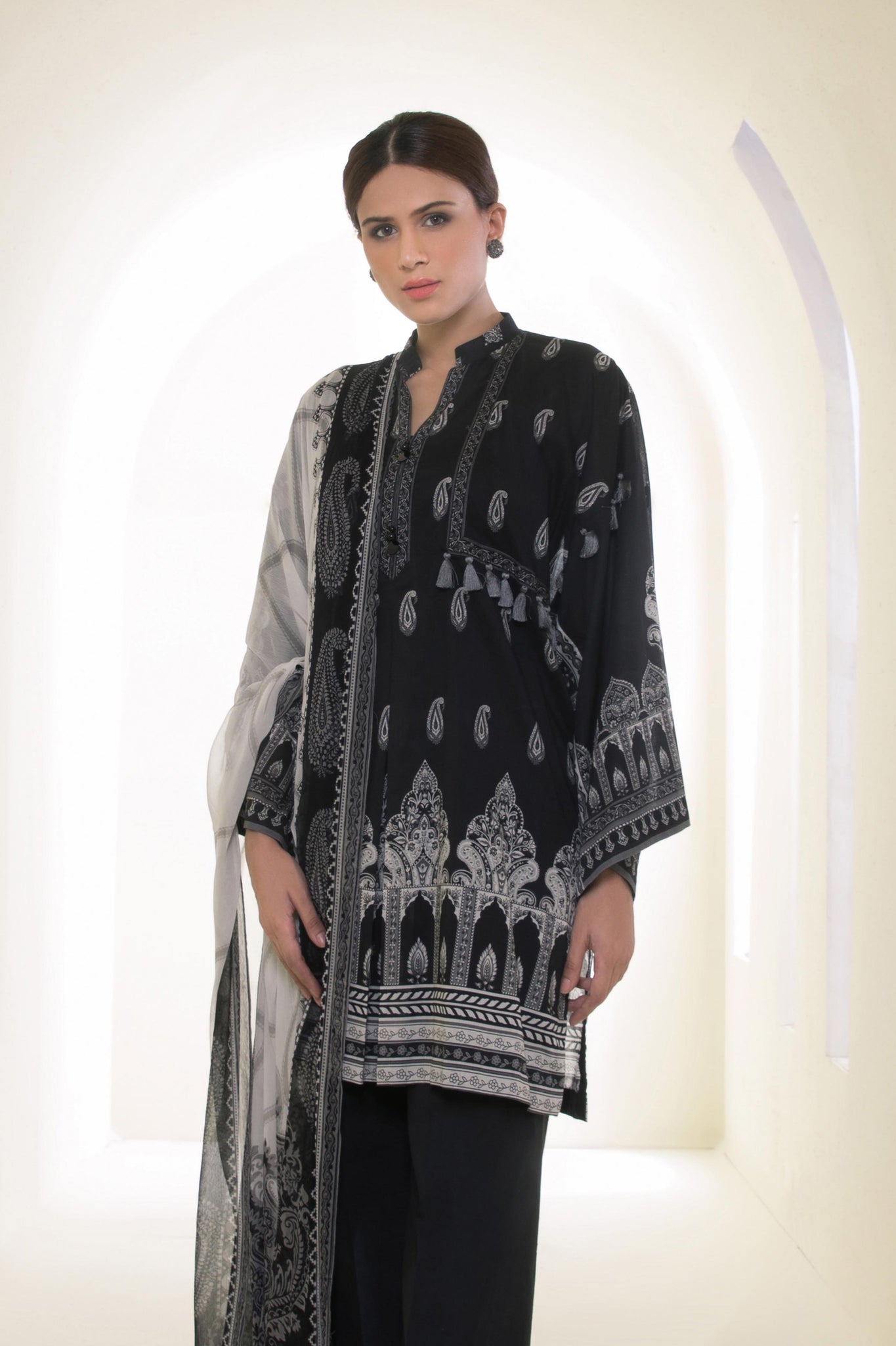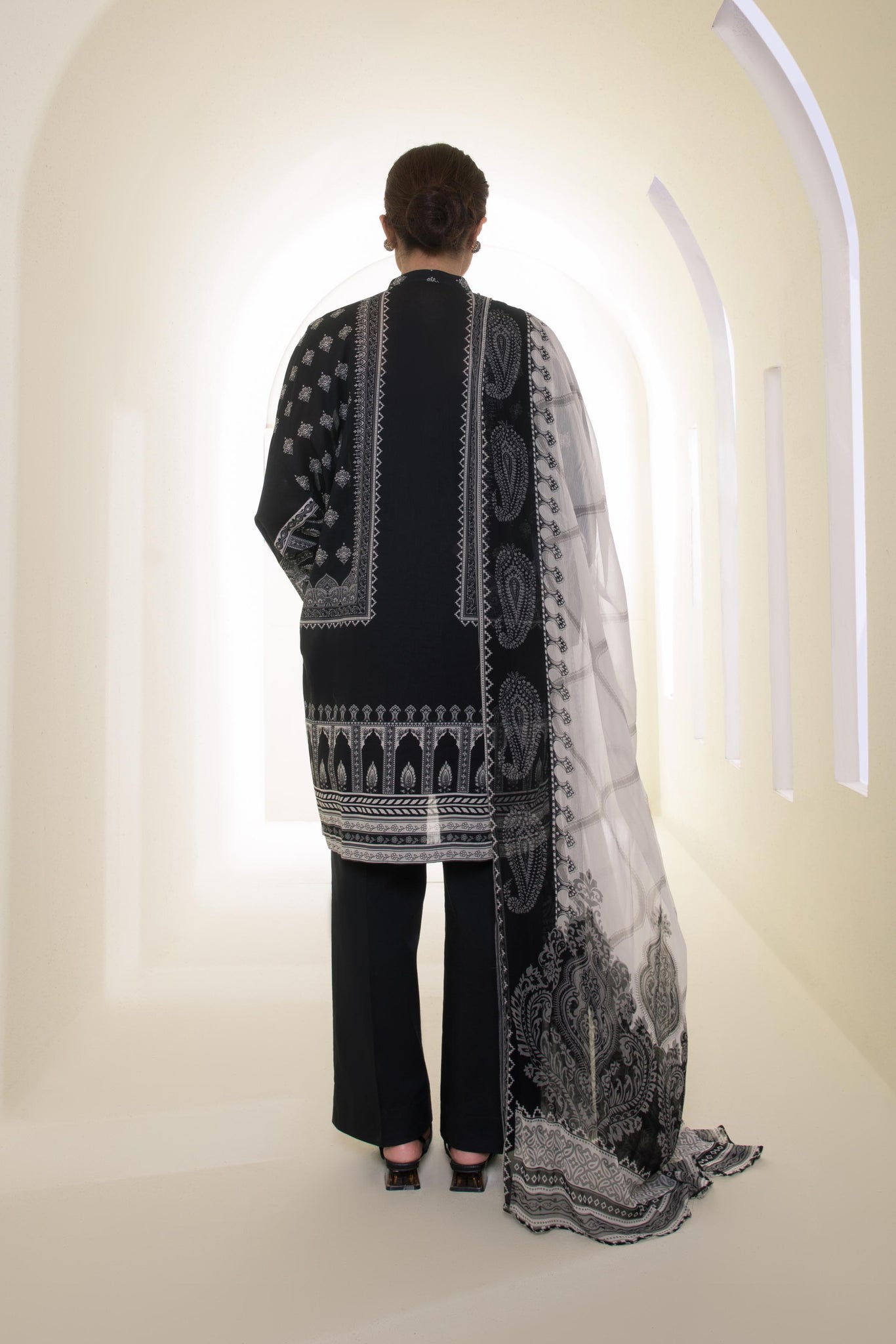 Embrace the sophisticated aesthetic of this piece by pairing it with traditional silver jhumkas.