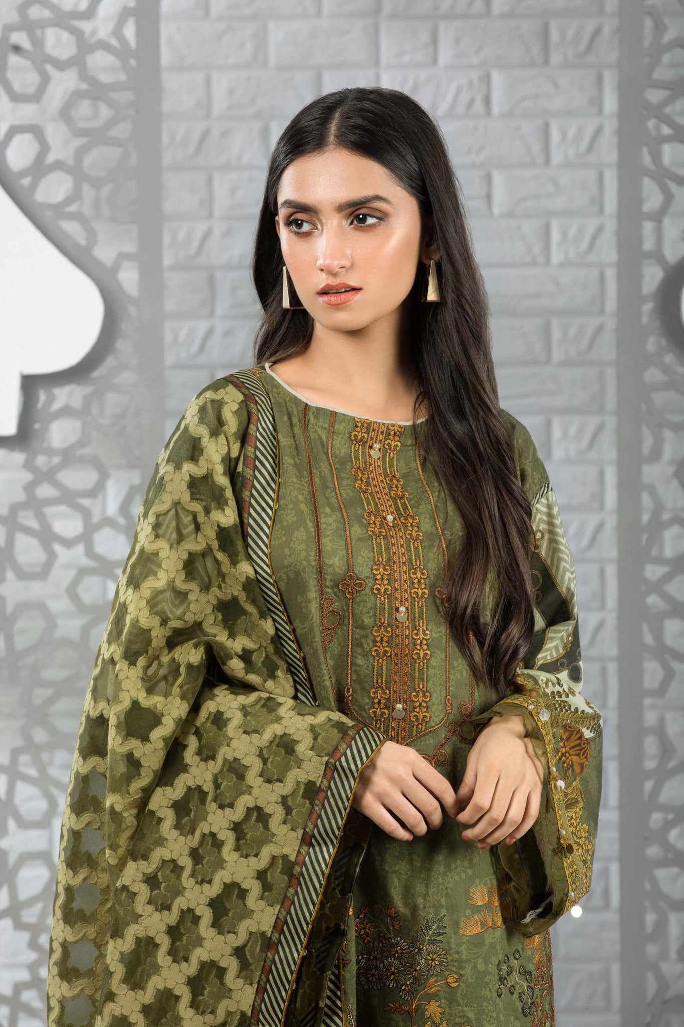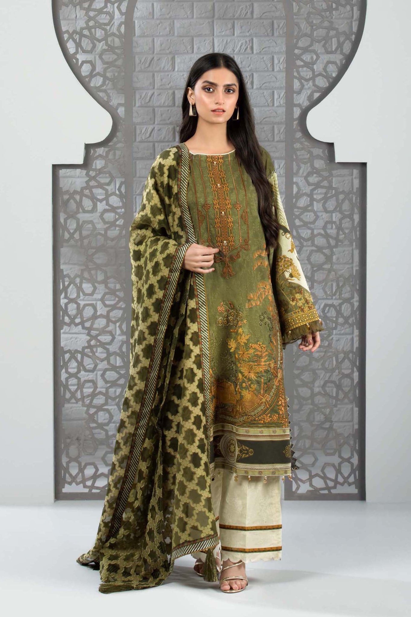 This ensemble looks opulent as it features rich viridity all over, crafted in sumptuous print and paired with gorgeous dupatta in deluxe fabric.