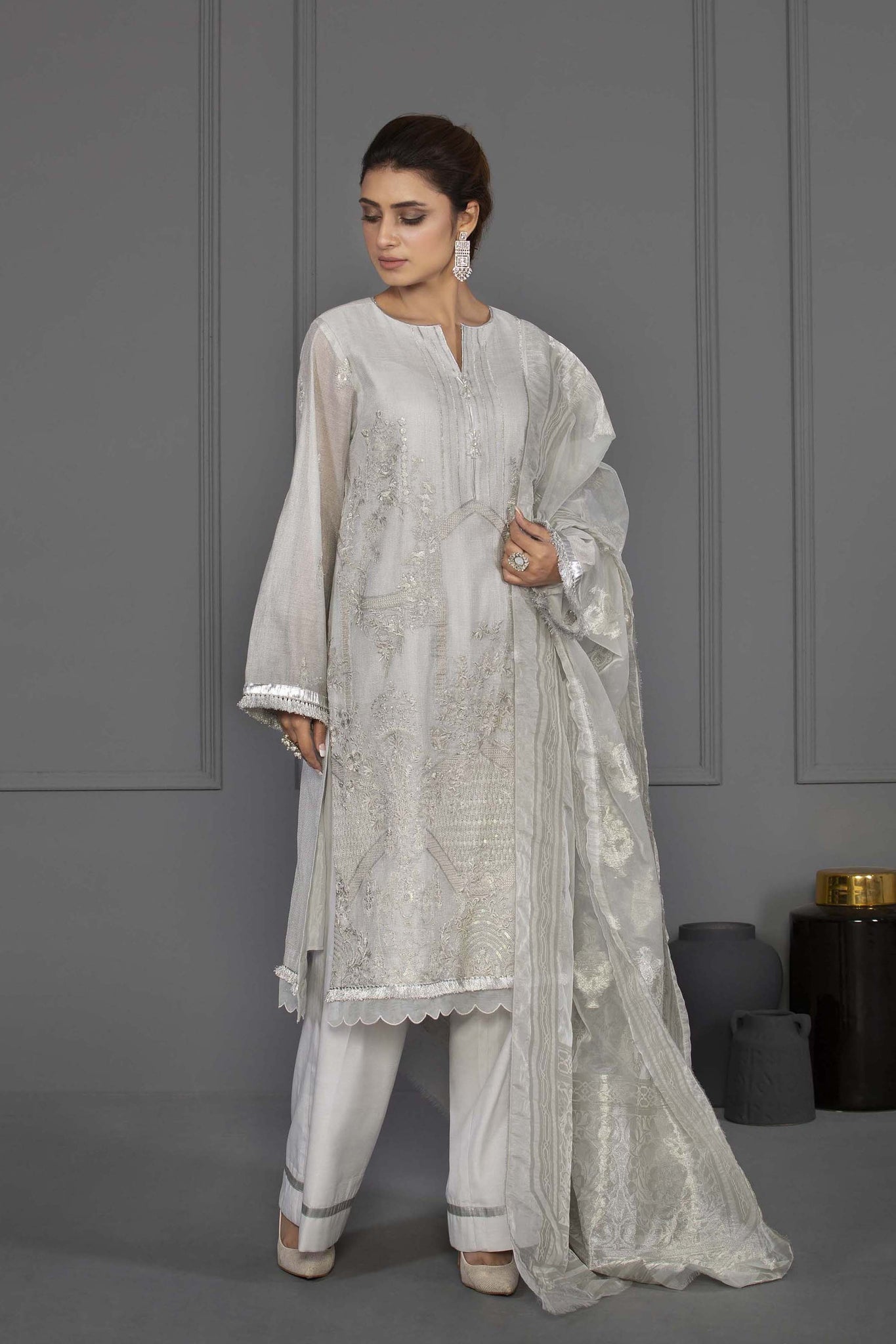 Embroidered Khaddi Zari Net Shirt Front 1.15 m
