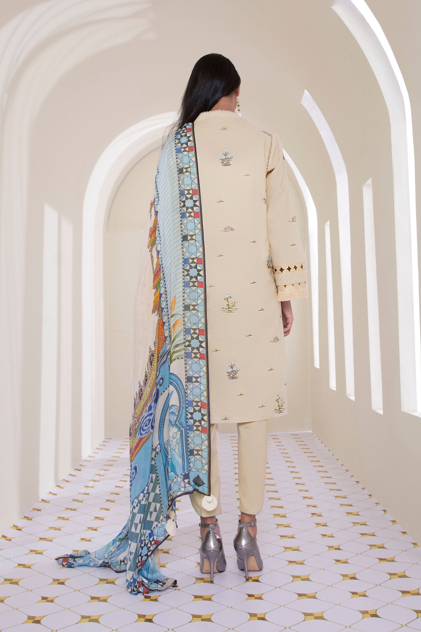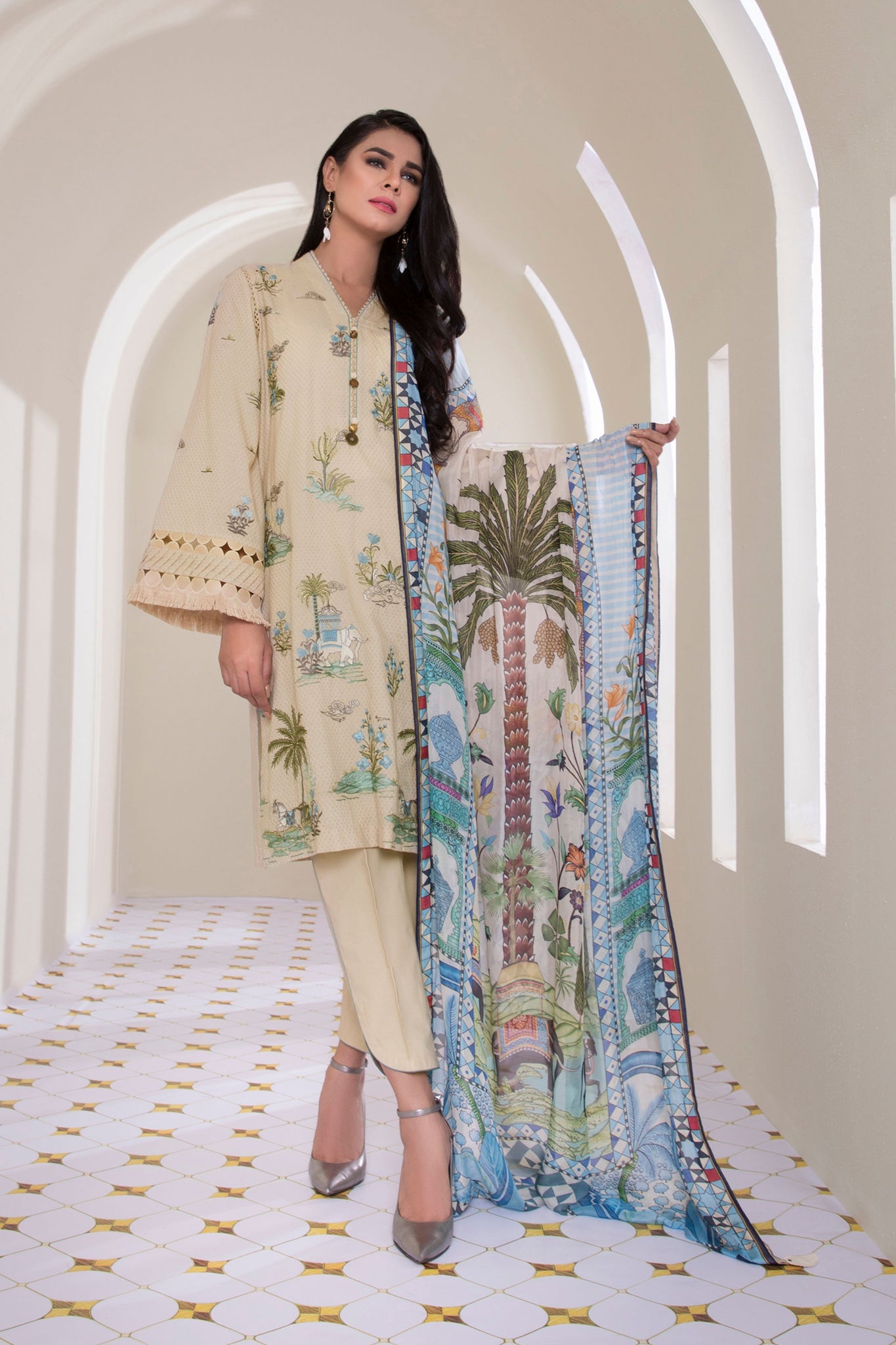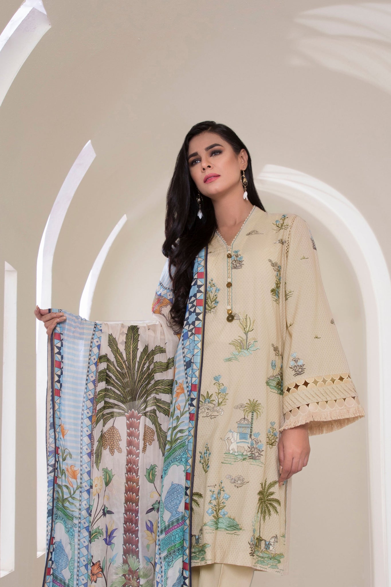 Lawn has never looked so lavish! This glamorous off-white shirt comes with a fancy dupatta - perfect for a formal event.