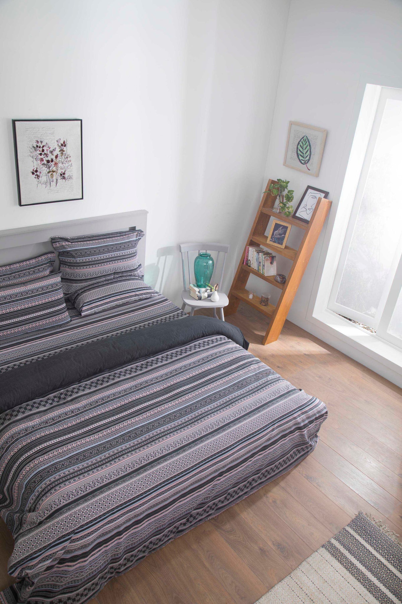 This masterpiece is a combination of various eclectic patterns in the classic black and white palette.