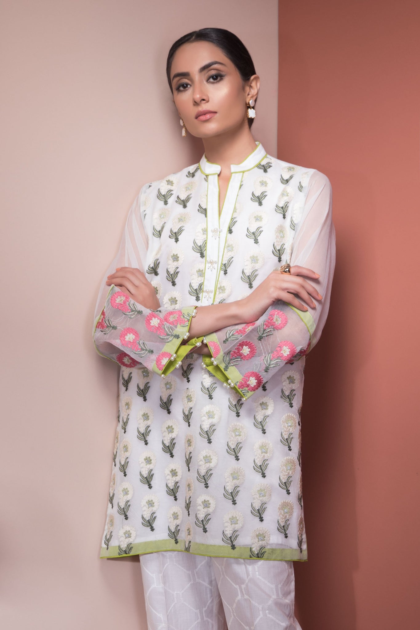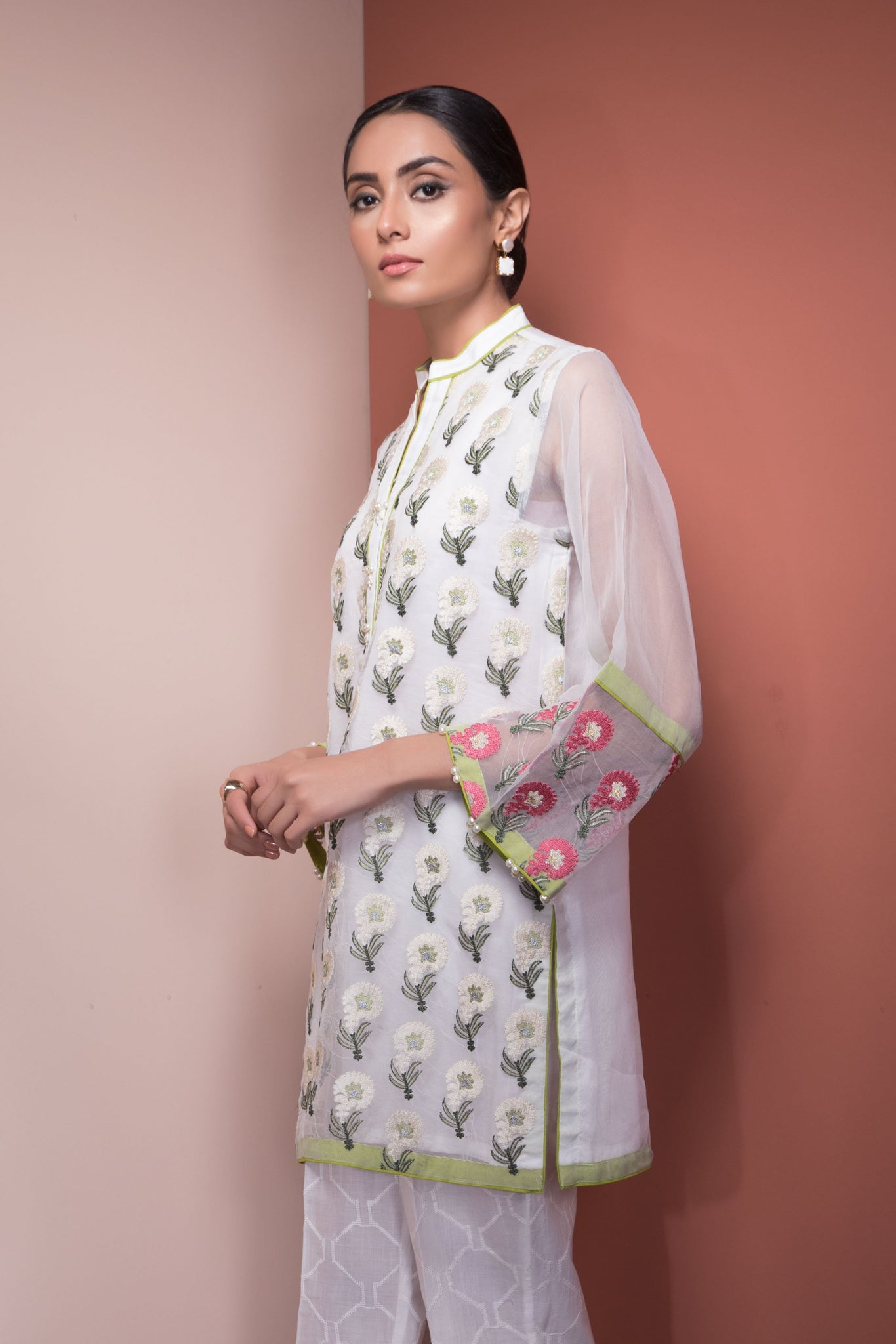 A classic white tulip shalwar will add to the delicate vibe of this look.