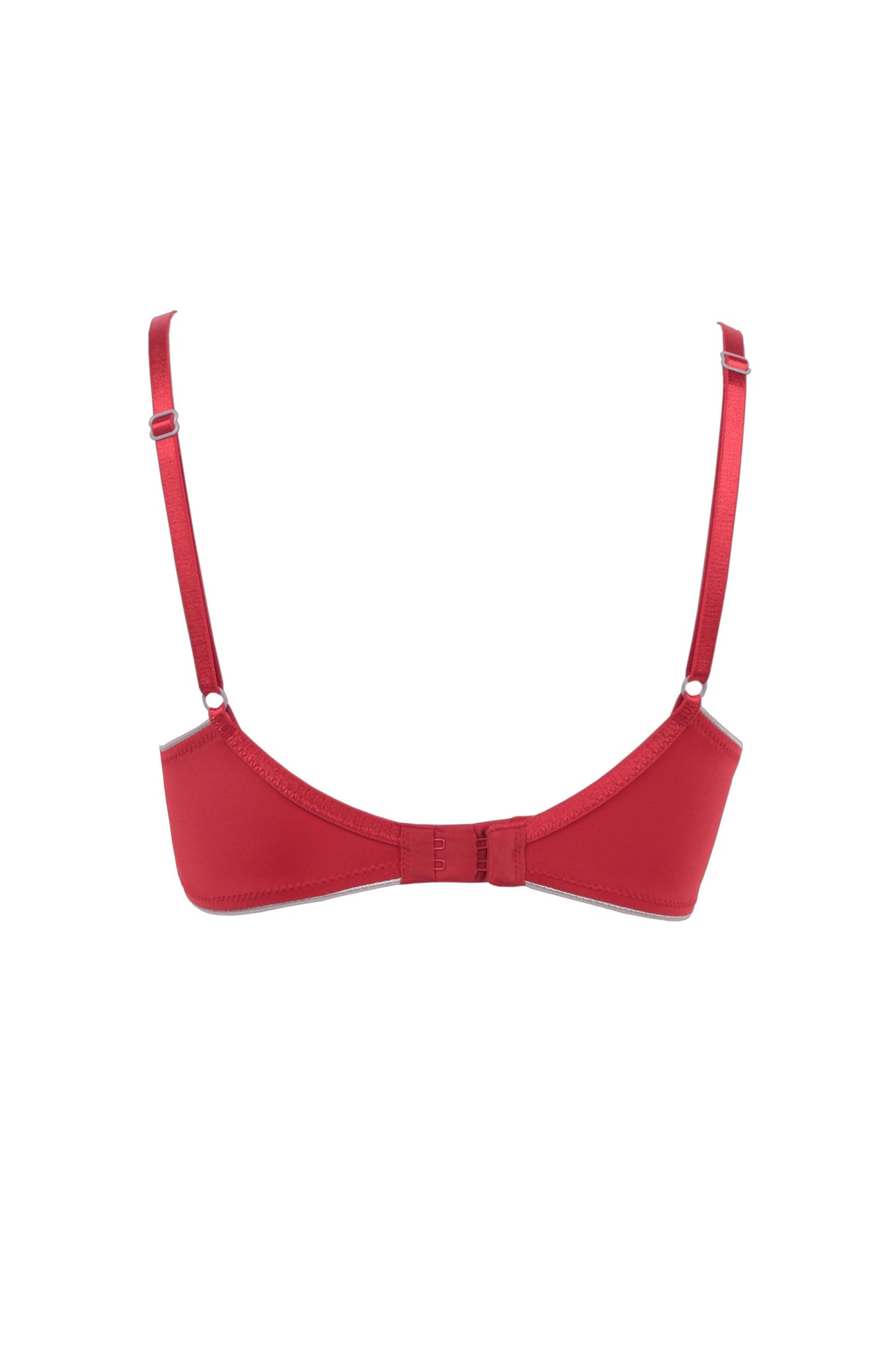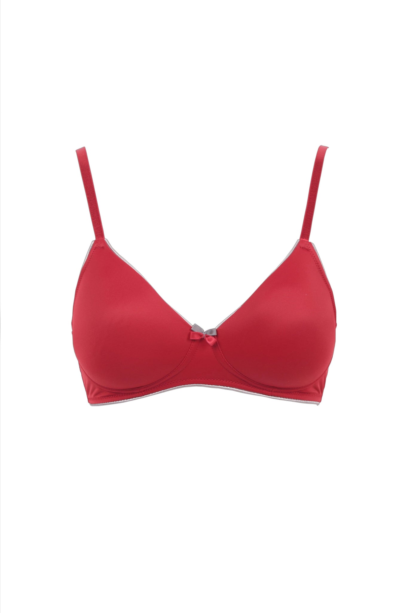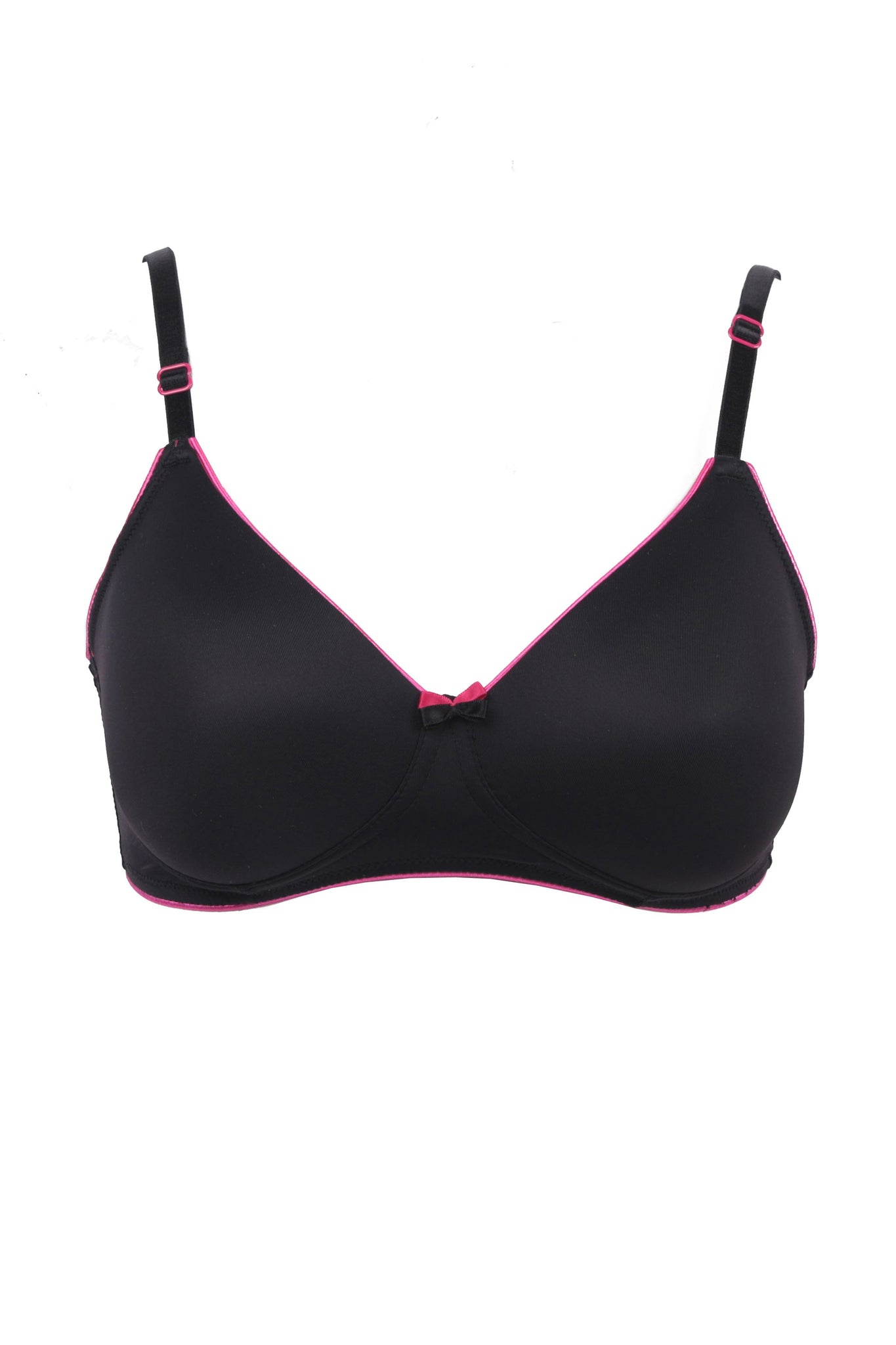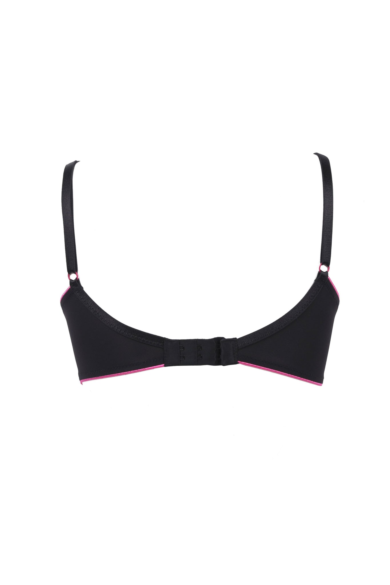 A full cover, padded, non-wired, microfiber bra with contrast detailing on the cup and a two tone bow that adds a touch of femininity.