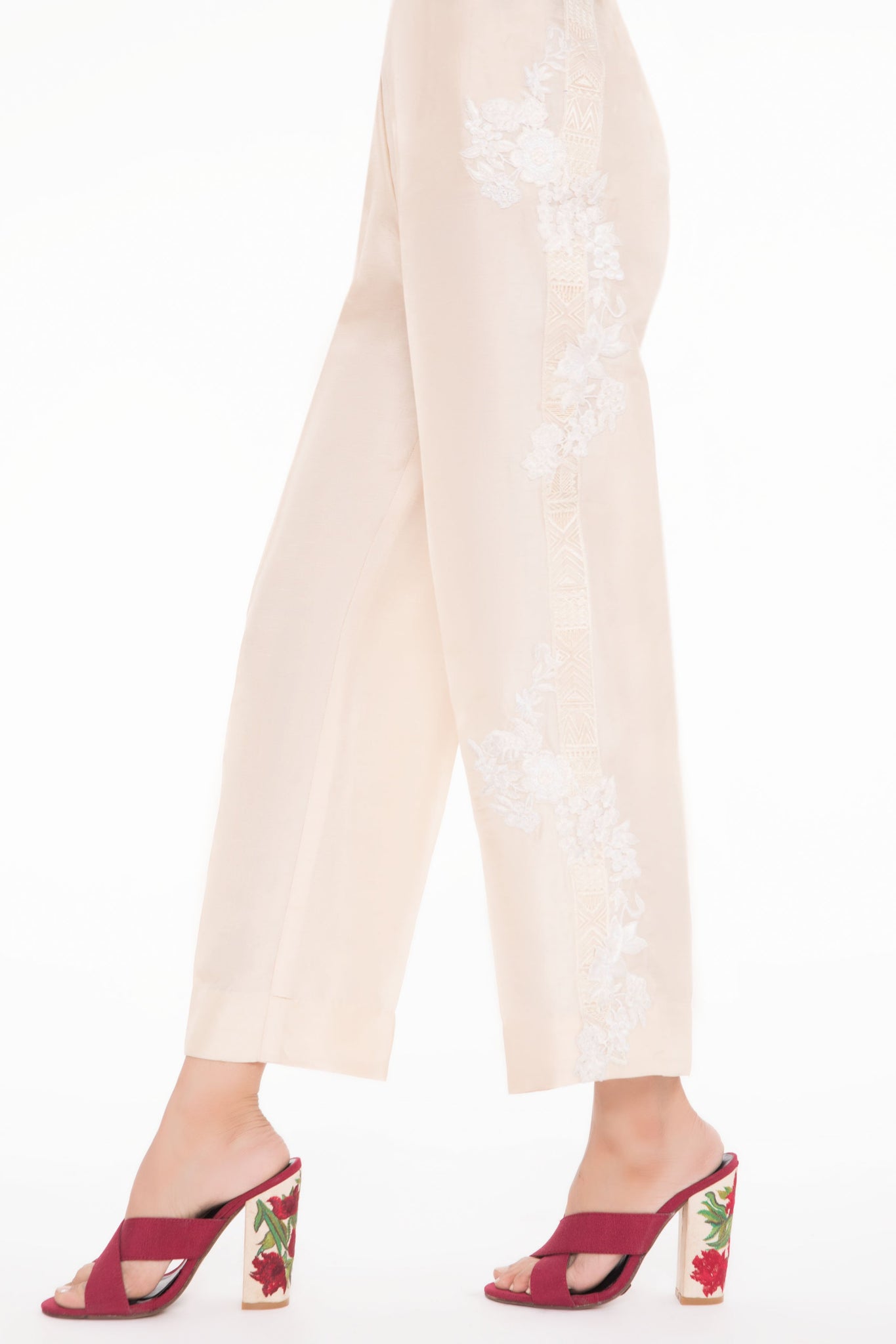 Nothing personifies style like stylish tapered pants and the white florals add such a sophisticated touch to these pants.