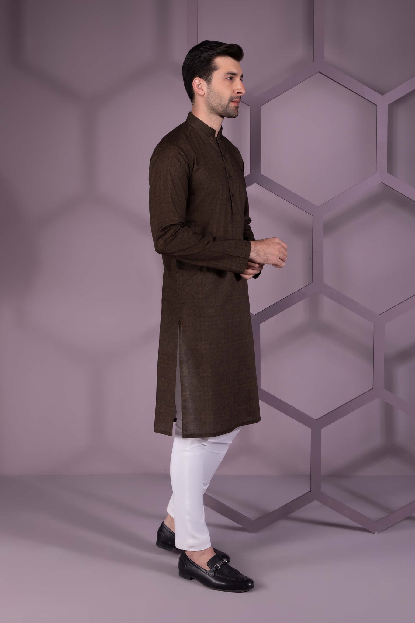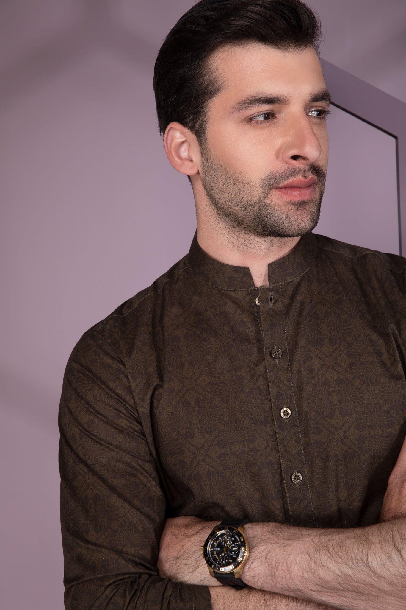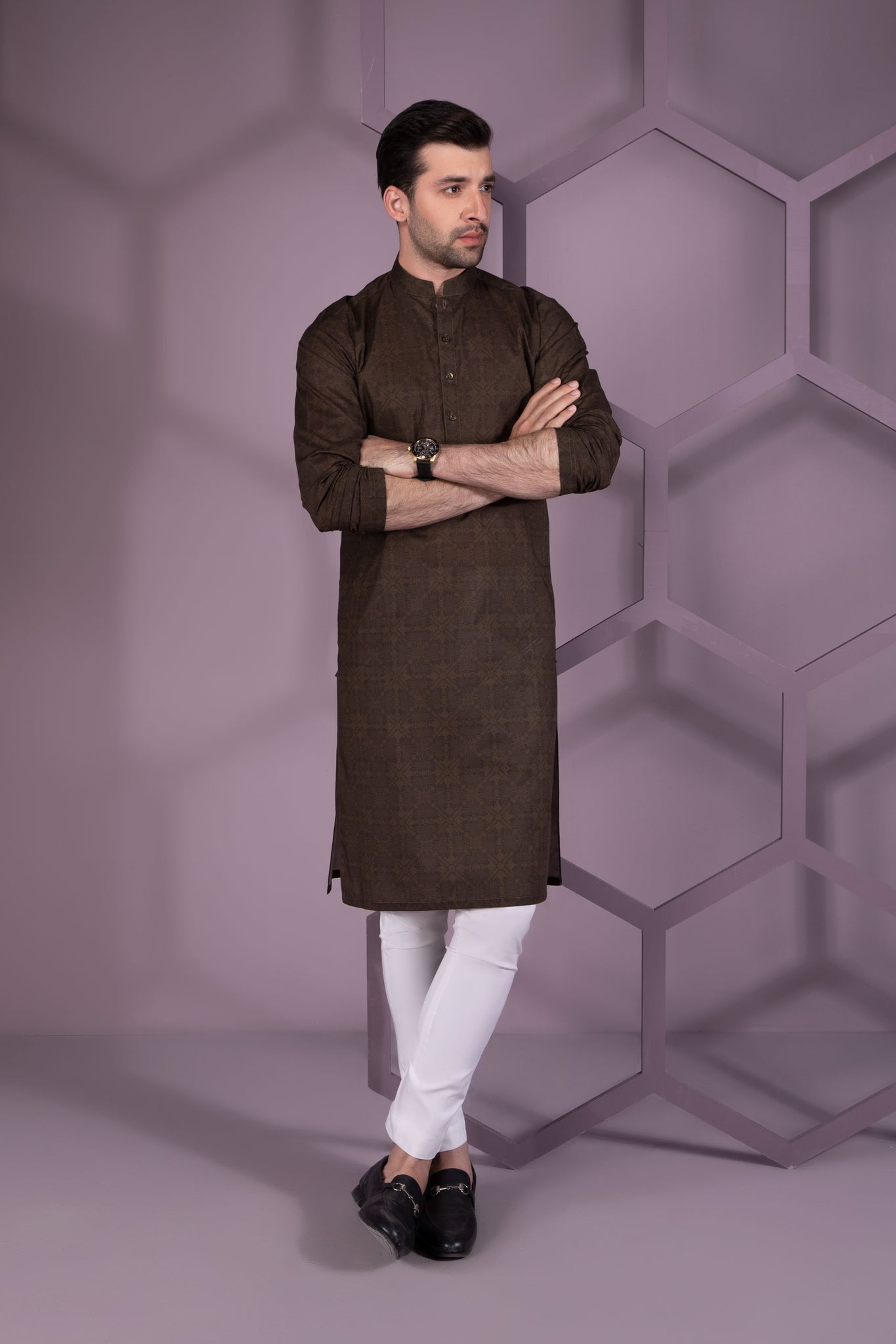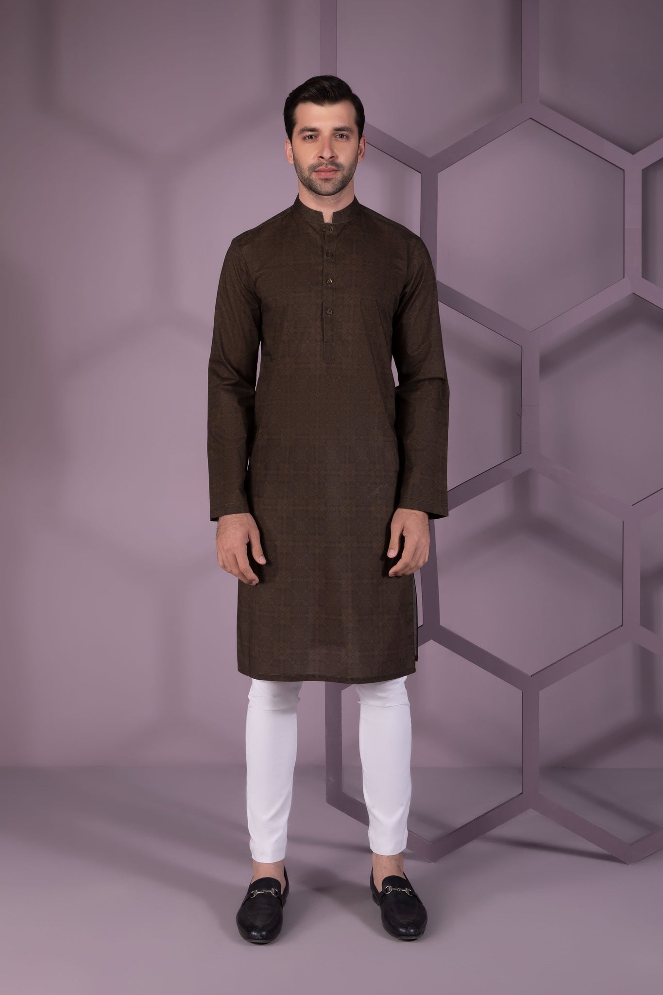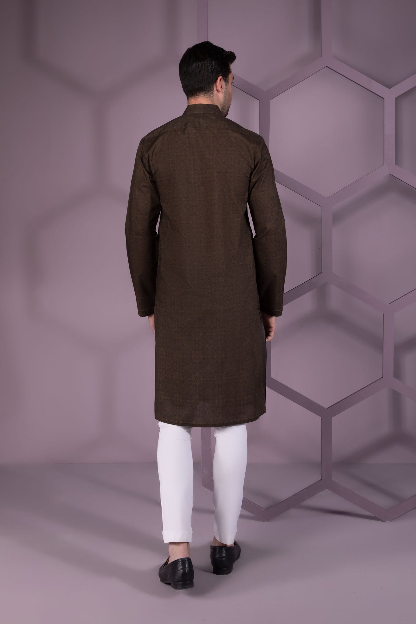 This self-printed brown kurta crafted from 100% cotton Self-printed brown kurta crafted from 100% cotton