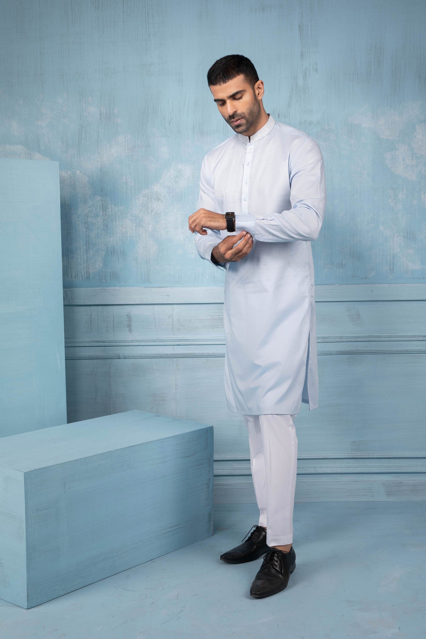 Modern, elegant and stellar jacquard kurta designed to look ravishingly traditional at all your formal events.