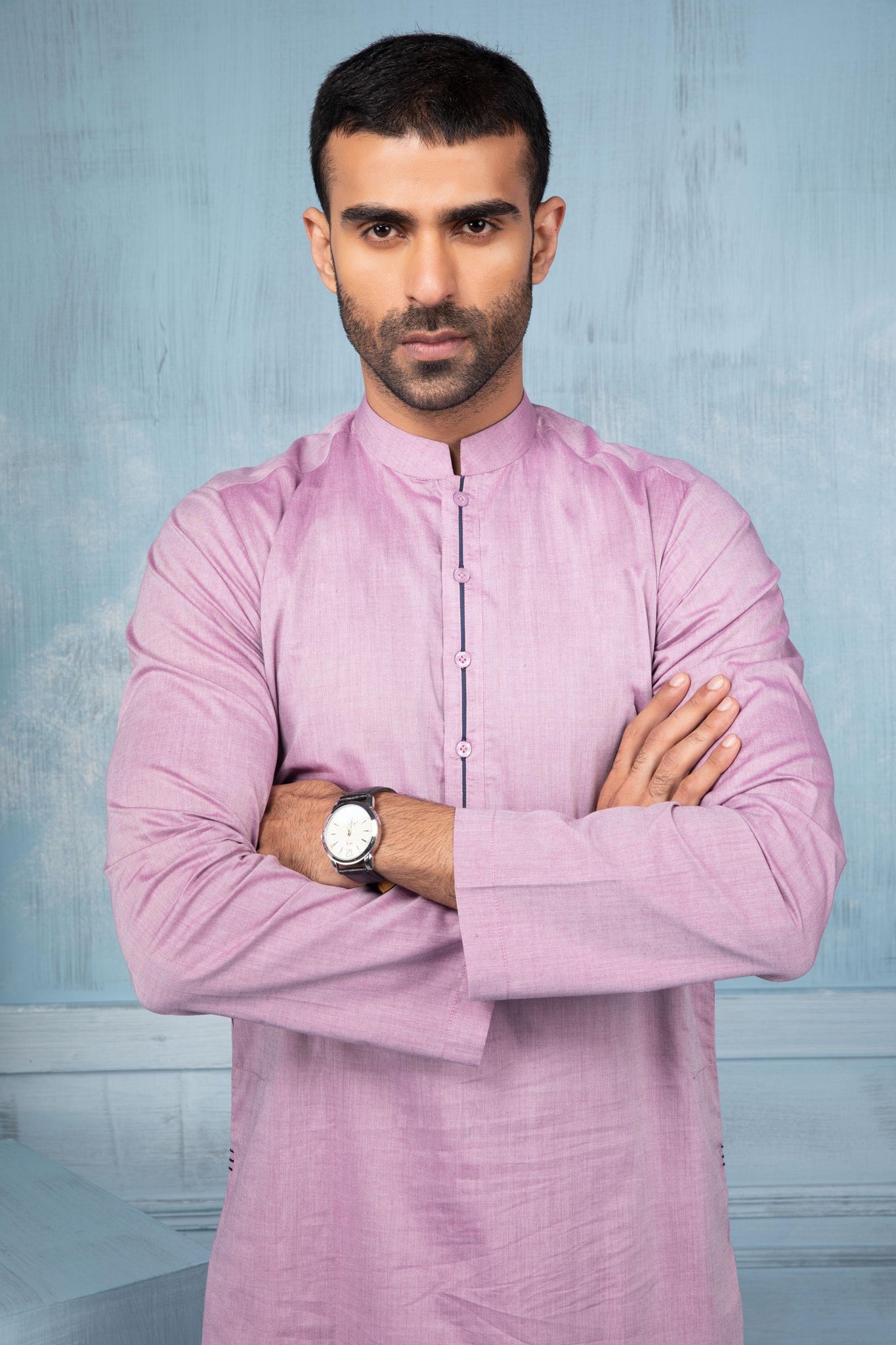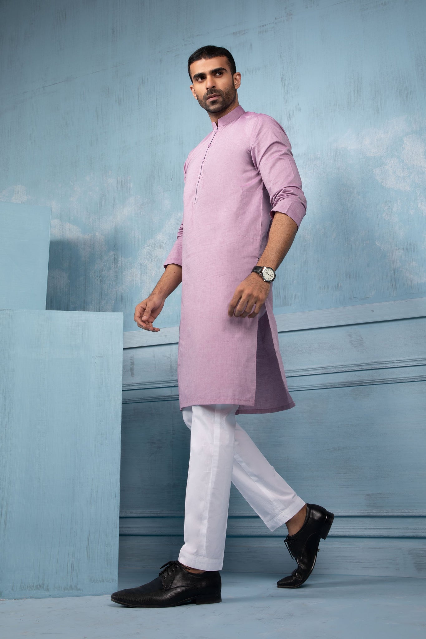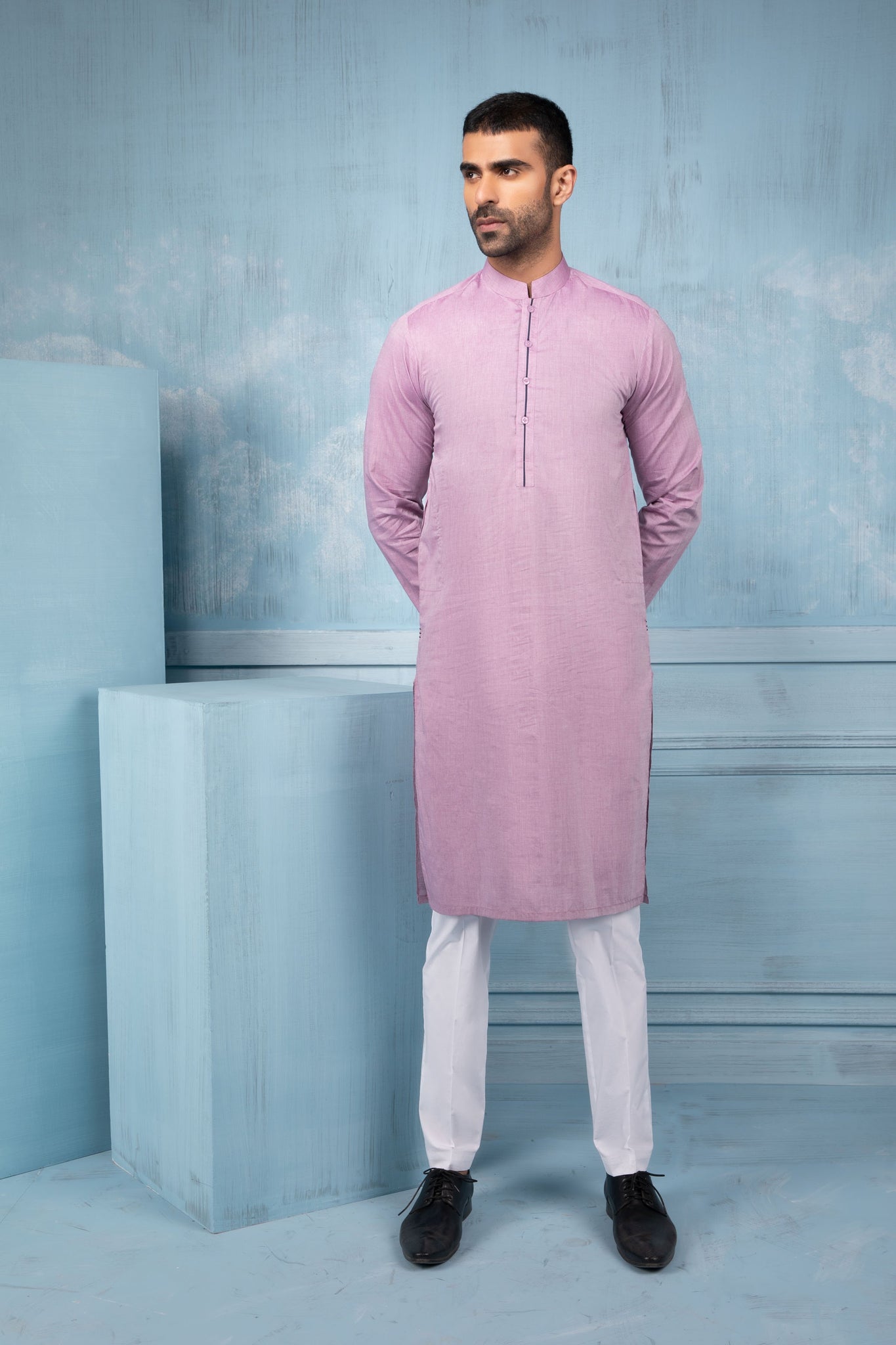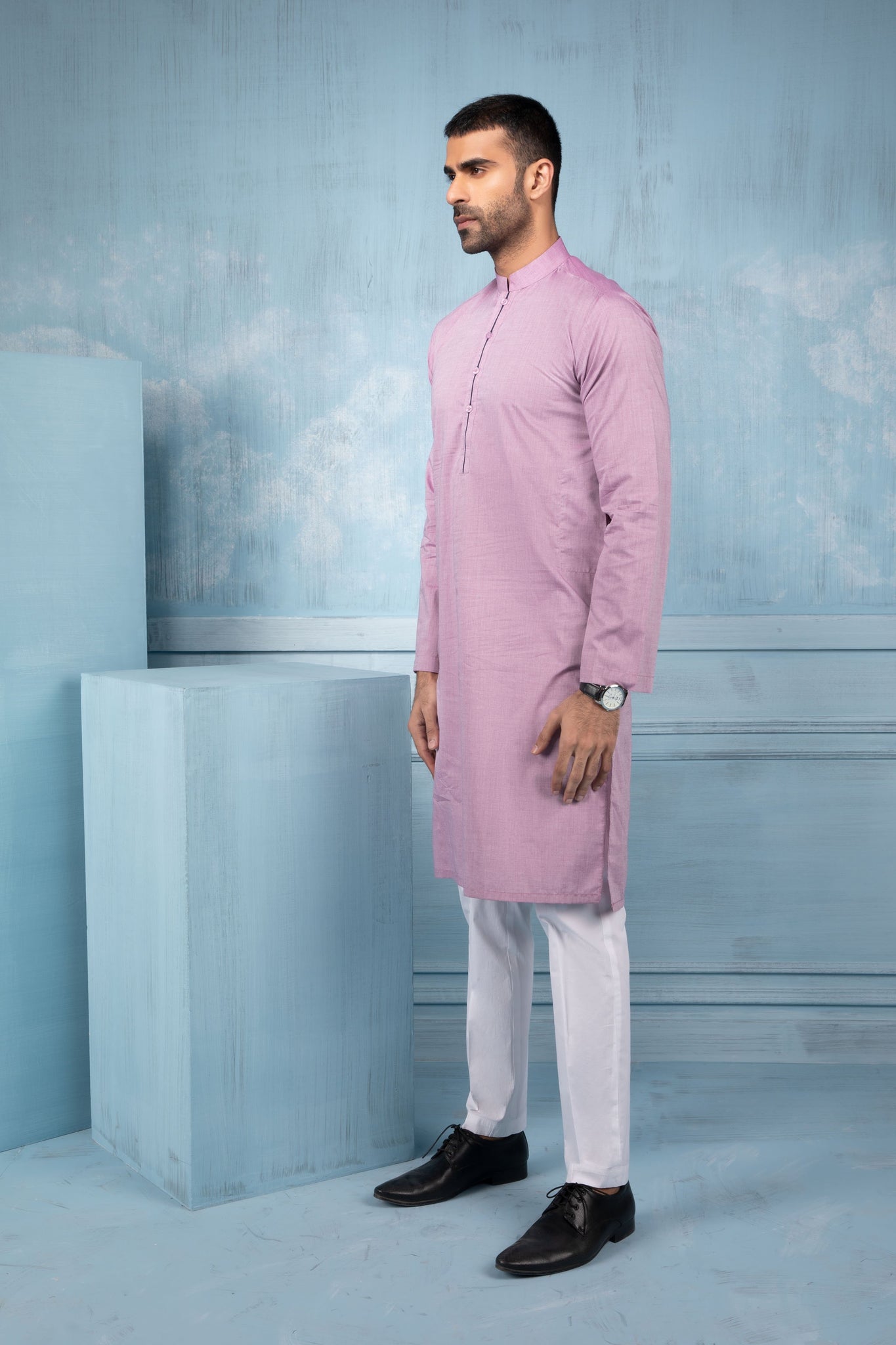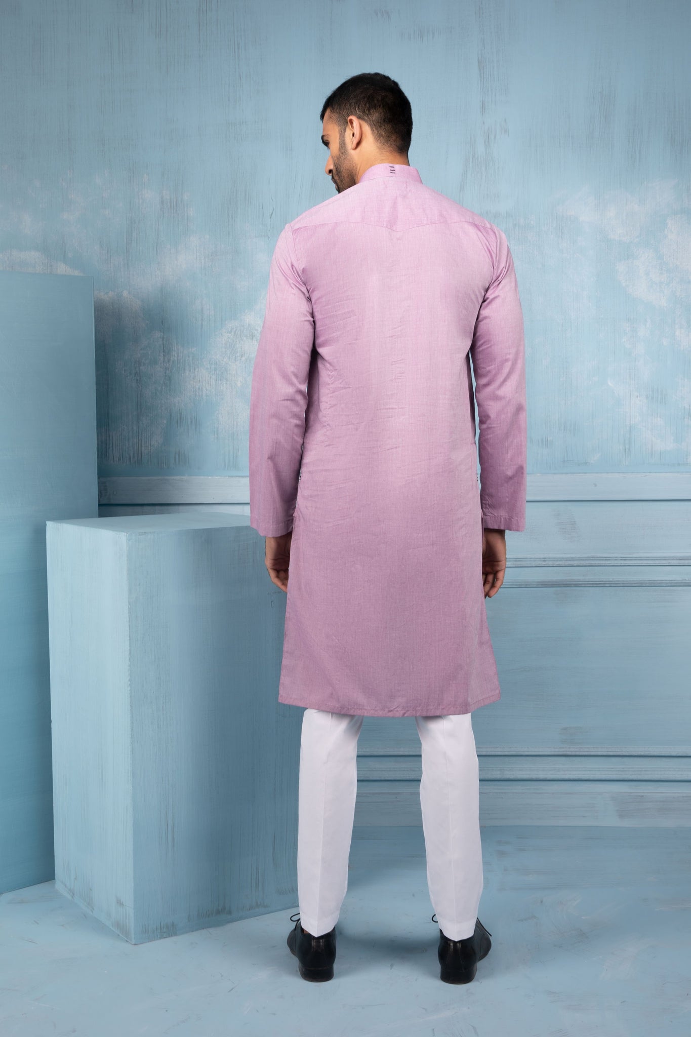 This magenta kurta will be a great addition to your Friday wardrobe as it offers a slim-fit design and clean aesthetic.