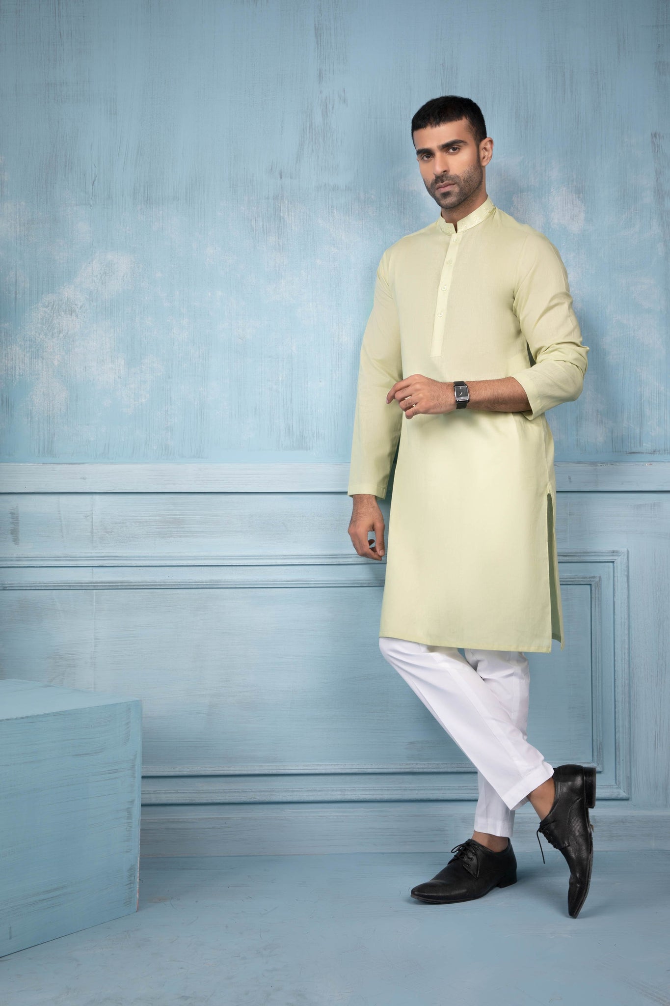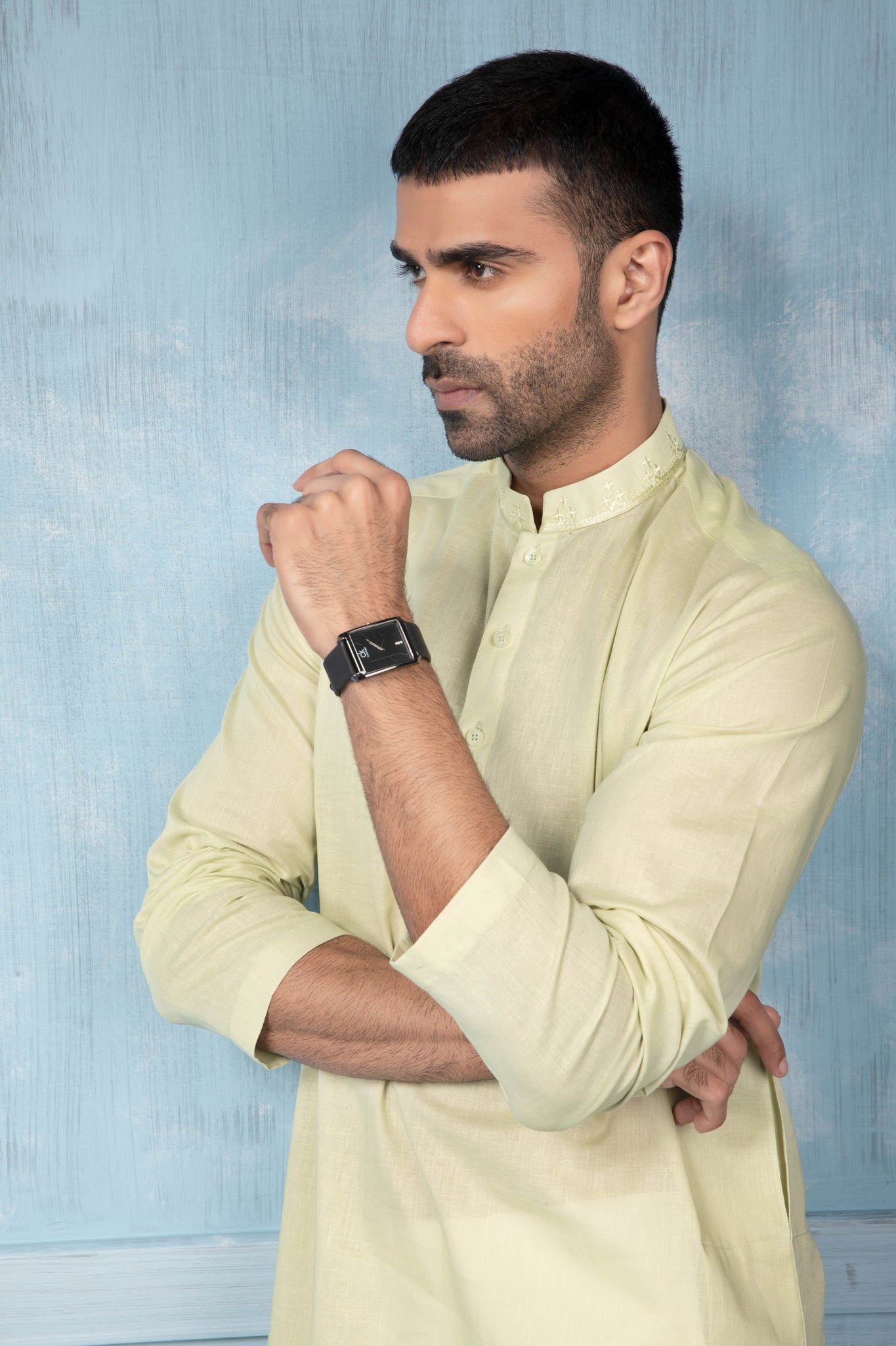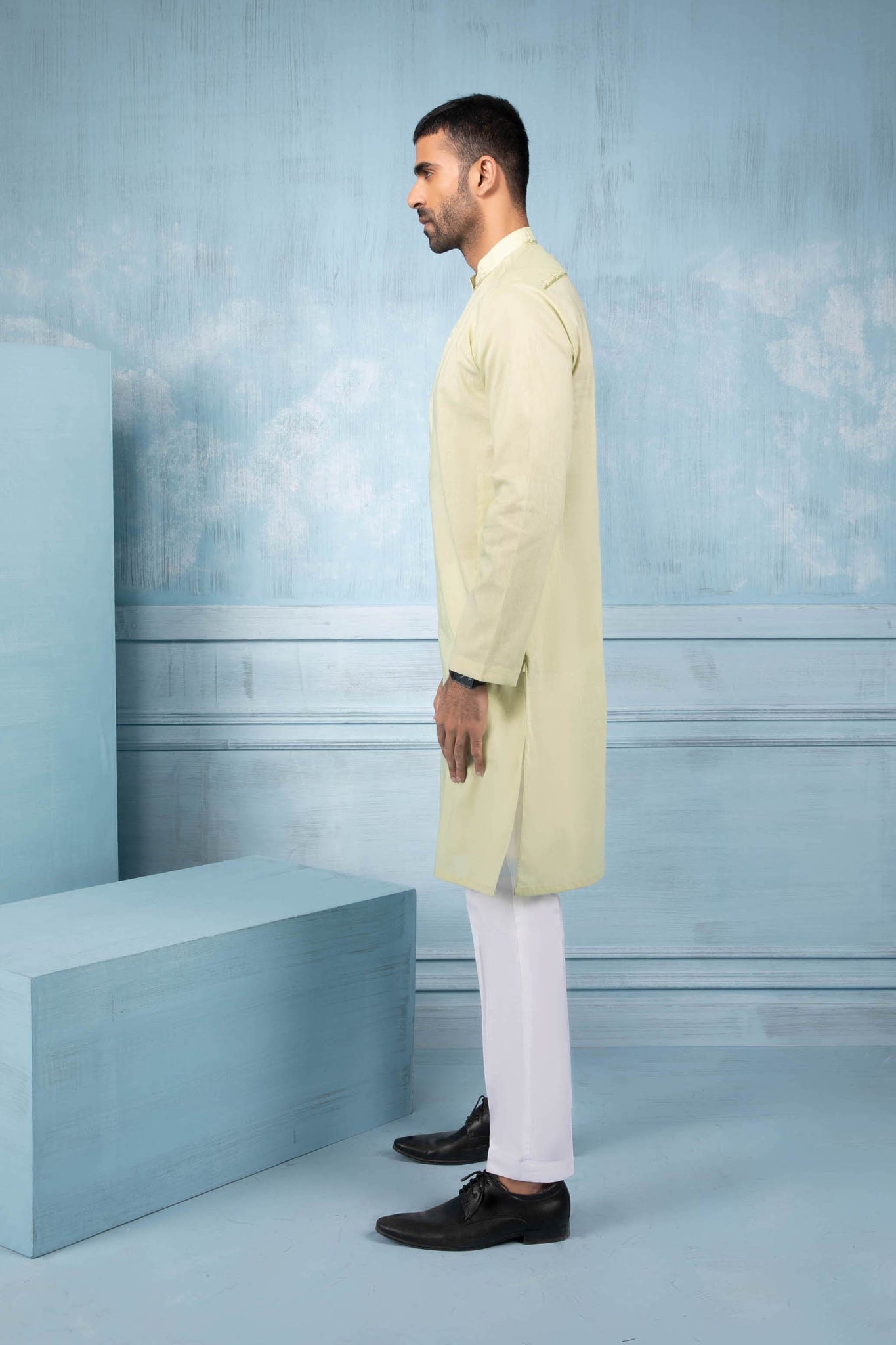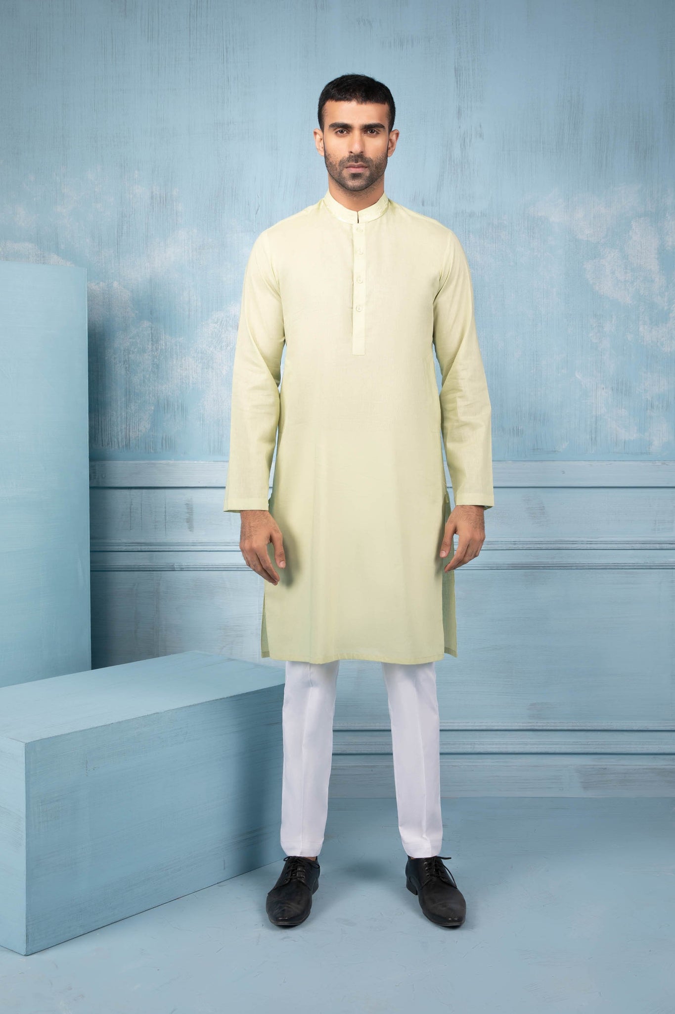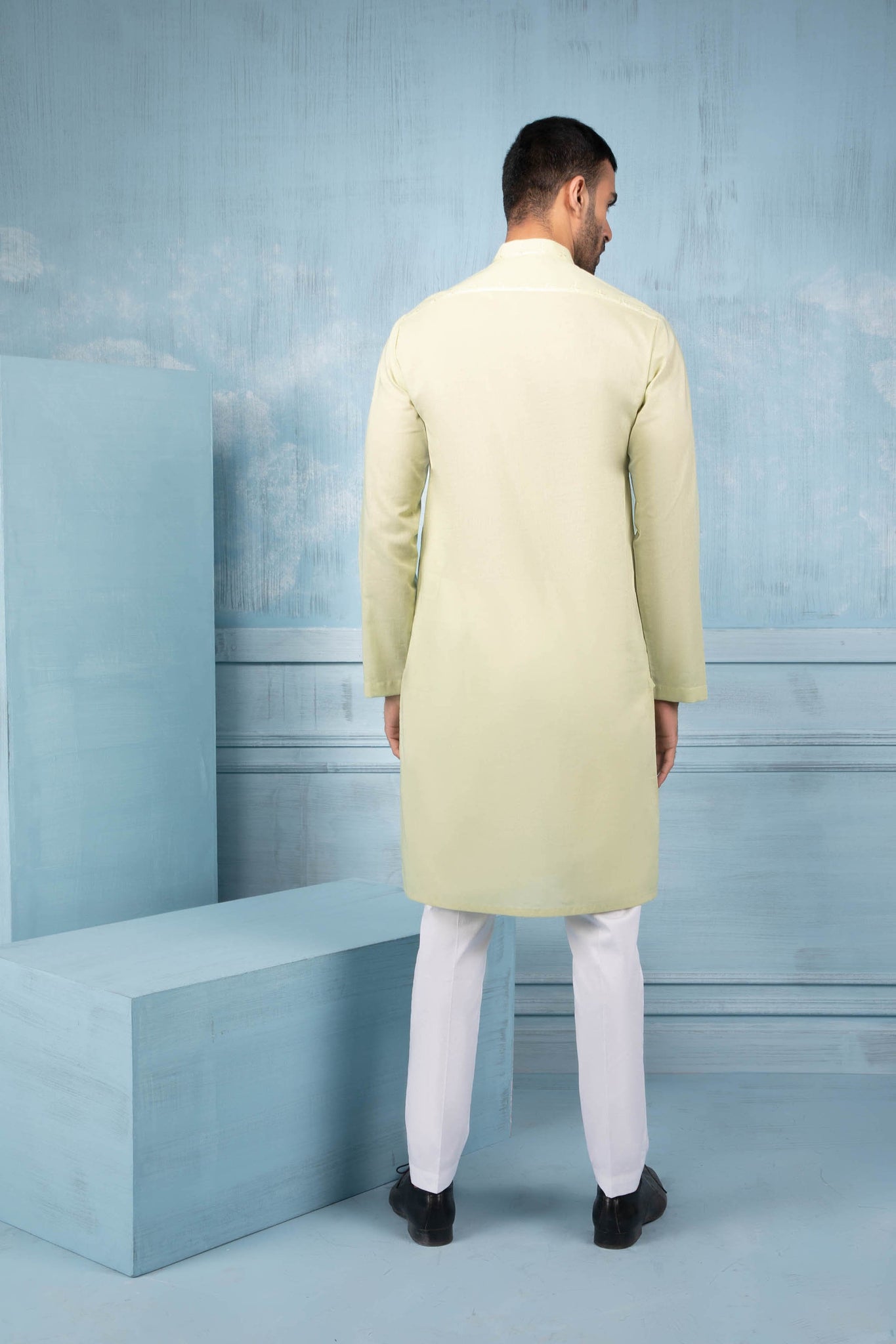 This lime green cotton linen kurta is a piece of timeless elegance.