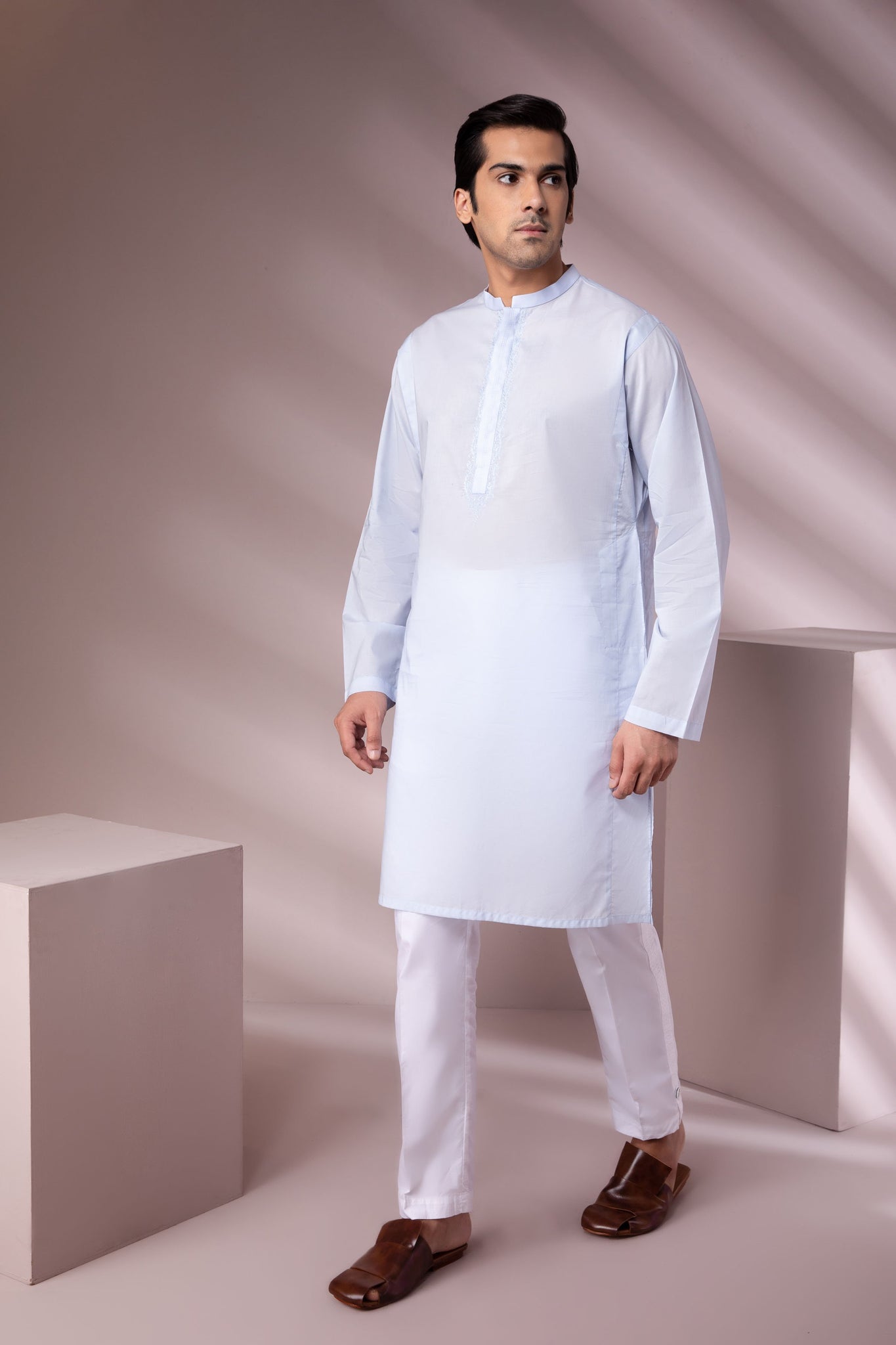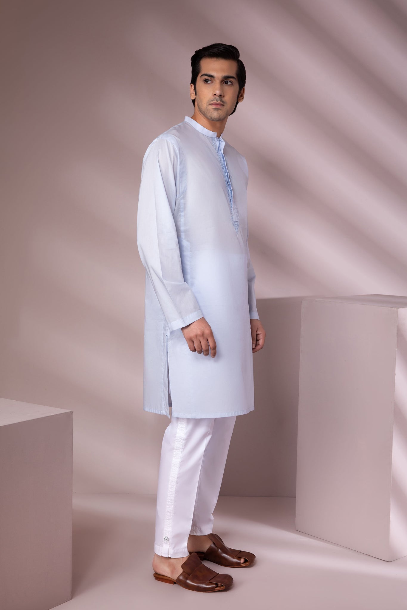 Don't you just love hues that evoke calmness, serenity and relaxation? This hue, crafted in premium cotton fabric, will become your favorite summer kurta of all time.