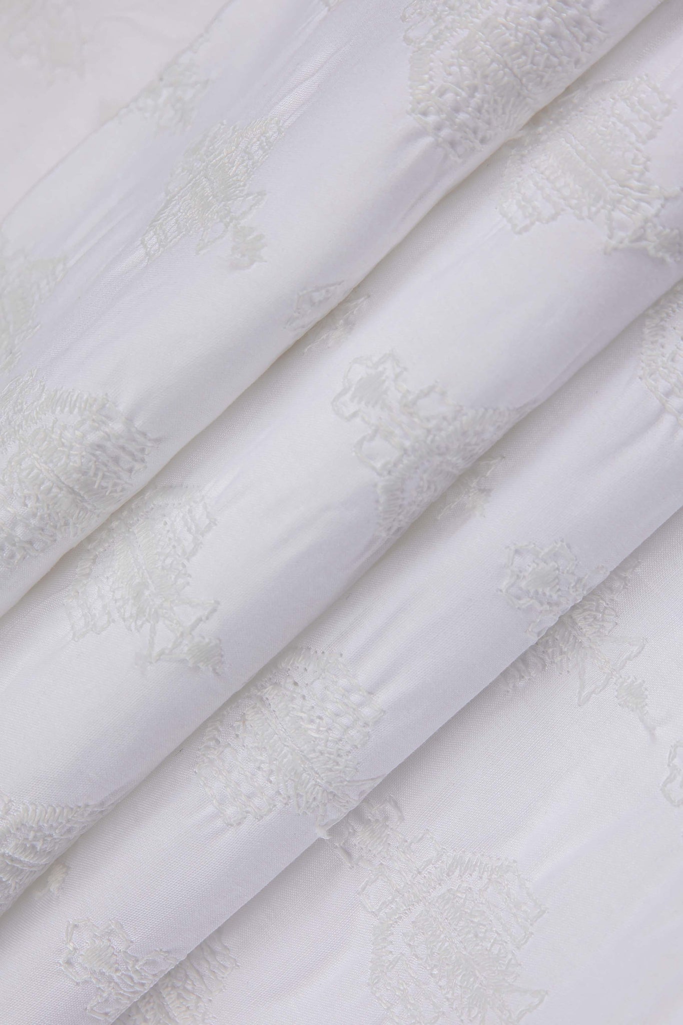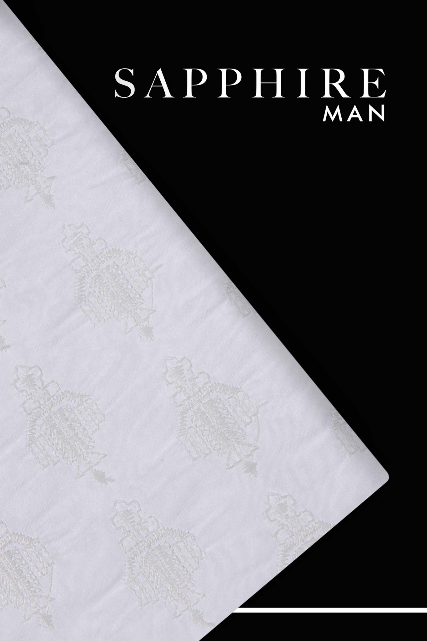 Unstitched - 1 Piece Crisp white unstitched kurta, crafted with intricate embroidery all over, will look exceptionally neat on a sunny event.