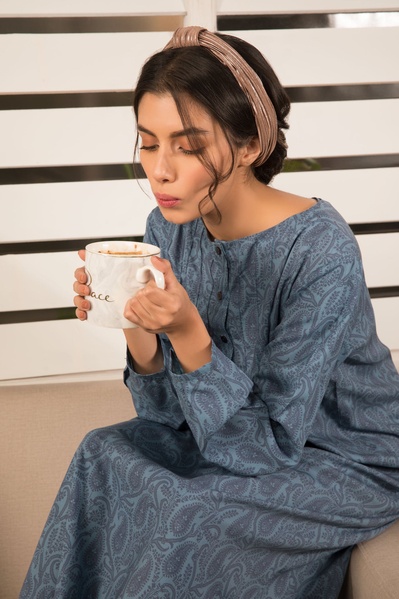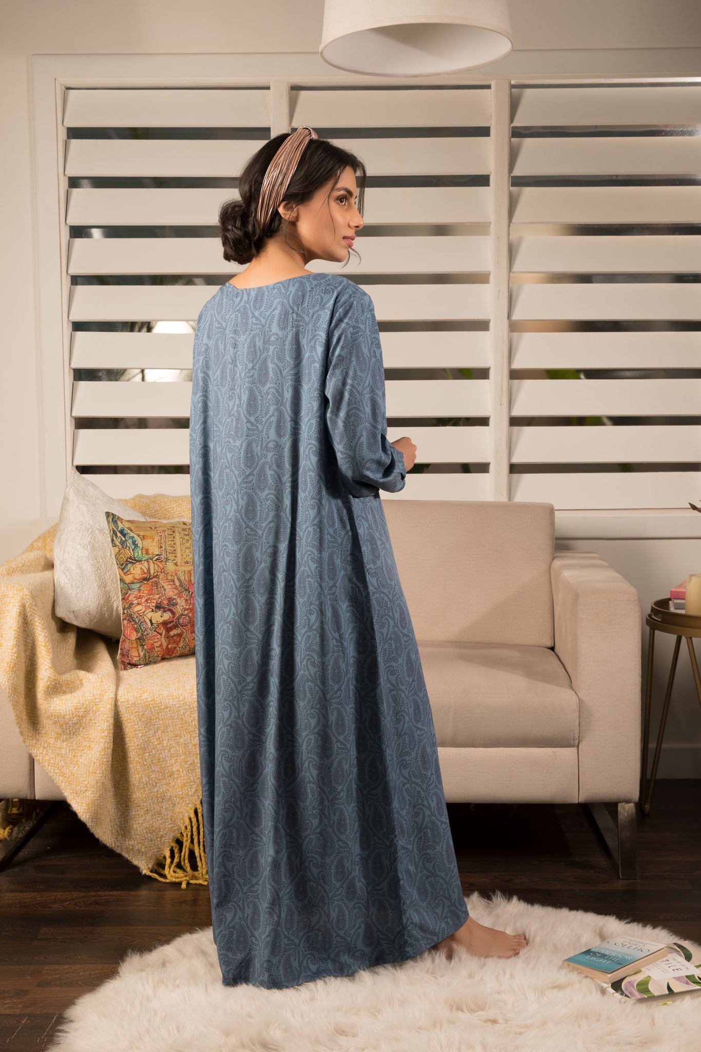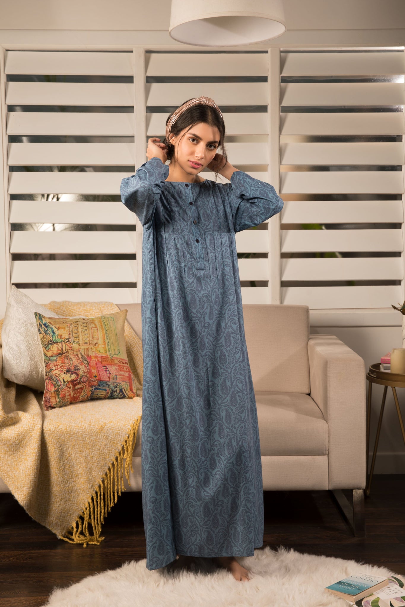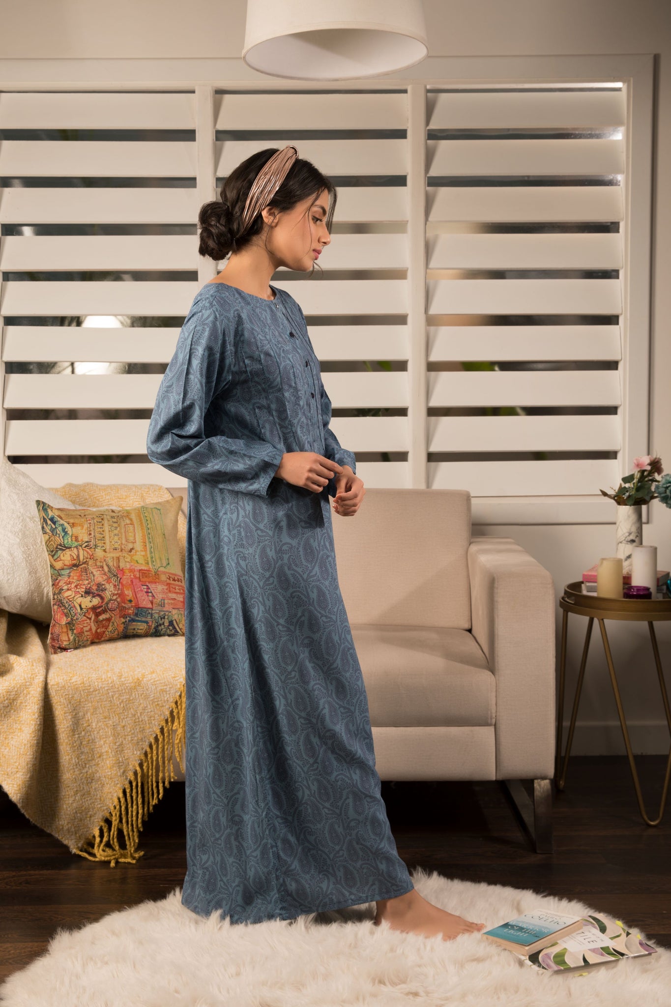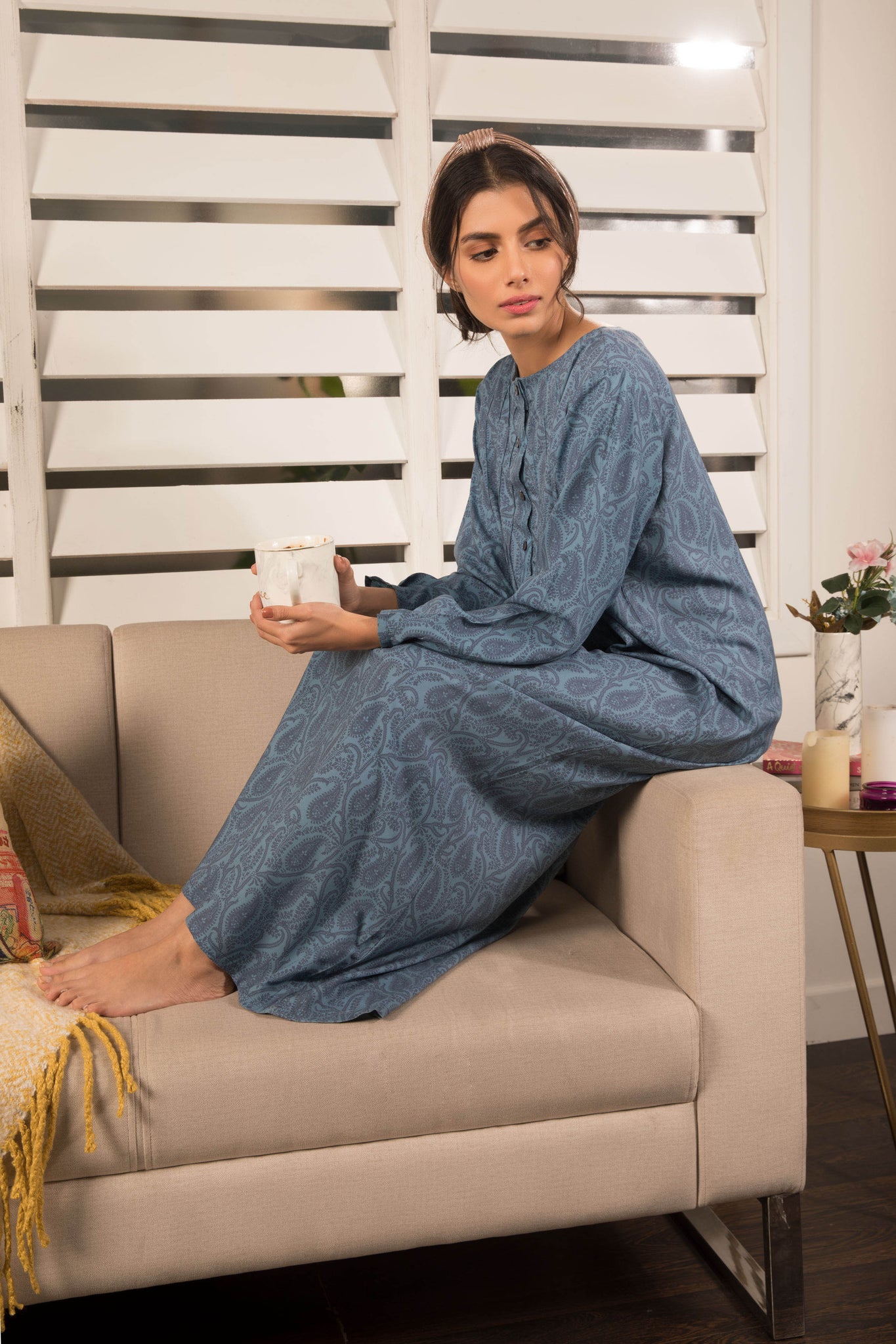 A soft printed nightgown is a chic way to cover up a sleepwear set.
