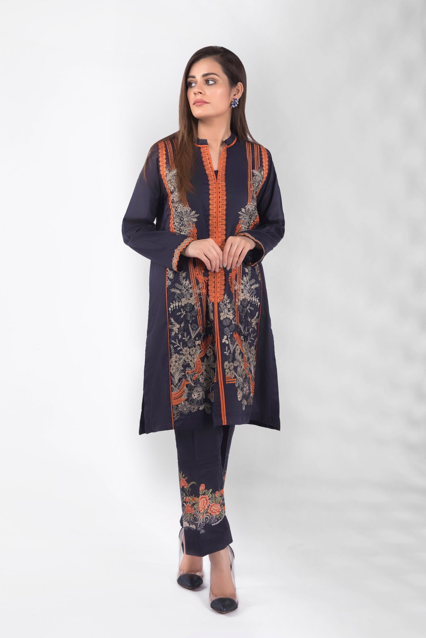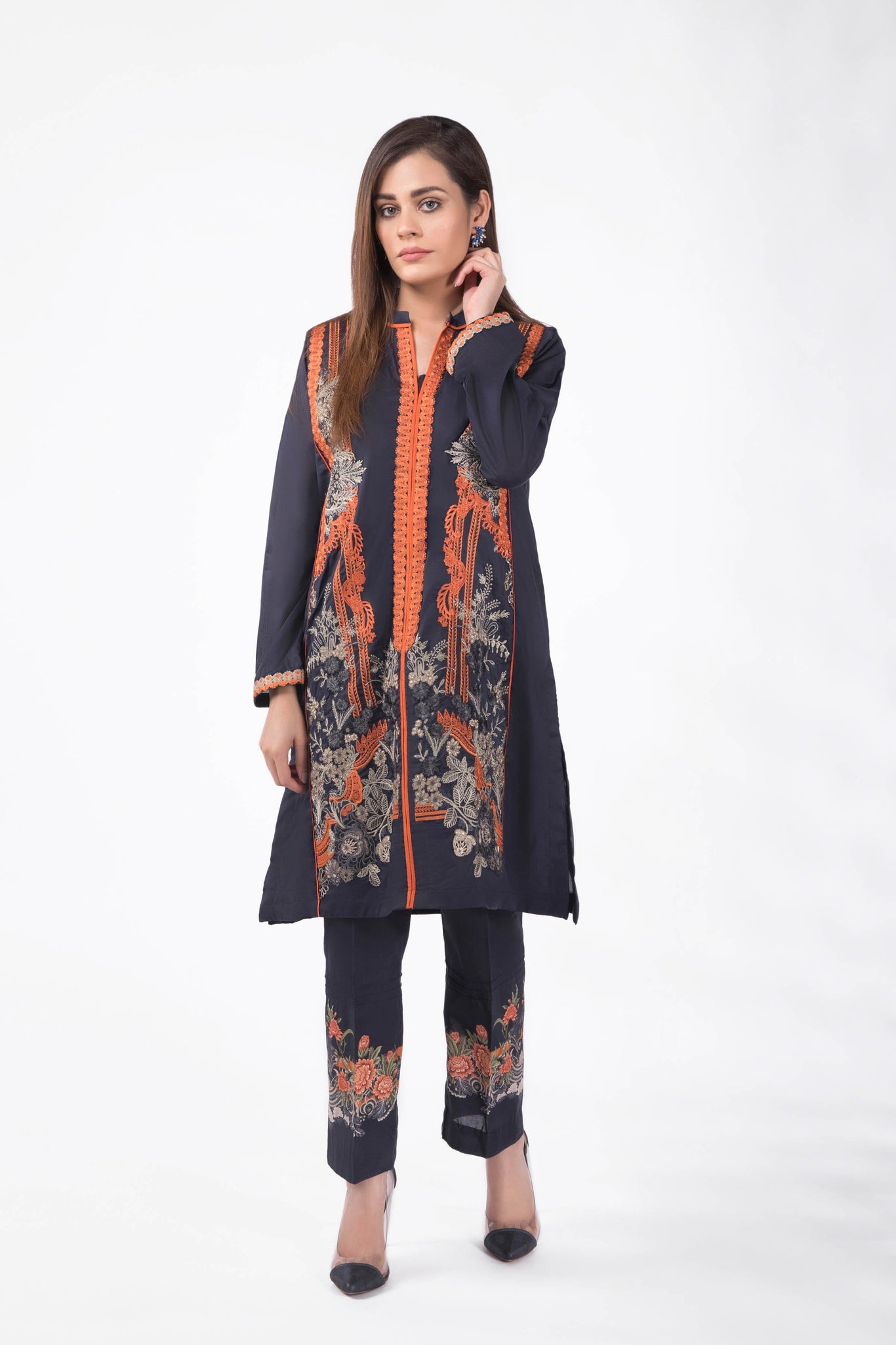 Embroidered Front, Plain back, Full Sleeves, Band Neck with Slit