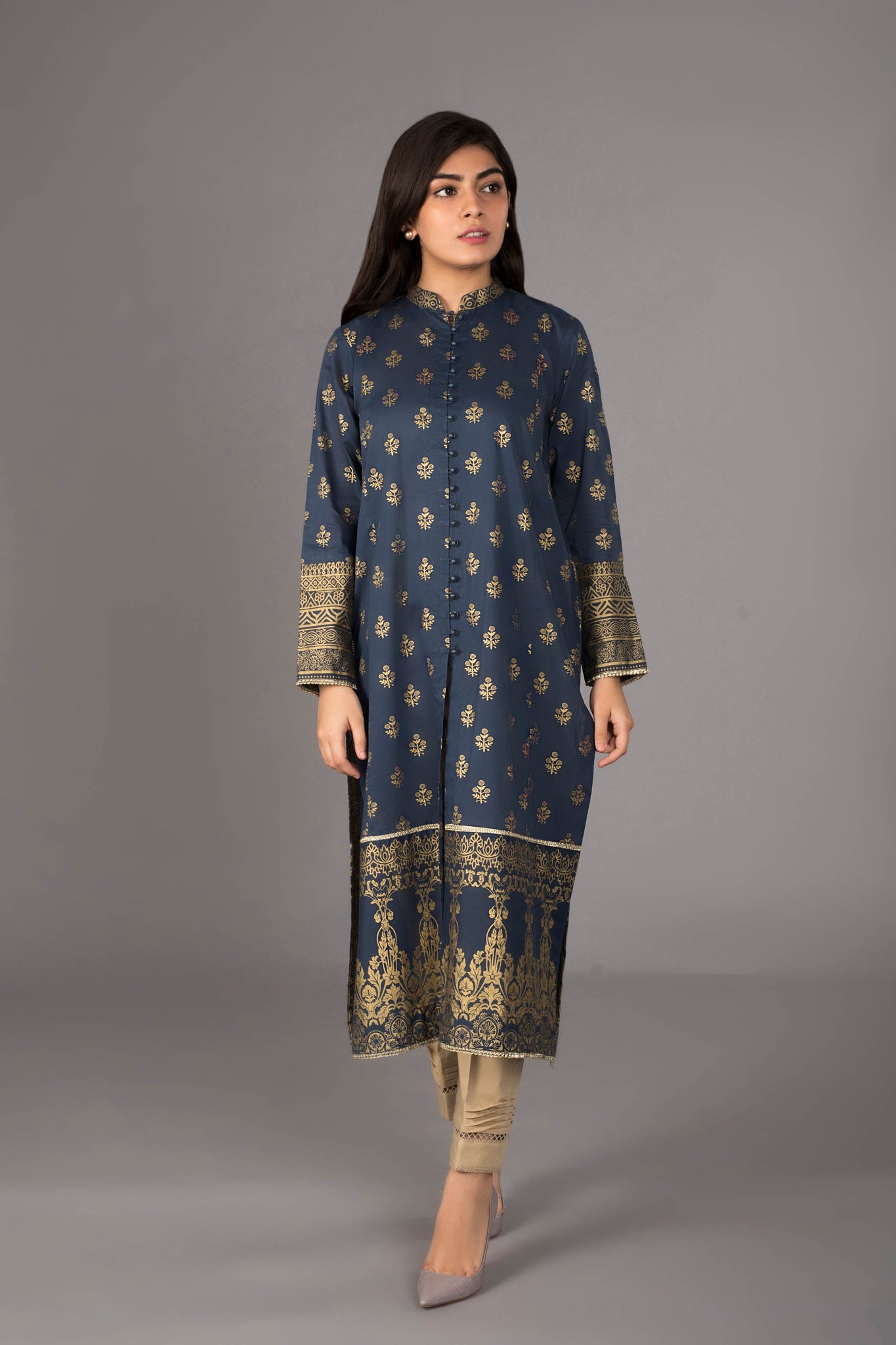 Printed Front, Printed Back, Full Sleeves, Band Neck with Buttons