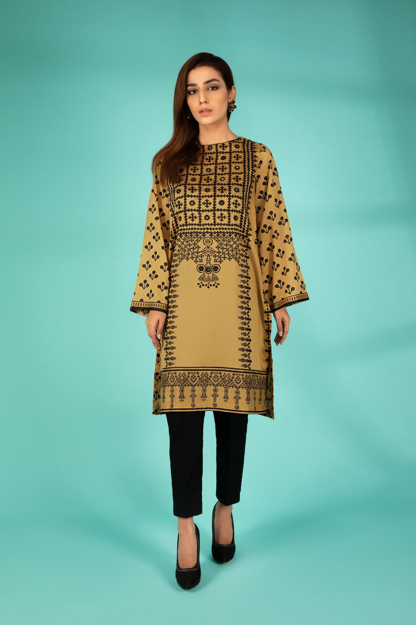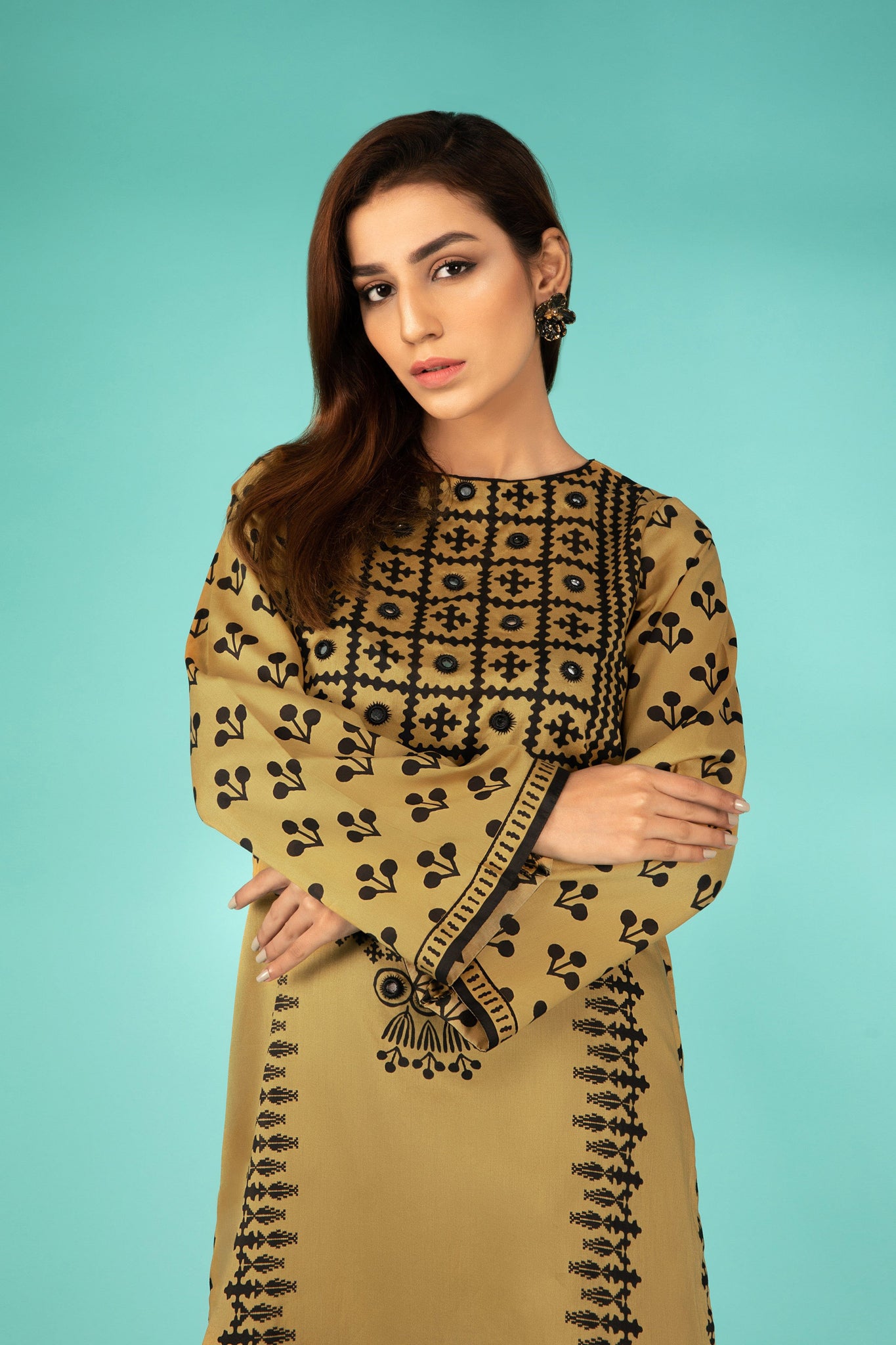 Printed front with Mirror Embellishment, Printed Back, Full Sleeves, Boat Neckline
