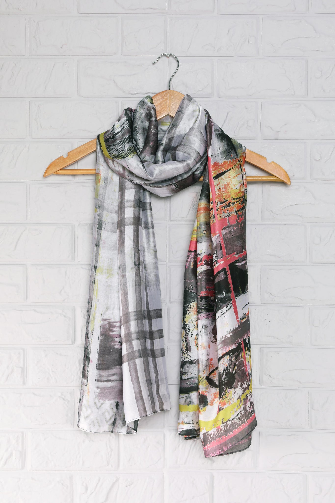 Printed Scarf This scarf will look like an art piece just wrapped around a monochrome apparel.