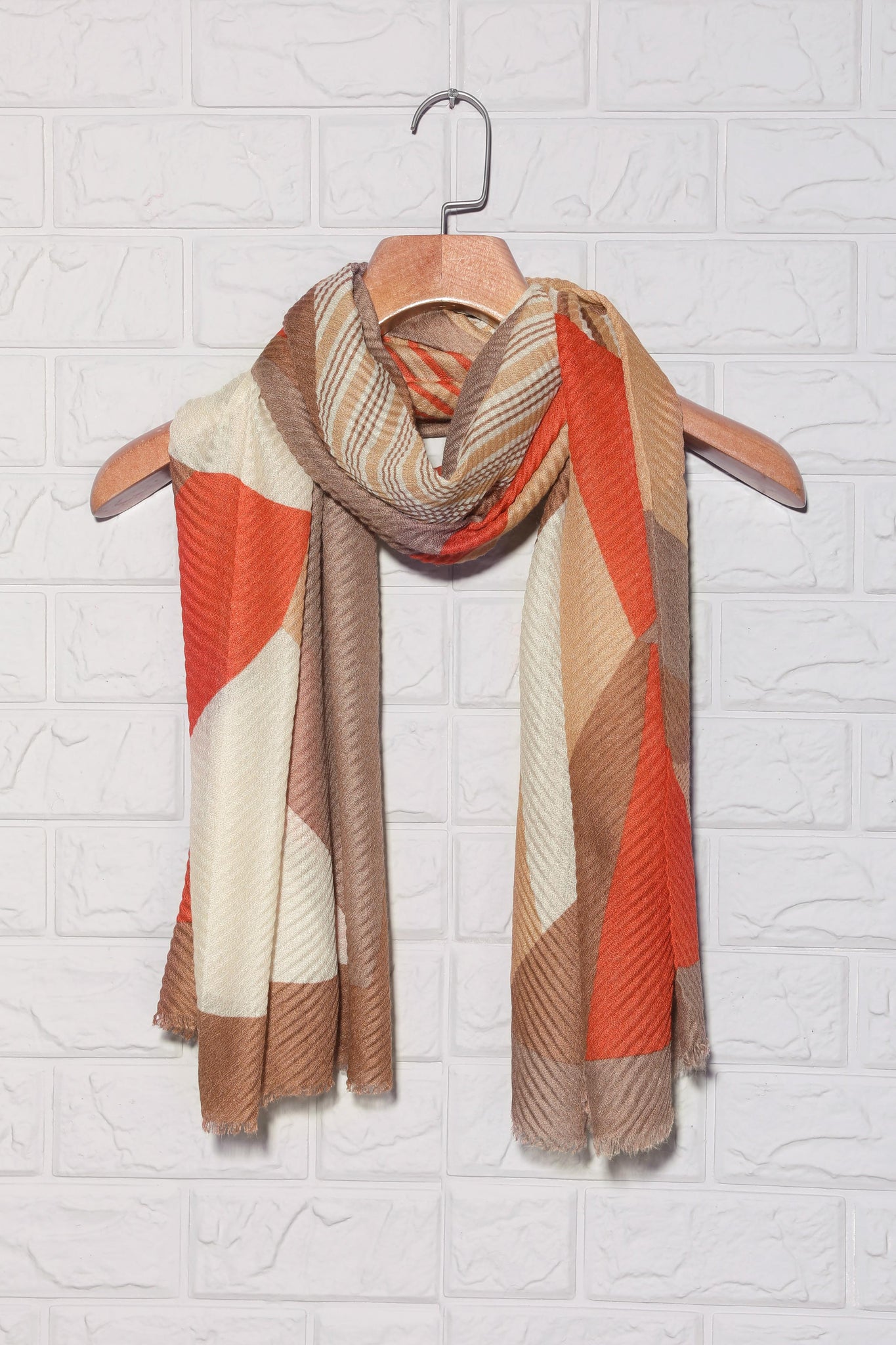 Printed Scarf This geometric inspired print on a multi-hued canvas will add a touch of 'oomph' to your look.