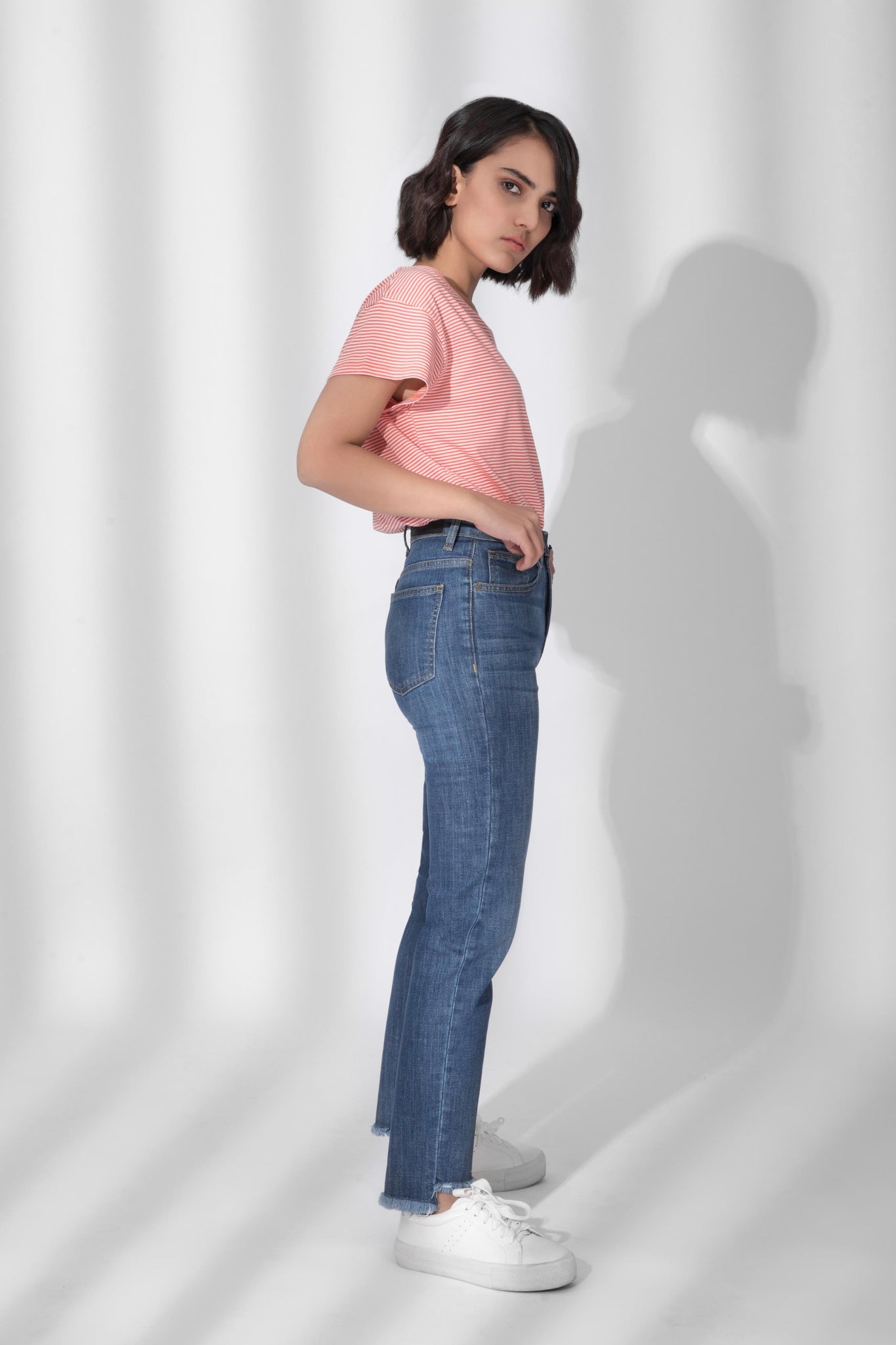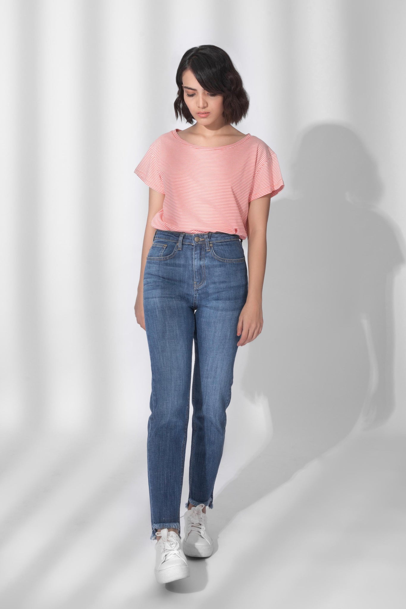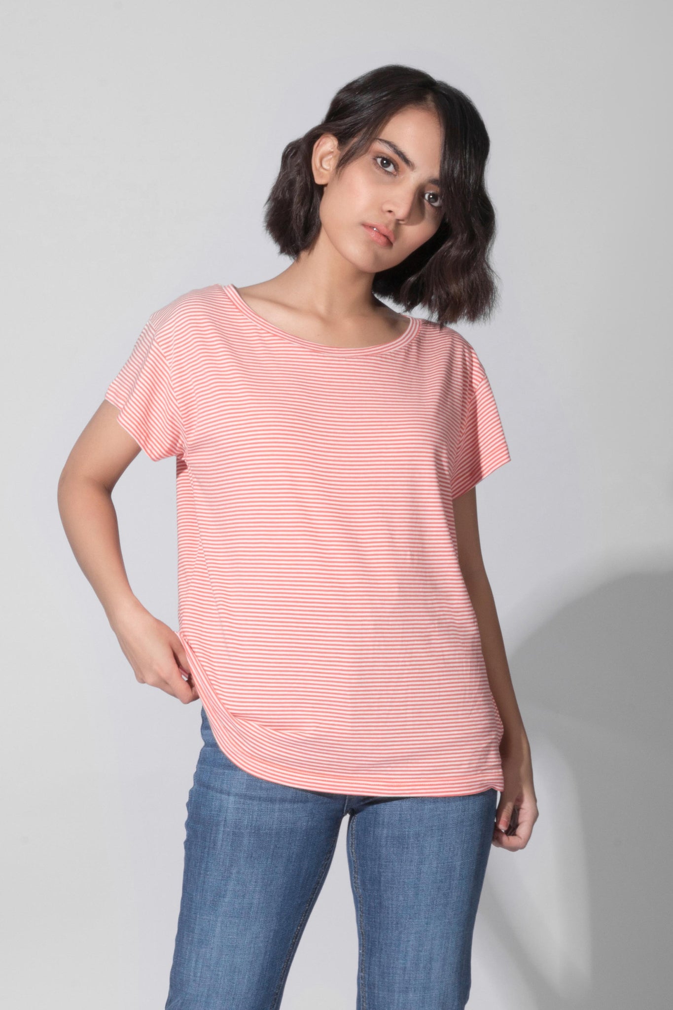 Short sleeve round neck t-shirt in a boxy fit with stripes.
