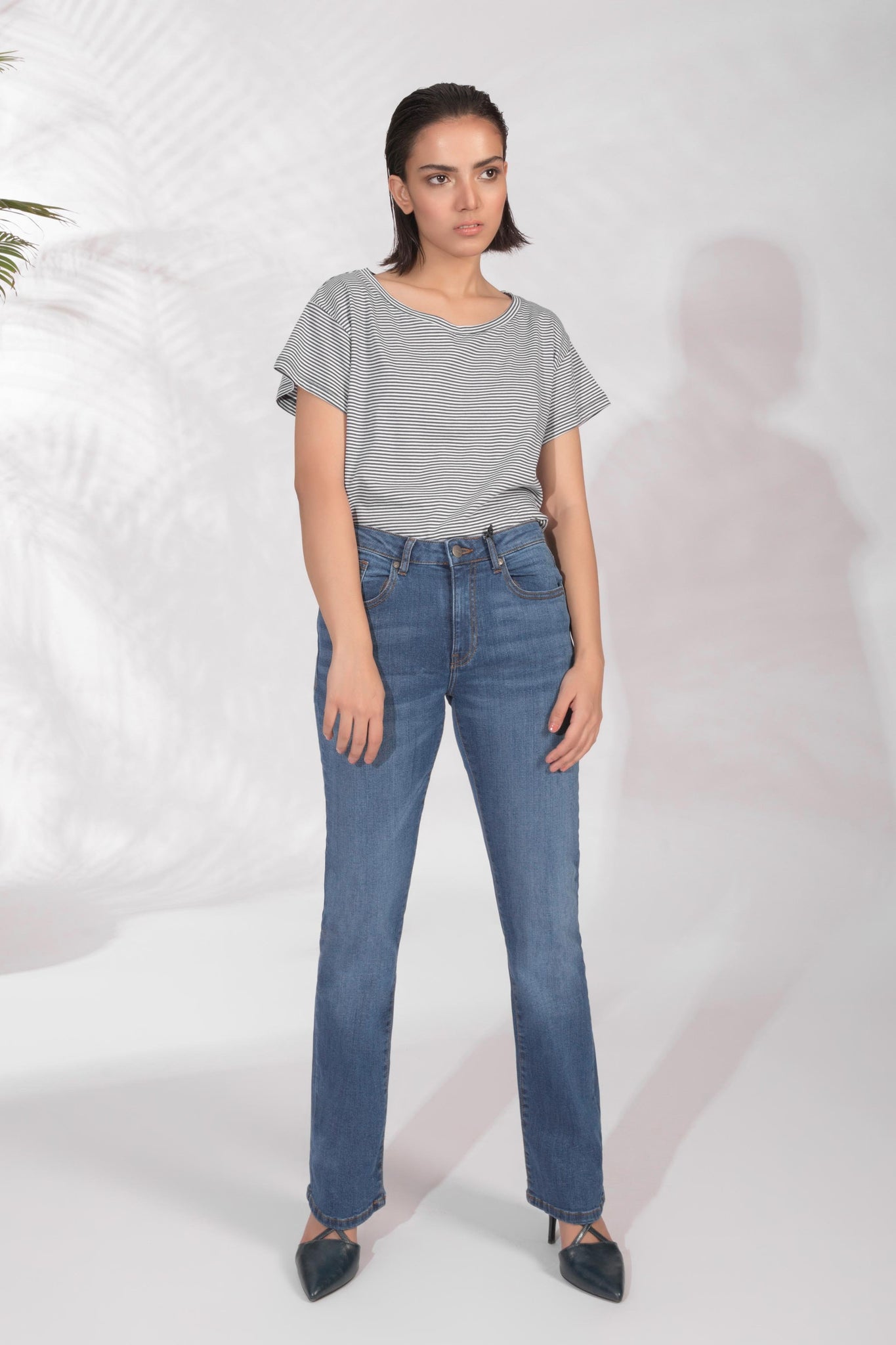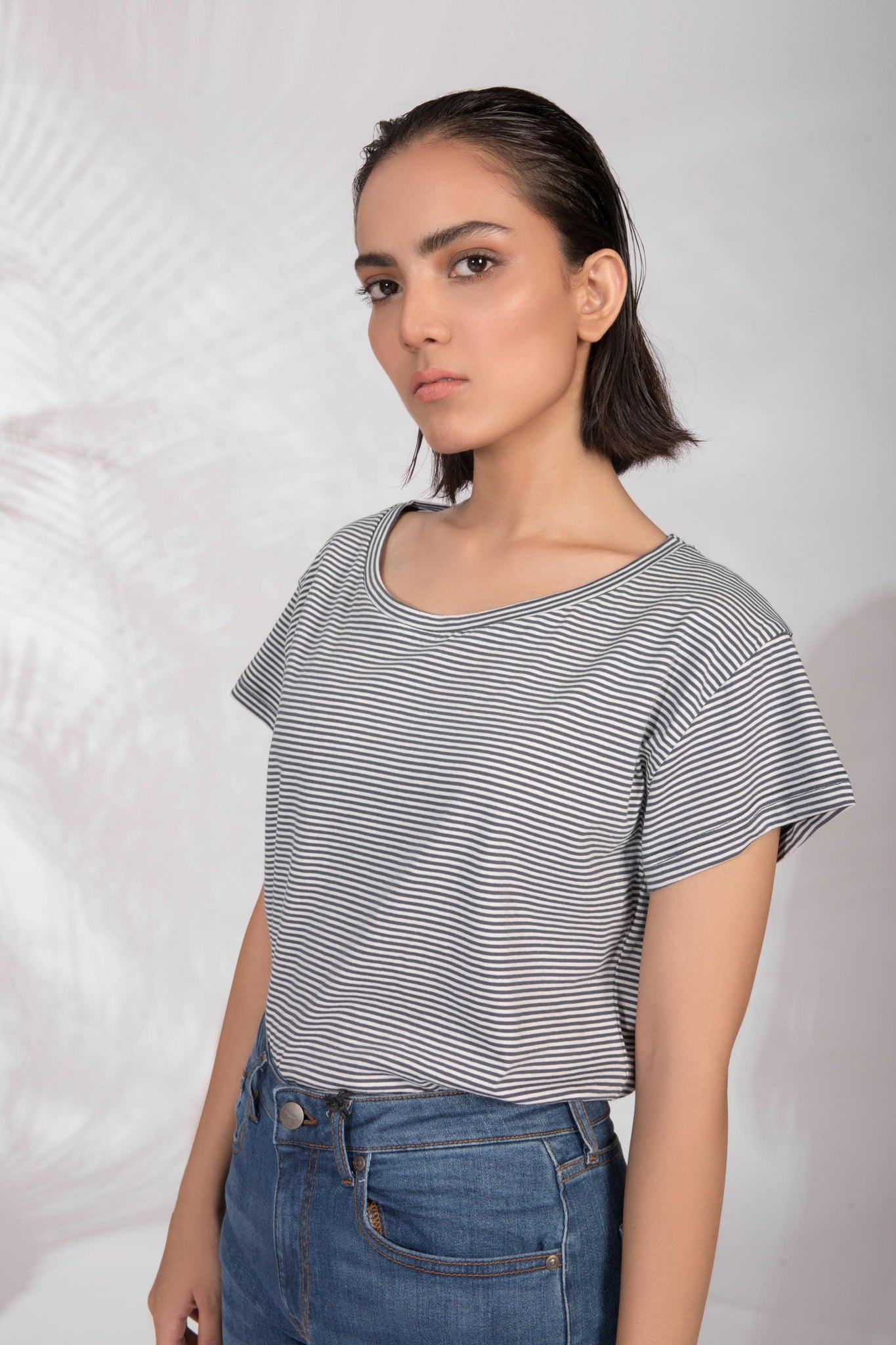 Short sleeve round neck t-shirt in a boxy fit with stripes.
