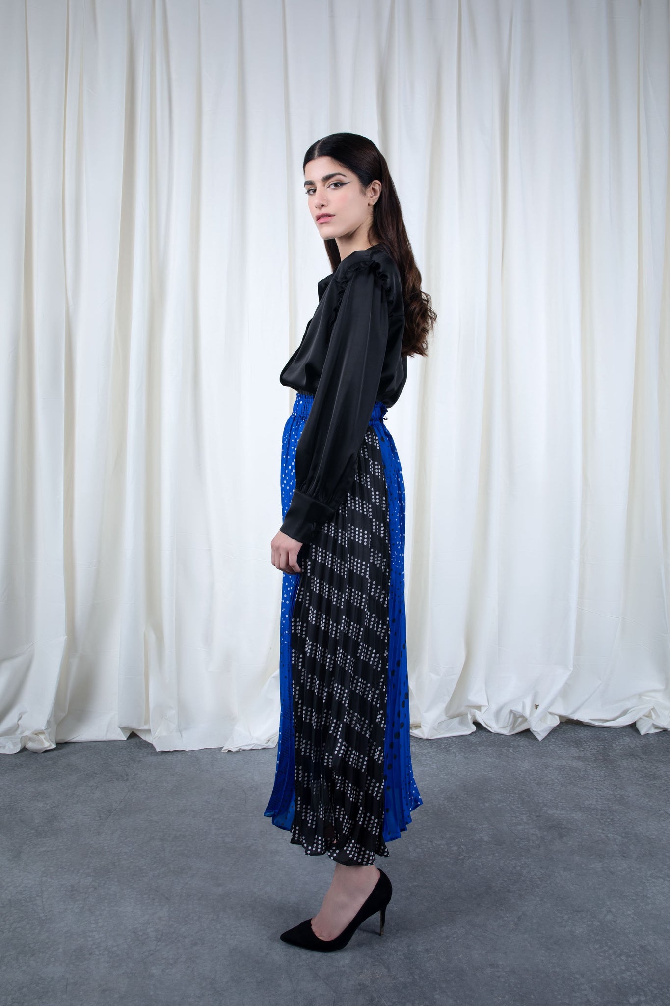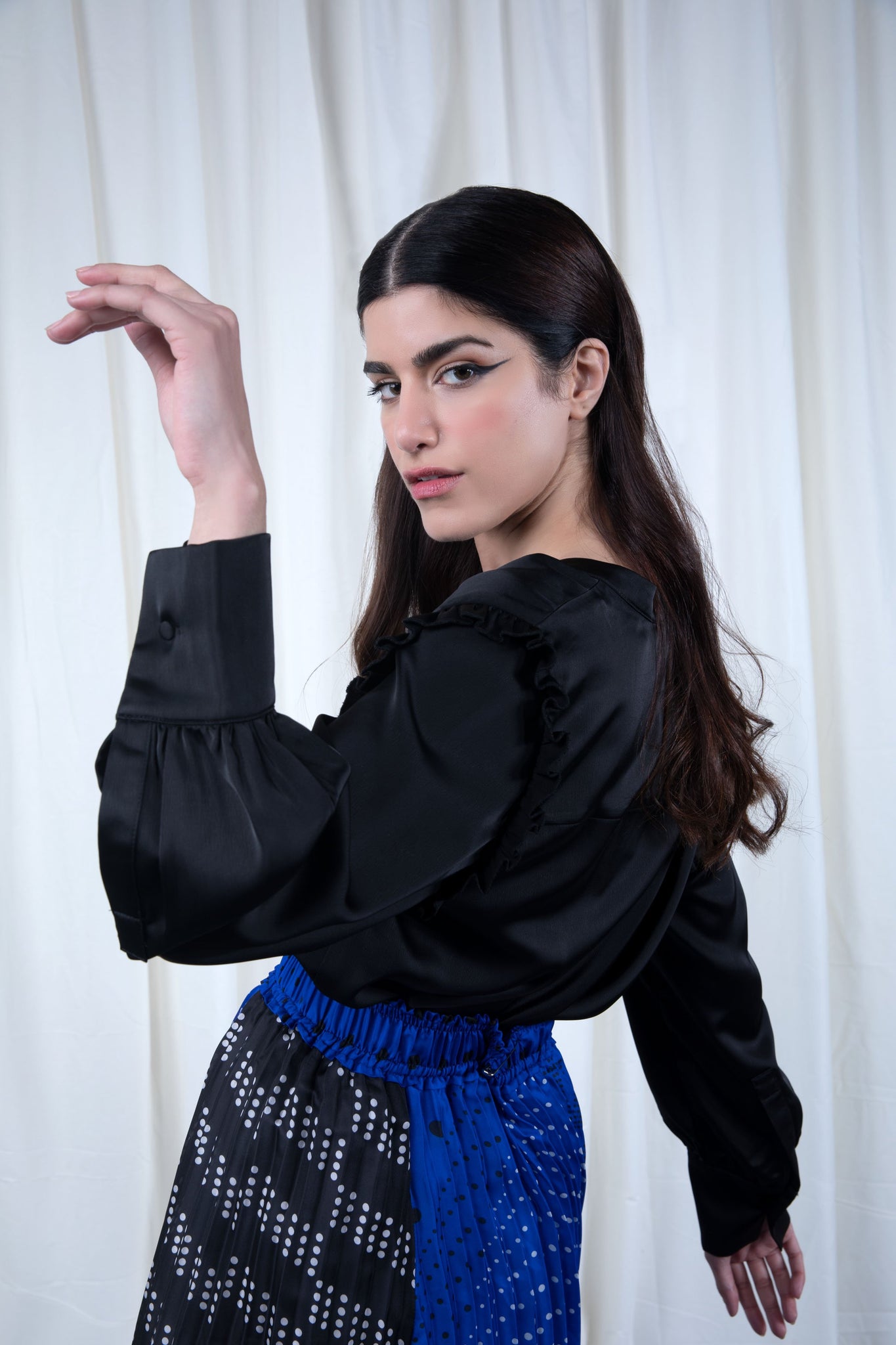 Shirt - Formal High collar shirt with puffed sleeves. Front snap button closure and intricate details on the shoulder.