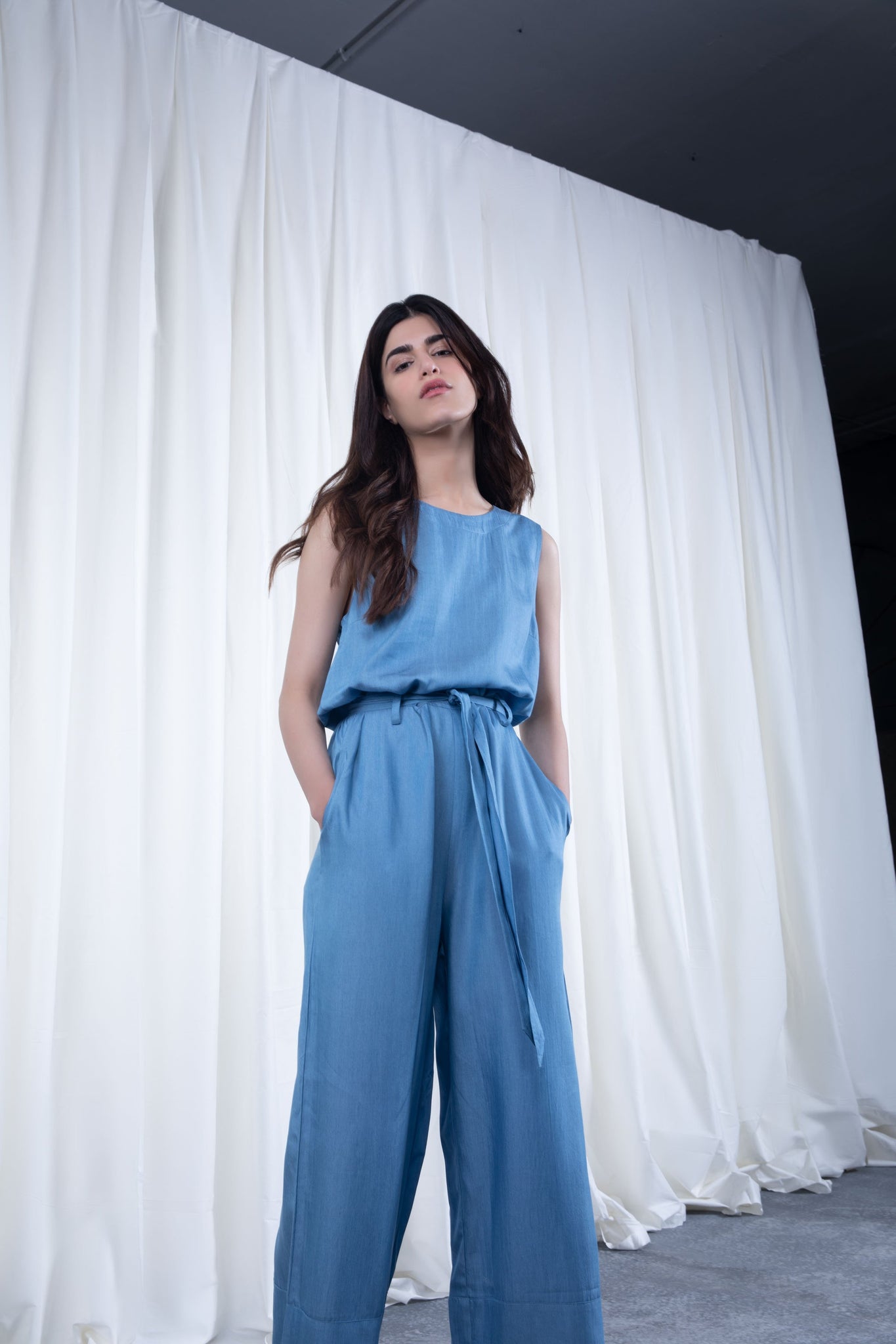 Blue Jumpsuit with Belt