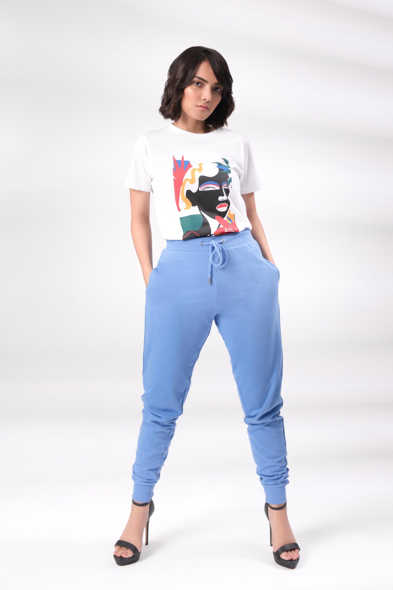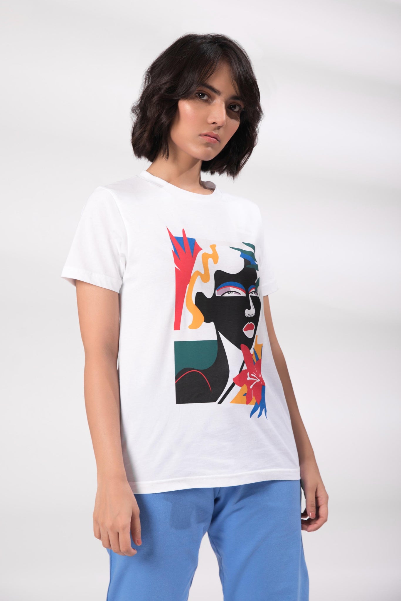 Round neck short sleeve t-shirt with front print.