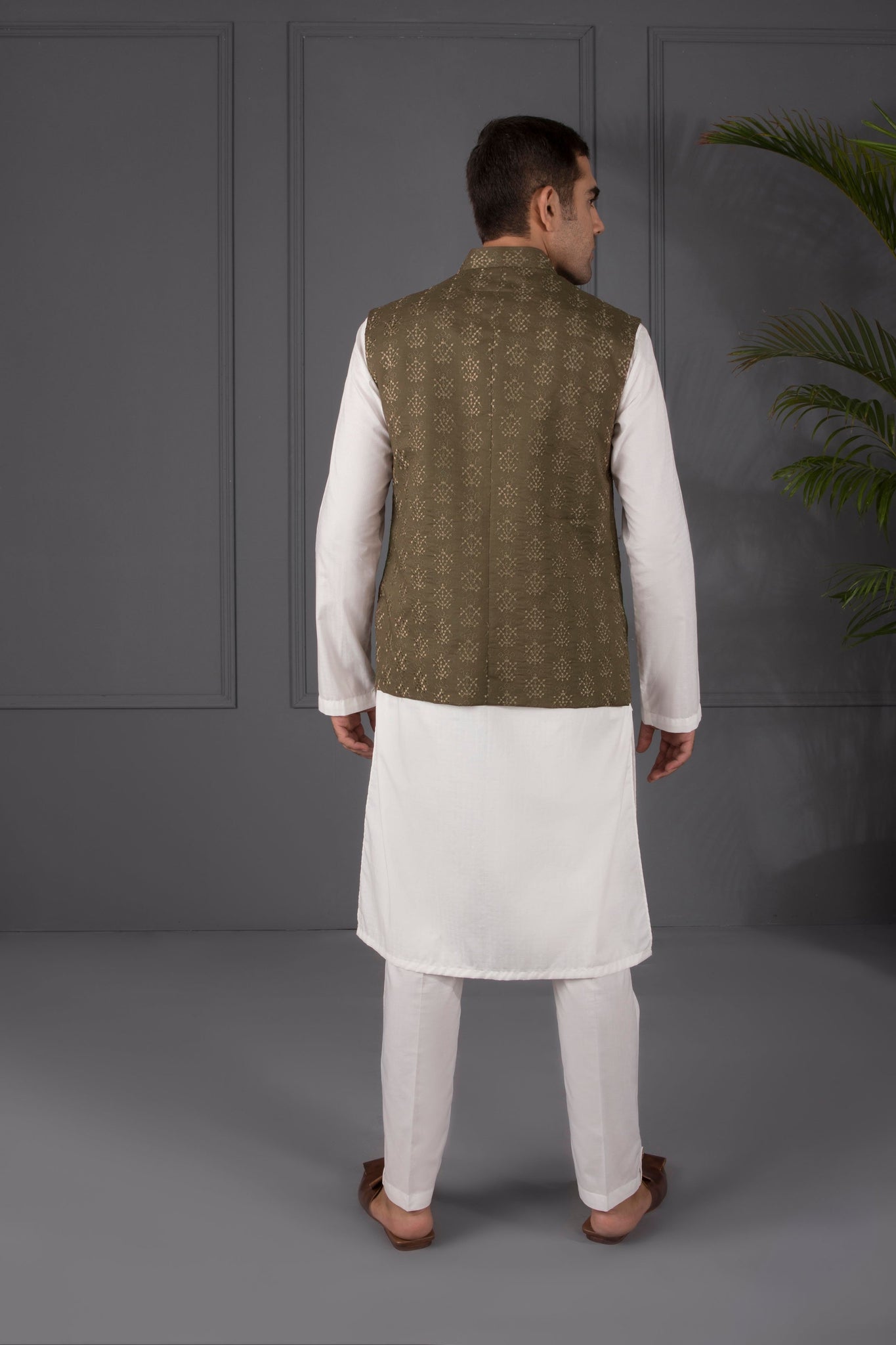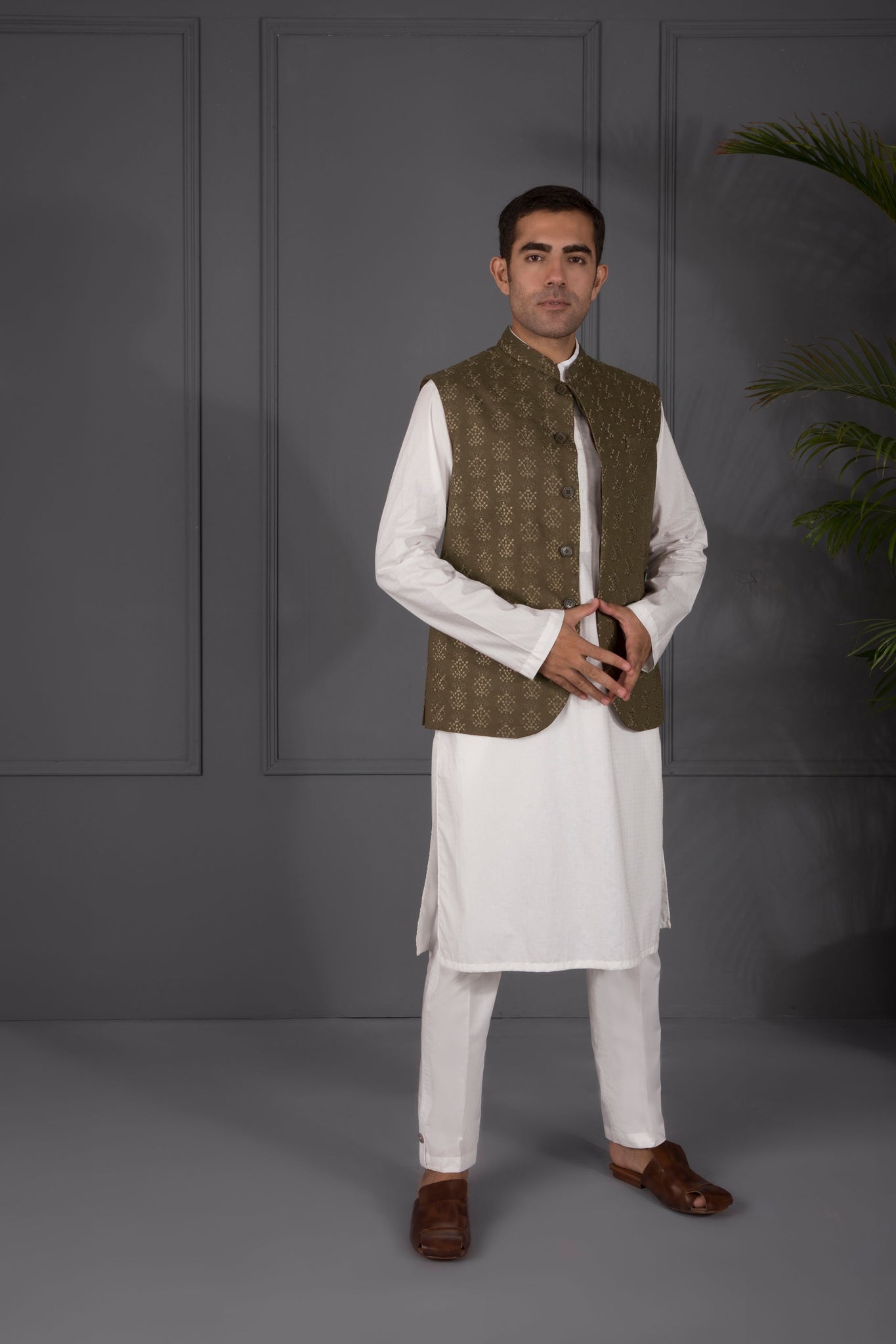This embroidered waistcoat, featuring round hem, will be a great addition to your festive wardrobe.